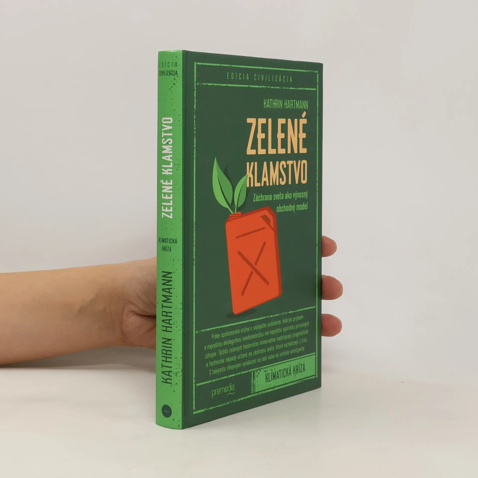 Elektromobily šetrné k životnému prostrediu, udržateľné potraviny, oblečenie z recyklovaných plastov vylovených z mora. Hurá! Veľké spoločnosti nás ľahko presvedčia, že svet dokážeme zachrániť kupovaním správnych vecí. To je však rozsiahla a nebezpečná lož. Katharin Hartmannová, odborníčka na „greenwashing“, opisuje zavádzanie zákazníkov a ukazuje, ako sa môžeme proti tejto lži brániť. Čím absurdnejšie zelené klamstvá sú, tým ľahšie im uveríme. Šíria sa už od osemdesiatych rokov a dnes sú populárnejšie ako kedykoľvek predtým. Hartmannová prináša príklady z celého sveta, od veľkej ropnej spoločnosti, ktorá zamietla pod koberec najväčšiu haváriu v histórii, cez ničenie svetových pralesov kvôli sóji, hovädziemu dobytku a palmovému oleju, až po textilný priemysel. Ako ukazuje, greenwashing je nebezpečný tým, že ľudí nevedie k skutočnej zmene, a tým len prehlbuje krízu, v ktorej sme sa ocitli.