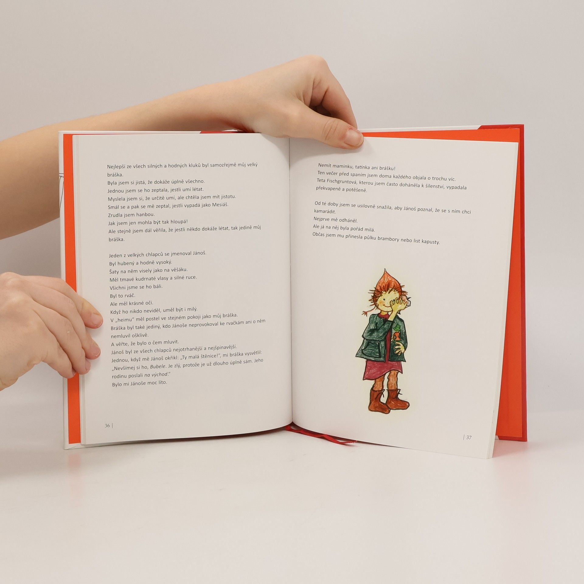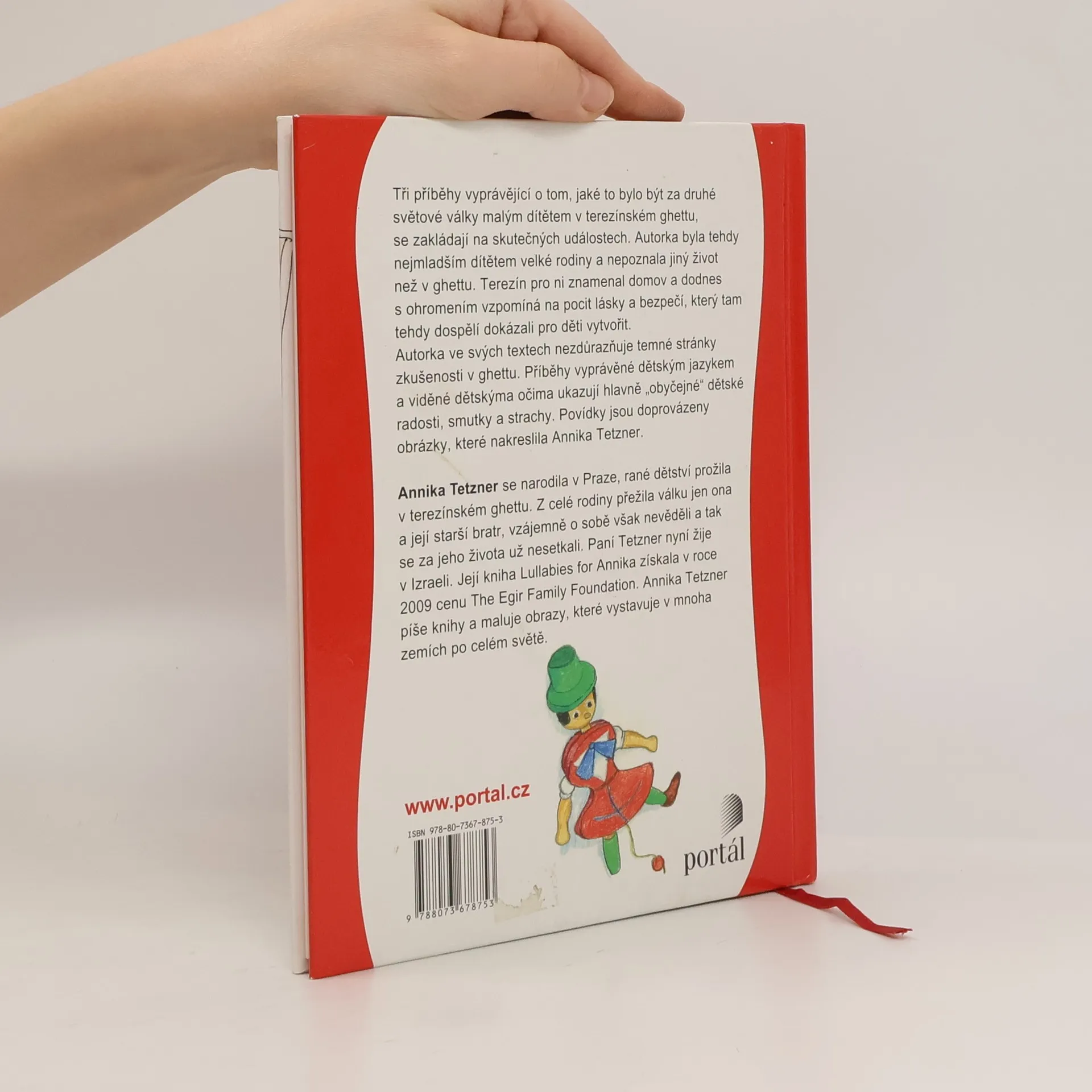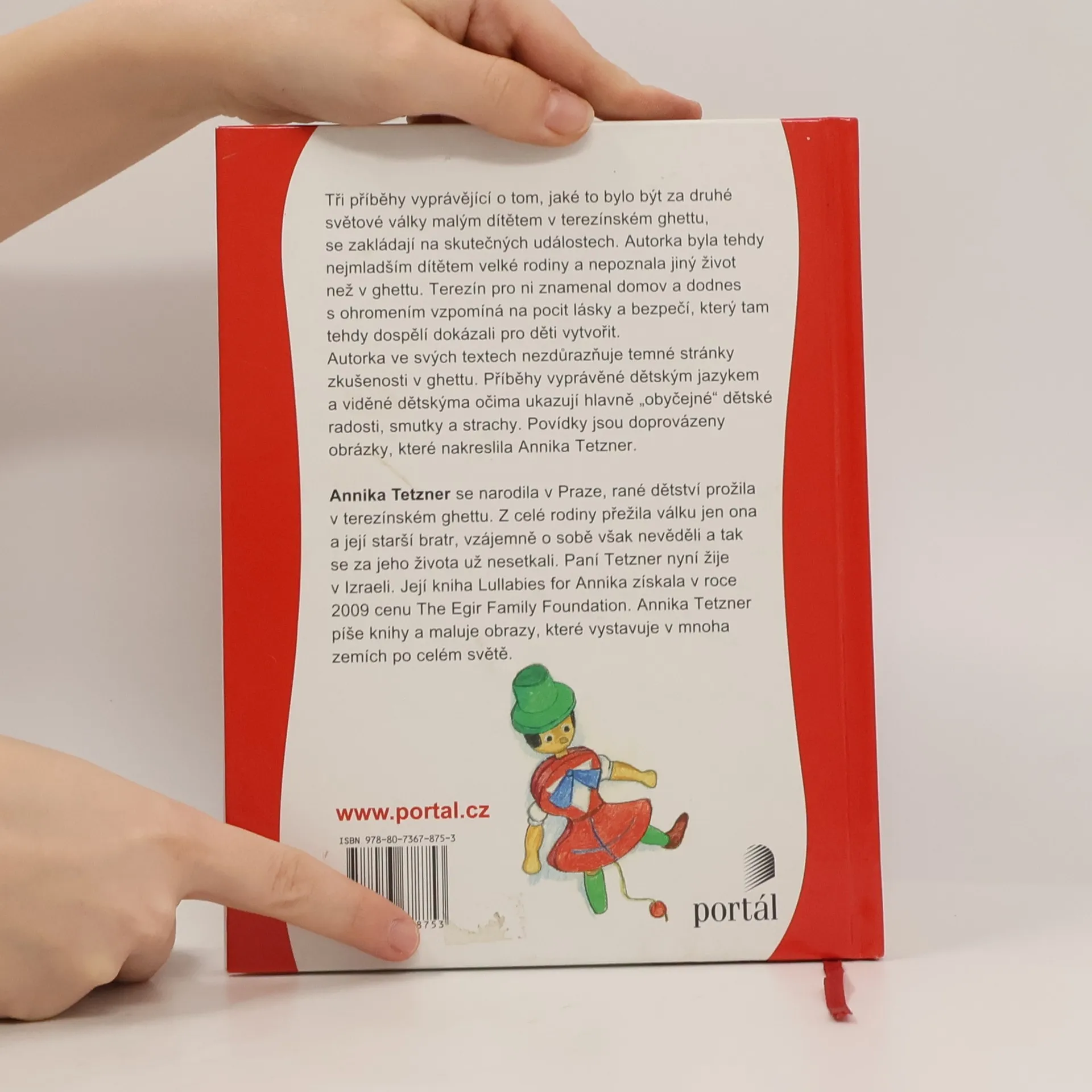 Terezínské ghetto očima dítěte. Červená stuha je soubor tří povídek, v nichž autorka zprostředkovává vlastní zkušenost malého dítěte v terezínském ghettu. Příběhy viděné dětskýma očima a vyprávěné dětským jazykem jsou určeny především malým čtenářům, ale působivý text osloví i dospělé. Povídky jsou doslova postaveny na obrazech – ze slov i výtvarných. Vedle obrazů hladu, strachu, smutku tu stojí zážitky blízkosti, radosti a malých vítězství.