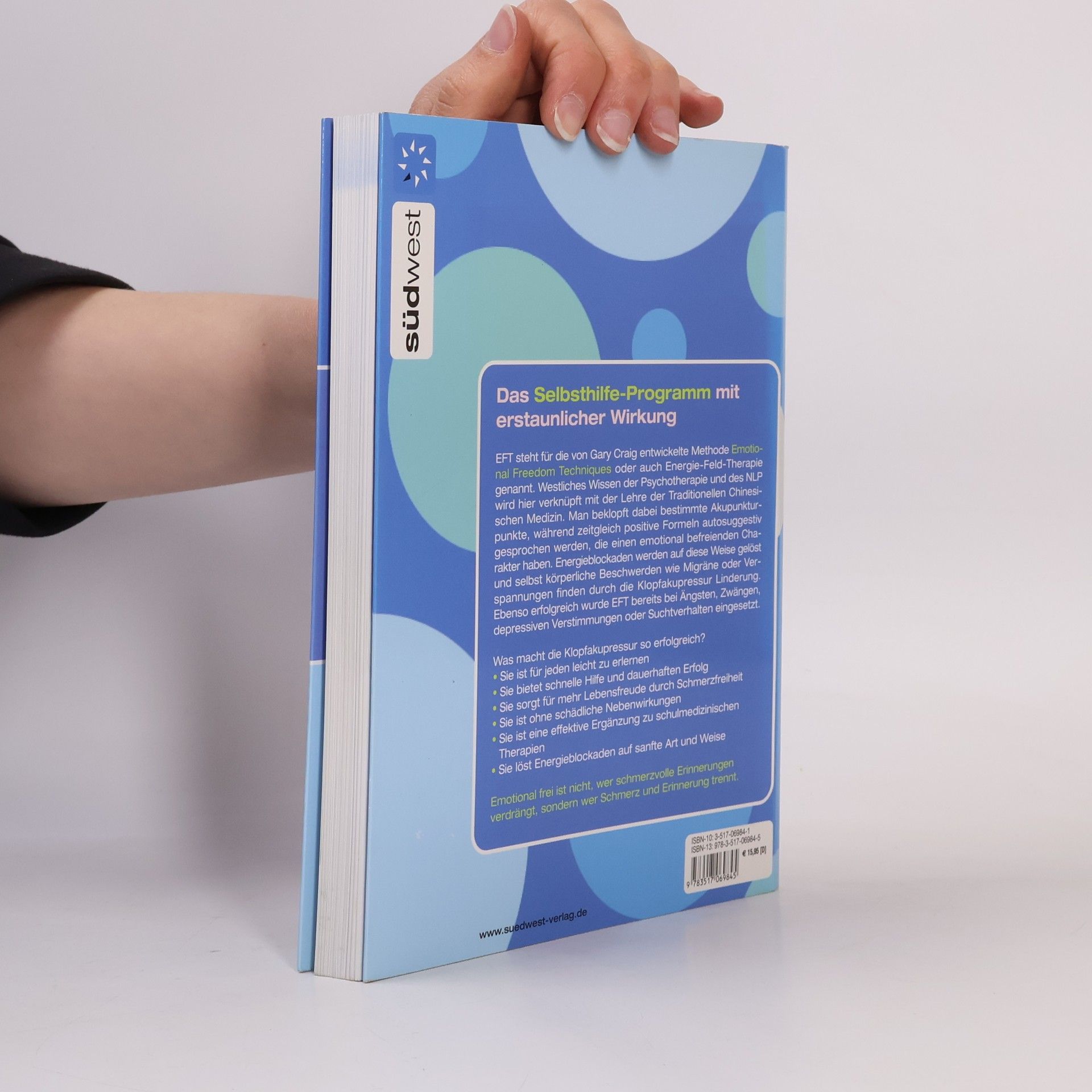 Besser als jede Medizin EFT steht für die Methode 'Emotional Freedom Techniques' oder auch Energie-Feld-Therapie genannt. Hier wird westliches Wissen der Psychotherapie und des NLP verknüpft mit der Lehre der Traditionellen Chinesischen Medizin. Das Beklopfen bestimmter Akupunkturpunkte und die autosuggestive Kraft hypnotherapeutischer Vorgehensweise ermöglichen, Blockaden zu lösen und innere Zufriedenheit und Ausgeglichenheit zu erlangen. Die Klopfakupressur ist ein Selbsthilfe-Programm, um Alltagsbeschwerden in den Griff zu bekommen. * EFT - eine verblüffend wirksame Methode, die in kurzer Zeit von Alltagsbeschwerden befreit * EFT wird erfolgreich eingesetzt bei Stresssymptomen, Ängsten, Migräne, Nacken-, Hals- und Schulterschmerzen und vielen anderen Beschwerden * Die Erfolgsquote von EFT liegt bei über 80%