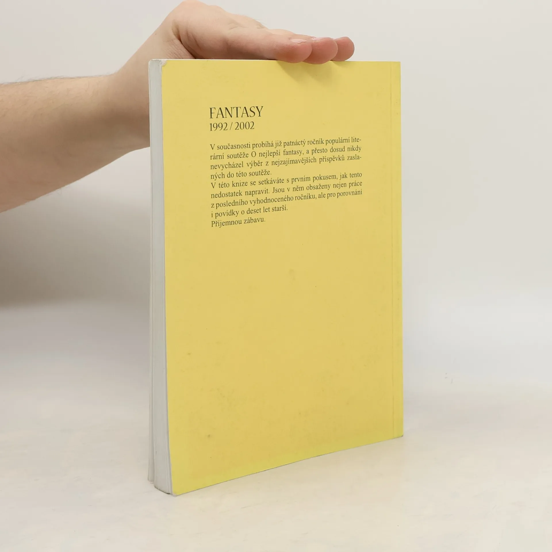 V současnosti probíhá již patnáctý ročník populární literární soutěže O nejlepší fantasy, a přesto dosud nikdy nevycházel výběr z nejzajímavějších příspěvků zaslaných do této soutěže. V této knize se setkáváte s prvním pokusem, jak tento nedostatek napravit. Jsou v něm obsaženy nejen práce z posledního vyhodnoceného ročníku, ale pro porovnání i povídky o deset let starší.