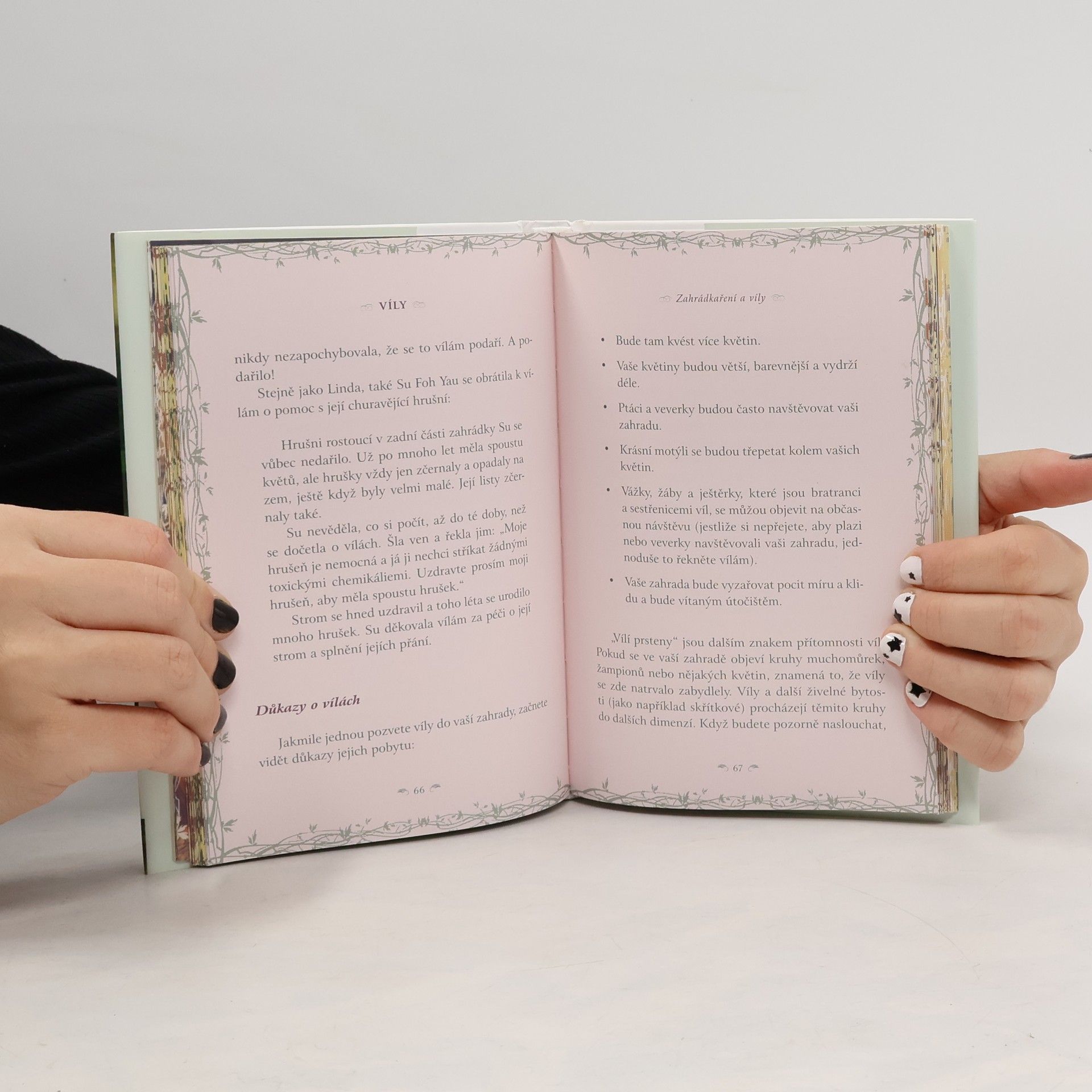 Spřátelte se s vílami! V této osvícené knize Doreen Virtue jasně vysvětluje, kdo víly jsou, jak nám pomáhají a jakými způsoby se můžeme spojit s jejich kouzelnou energií. Pravdivé příběhy lidí, kteří se s vílami setkali a jimž byla pomoc víl prospěšná, dokumentují učení Doreen. Uvidíte, jak se k nám víly připojují, když léčíme sebe nebo naše domácí zvířátka, jak nám pomáhají najít ztracené předměty, jak pomáhají našim zahradám bujně vzkvétat a jak čistí naše životní prostředí.