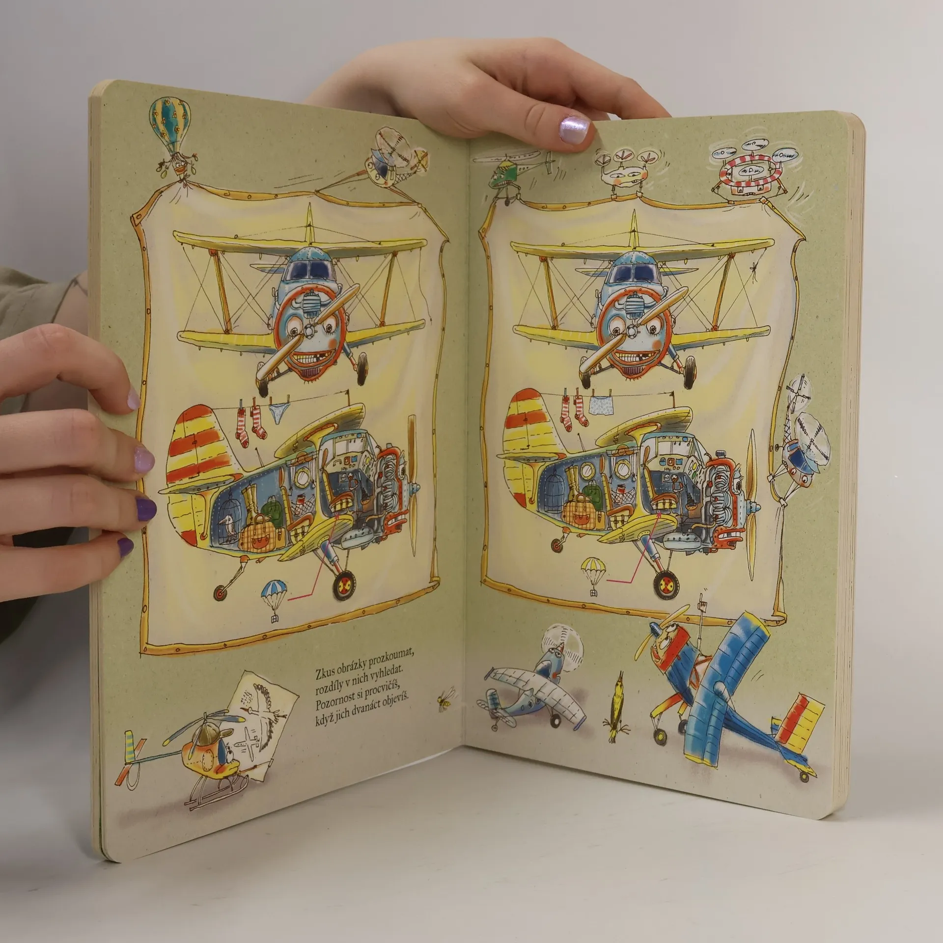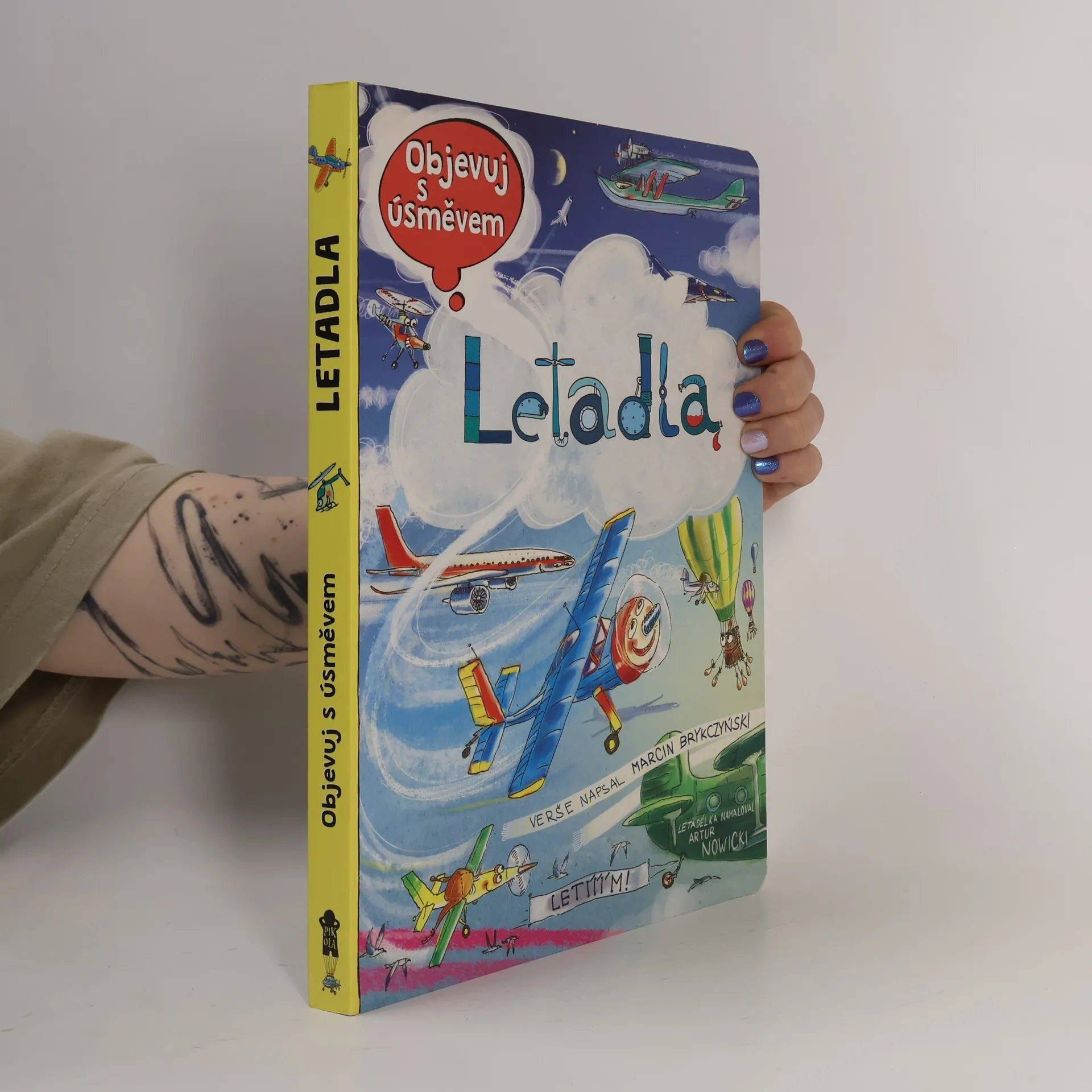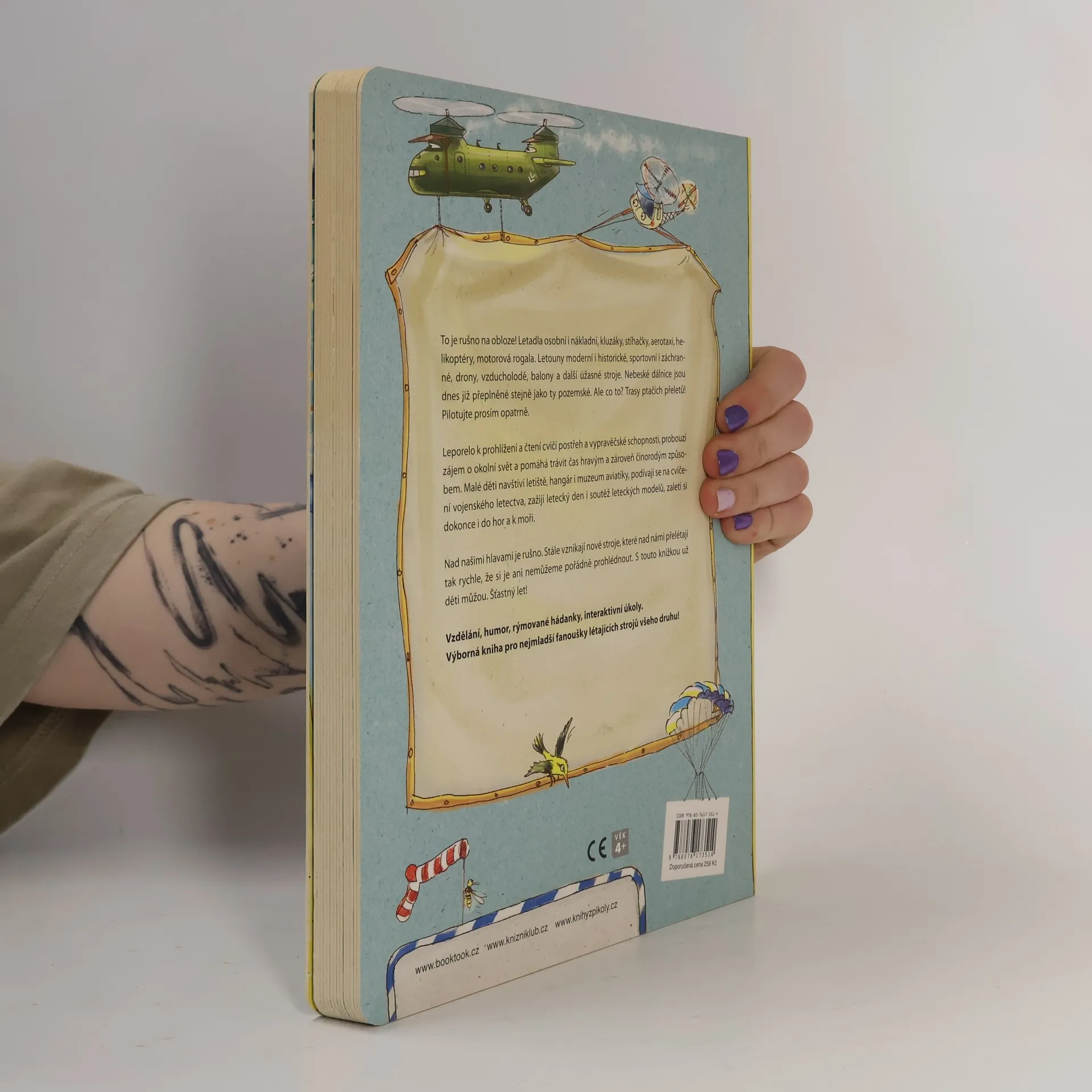 Letadla osobní i nákladní, kluzáky, stíhačky, aerotaxi, helikoptéry, motorová rogala. Letouny moderní i historické, sportovní i záchranné, drony, vzducholodě, balony a další, občas udivující létající stroje. Nebeské dálnice jsou dnes již přeplněné, stejně jako ty pozemské. Ale co to? Pozor! Trasy ptačích přeletů -prosím, leťte opatrně! Leporelo k prohlížení a čtení cvičí postřeh a vypravěčské schopnosti. Malé děti navštíví letiště, hangár i muzeum aviatiky, podívají se na cvičení vojenského letectva, zažijí letecký den i soutěž leteckých modelů, zaletí si dokonce i do hor a k moři. S letadly se nebudou nudit. Šťastný let! Vzdělání, humor, rýmované hádanky, interaktivní úkoly. Výborná kniha pro nejmladší fanoušky létacích strojů všeho druhu! Leporelo je určeno dětem od 4 let.