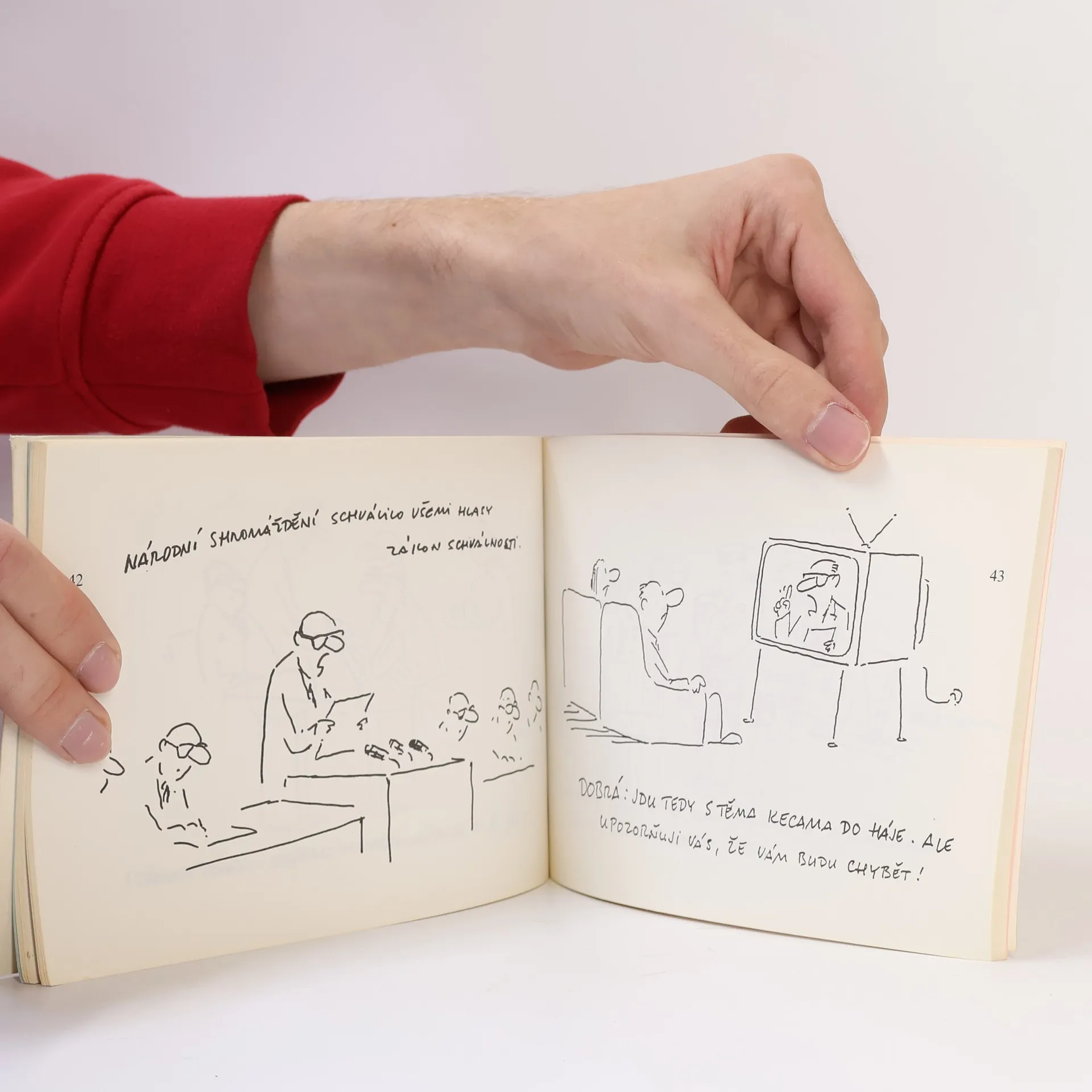 Kniha obsahuje celostránkové kreslené vtipy. Glosují závěrečnou fázi režimu před sametovou revolucí, perestrojku, a dobu během revoluce a těsně po ní.