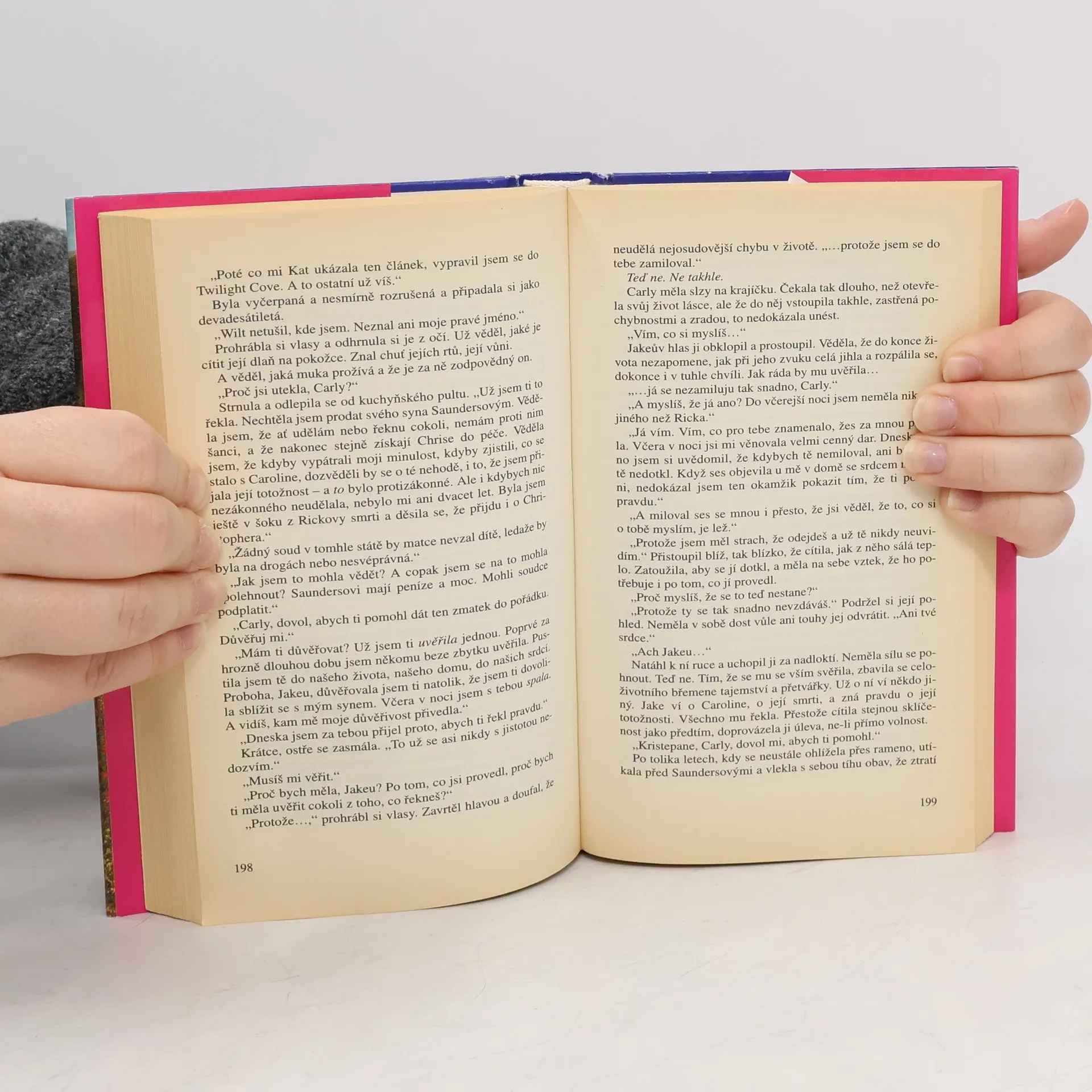 Hrdinka, po tragických událostech, které ji potkaly, buduje nový život pro sebe a zejména pro svého syna, přičemž se celou dobu spoléhá jen sama na sebe, zkušnosti ji radí nikomu nedůvěřovat. Nikdo z ospalého městečka na pobřeží severní Kalifornie neví, že utíká před chybami, které udělala v mládí, před vzpomínkami na svého snoubence a jeho náhlou smrt, a především před jeho bohatými, mocnými rodiči, kteří chtějí jejího syna pro sebe. Po šest let se jí daří svou minulost tajit, konečně si našla stálou práci sevírky a ve volných chvílích se věnuje své veljké lásce - malování. Soukromý detektiv, Jake Montgomery, ode dne, kdy zmizela i s dítětem jeho tragicky zesnulého přítele Ricka Saunderse. Když ji konečně vypátrá pod novým jménem, zjistí, že to už dávno není nespoutaná a neodpovědná mladičká dívka, ale umoudřelá, půvabná a oddaná matka. Postupně se mezi detektivem a jeho kořístí vyváří citové pouto. Jake, zmítaný mezi svým posláním a hlubokou láskou, nalézá jediné východisko. smířit Carly a paní Saundersovou, už kvůli Christopherovi, který nikdy neměl úplnou rodinu jako jeho kamarádi.