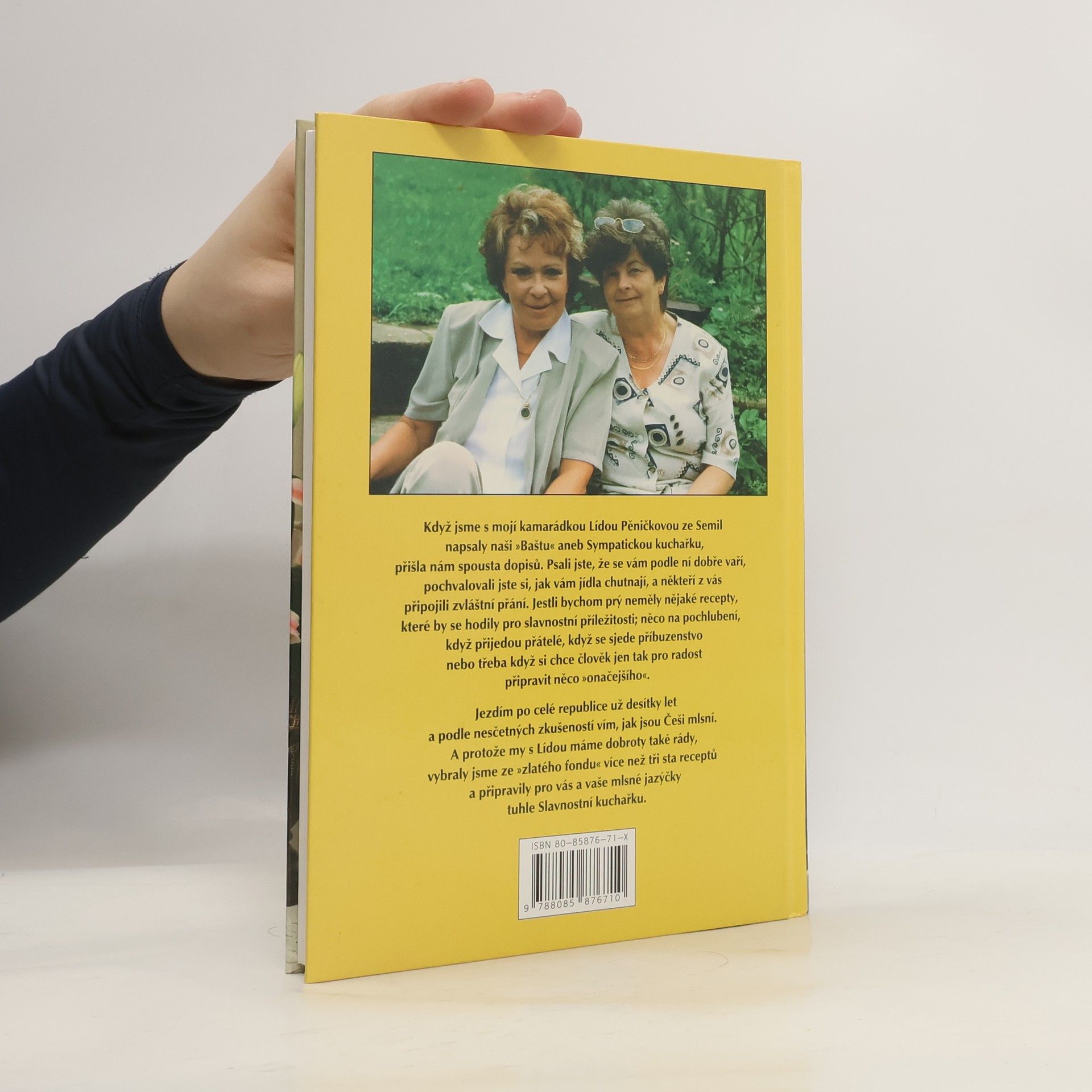 Pokračování titulu Lidi, to je bašta! nabízí desítky receptů určené těm, kdo mají rádi dobrá jídla. Jak napovídá titul Slavnostní kuchařka, sáhnete vždy po této knize, když máte důvod pozvat přátele k netradičně pojaté tabuli.