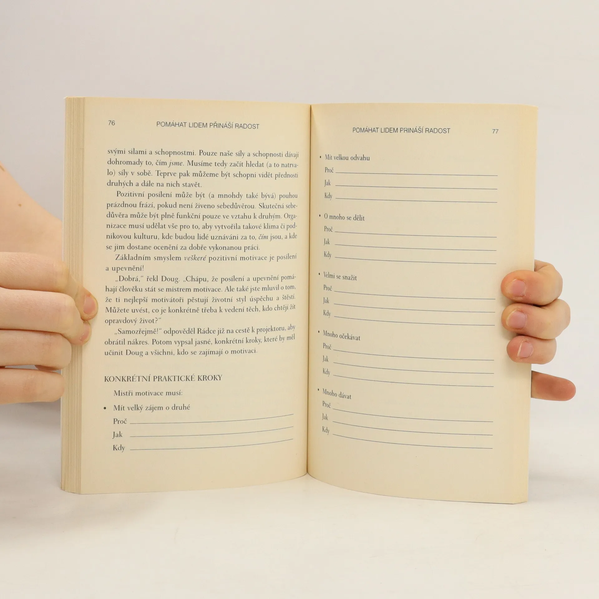 Dva z nejuznávanějších světových motivačních řečníků spojili své síly, aby vám mohli předložit knihu o motivování druhých. Joe Batten, rádce Rosse Perota a autor knihy Tough-Minded Managament a Mark Victor Hansen, spoluautor řady Slepičí polévka pro duši, se spojili, aby vám ukázali, jak povzbudit sebe a druhé ke špičkovému výkonu. Jak se stát mistrem motivace. Prosté, avšak mimořádně účinné principy a kroky v této knize vám pomohou dosáhnout osobního úspěchu a proměnit vaše zaměstnance i podnik.