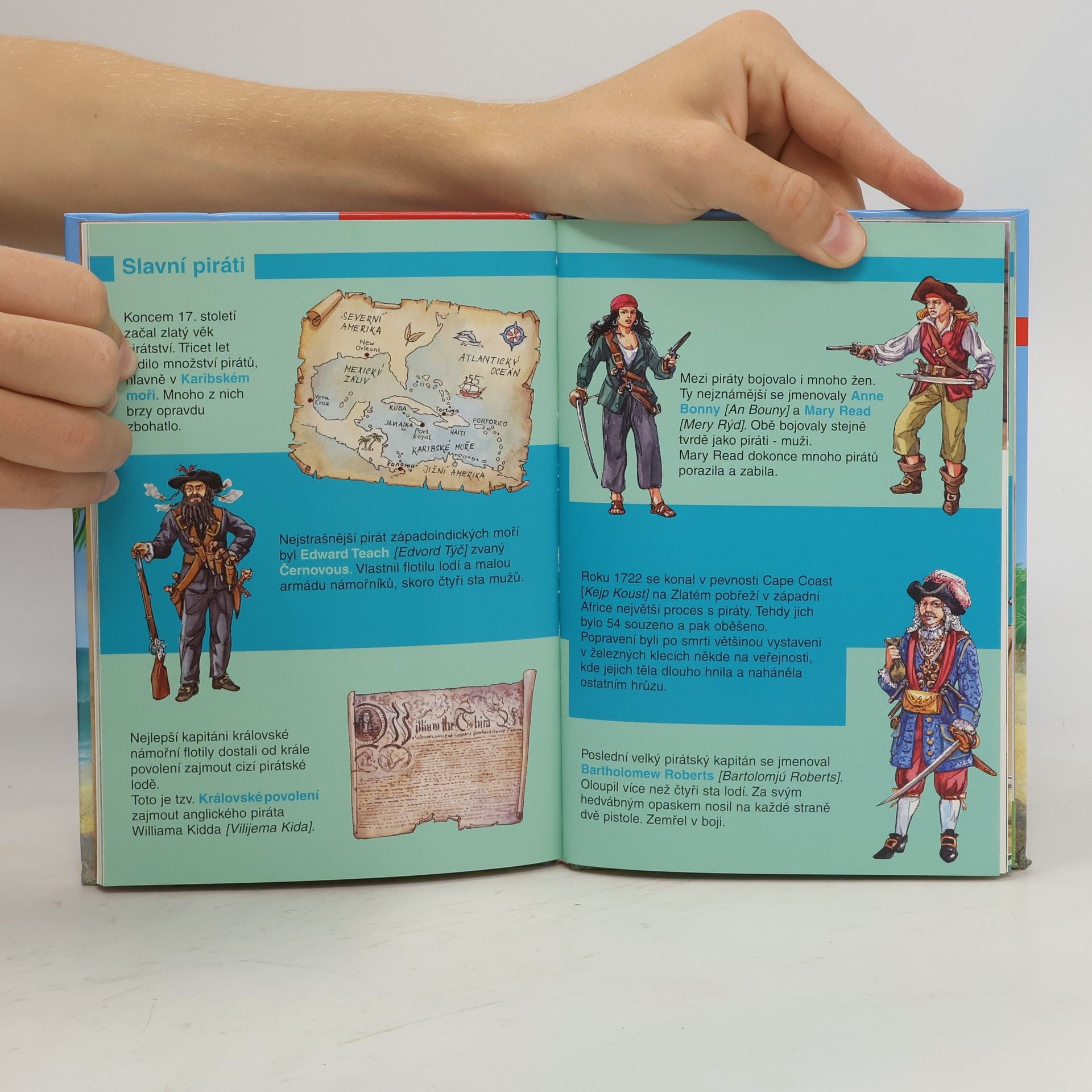 V pěti poutavých příbězích budou čtenáři na pirátských lodích brázdit moře a oceány. Během dobrodružné cesty poznají život pobřežních pirátů, budou svědky přepadení lodi v Karibiku, seznámí se s korzáry, půjdou po stopách starého pirátského pokladu a mnohem víc... Napínavou atmosféru pirátských příběhů doplňují pestré ilustrace.