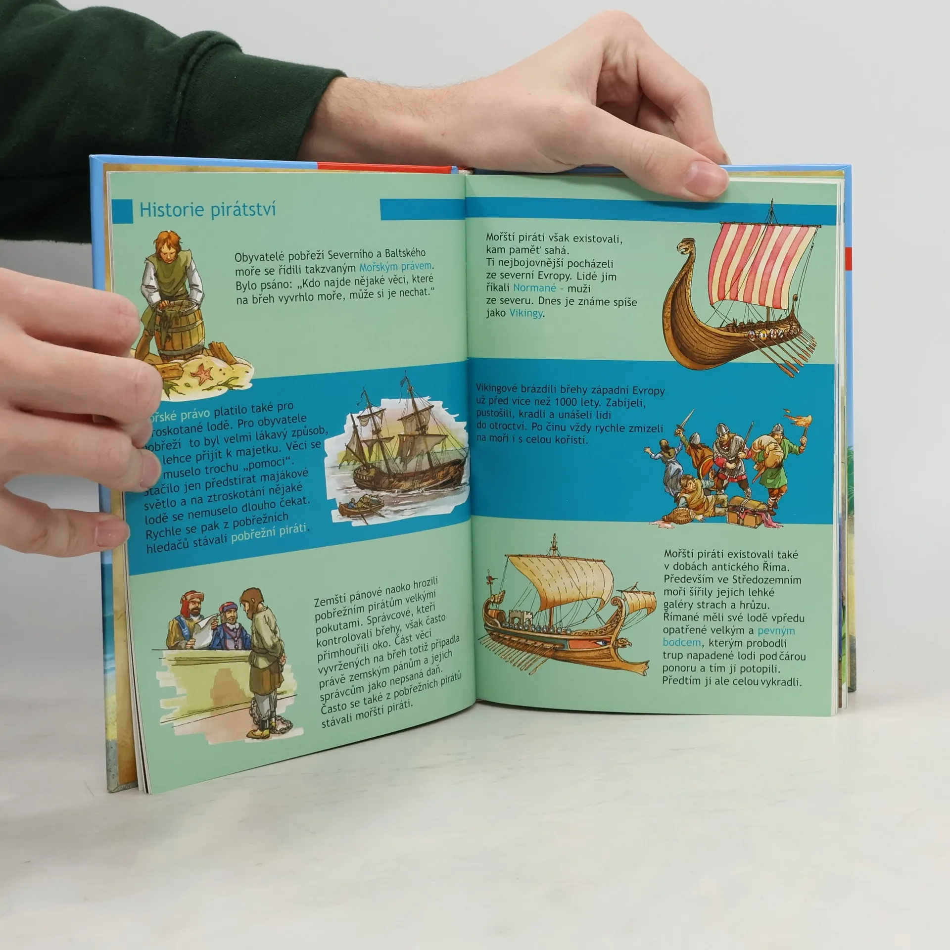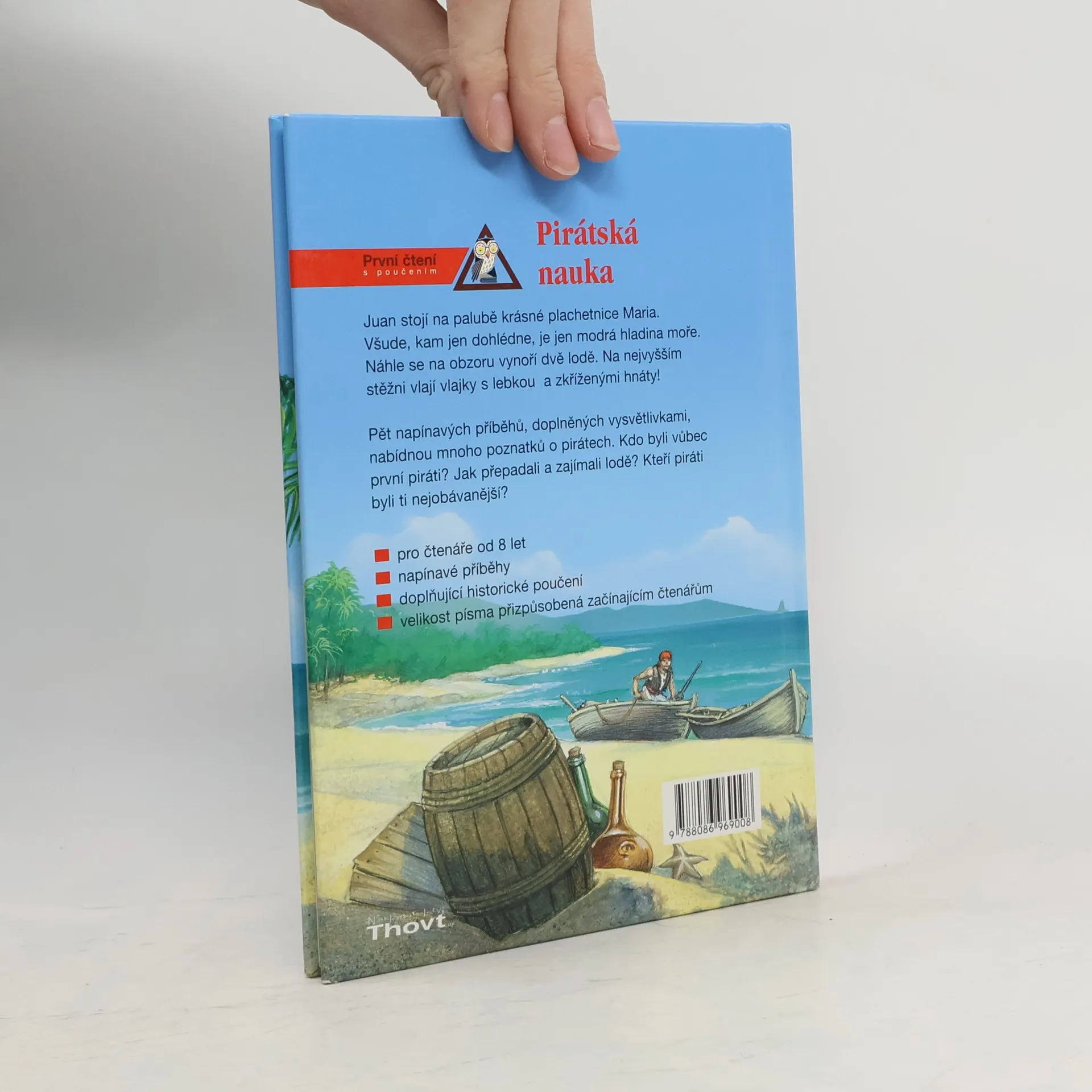 V pěti poutavých příbězích budou čtenáři na pirátských lodích brázdit moře a oceány. Během dobrodružné cesty poznají život pobřežních pirátů, budou svědky přepadení lodi v Karibiku, seznámí se s korzáry, půjdou po stopách starého pirátského pokladu a mnohem víc... Napínavou atmosféru pirátských příběhů doplňují pestré ilustrace.