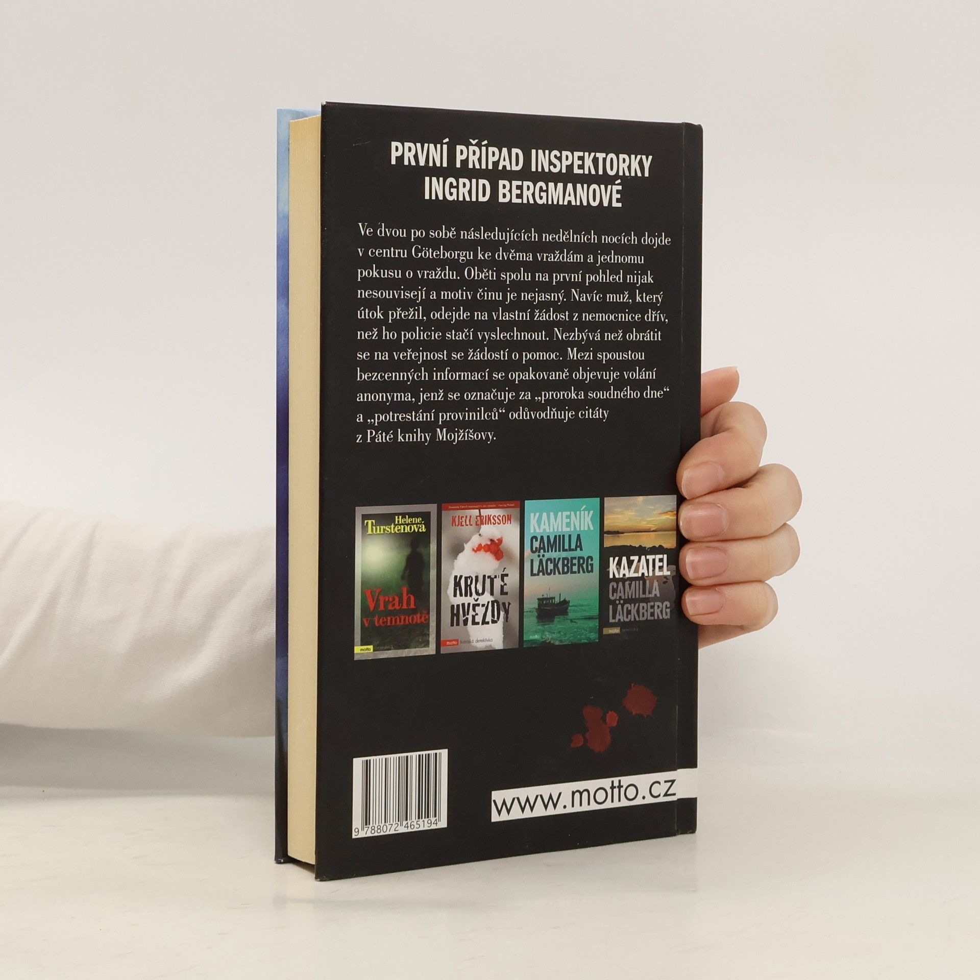 První případ inspektorky Ingrid Bergmanové! Ve dvou po sobě následujících nedělních nocích dojde v centru Göteborgu ke dvěma vraždám a jednomu pokusu o vraždu. Oběti spolu na první pohled nijak nesouvisejí a motiv činu je nejasný. Navíc muž, který útok přežil, odejde navlastní žádost z nemocnice dřív, než ho policie stačí vyslechnout. Nezbývá než obrátit se na veřejnost se žádostí o pomoc. Mezi spoustou bezcenných informací se opakovaně objevuje volání anonyma, jenž se označuje za proroka soudného dne...
