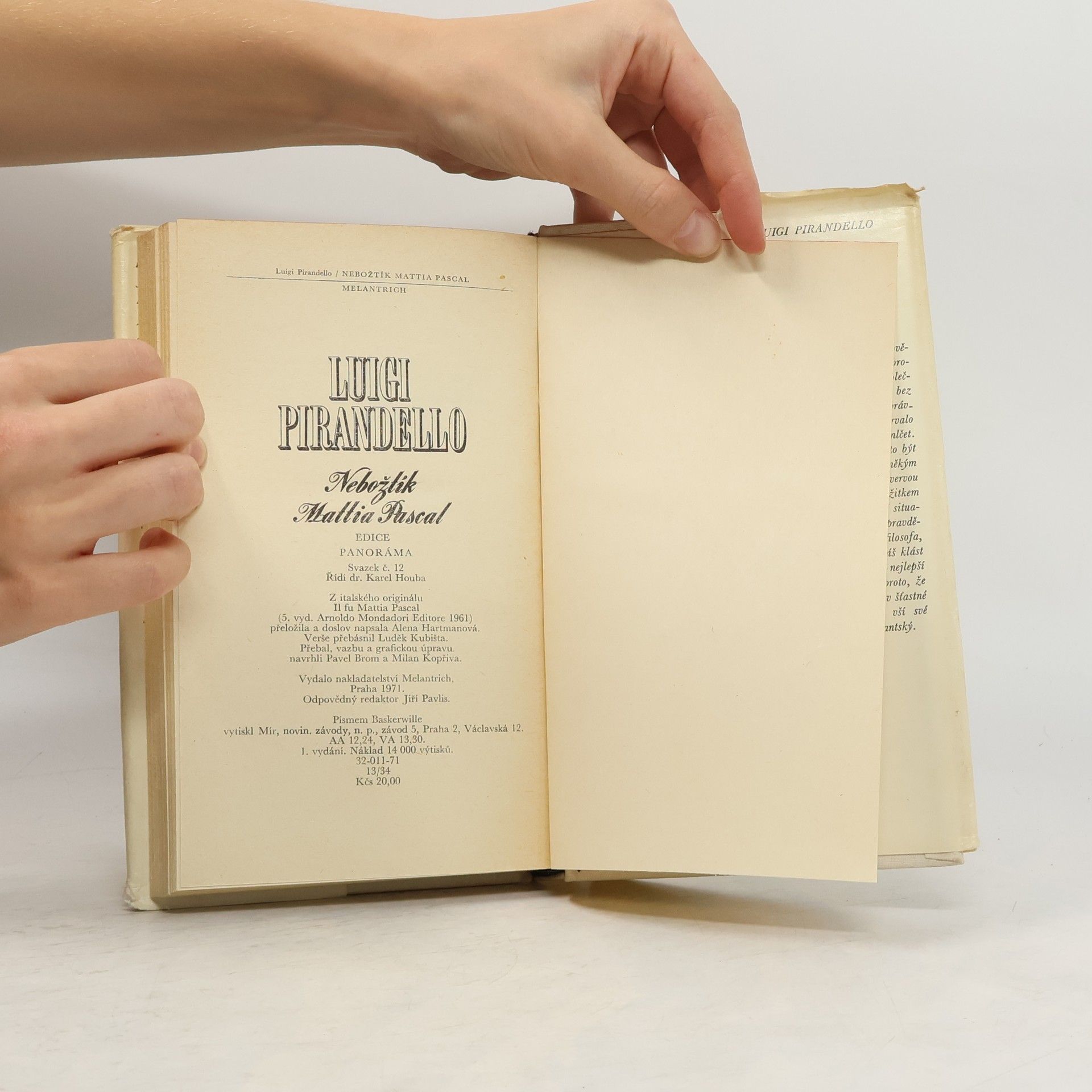 Nebožtík Mattia Pascal, Luigi Pirandello, Alena Hartmanová, Luděk Kubišta
