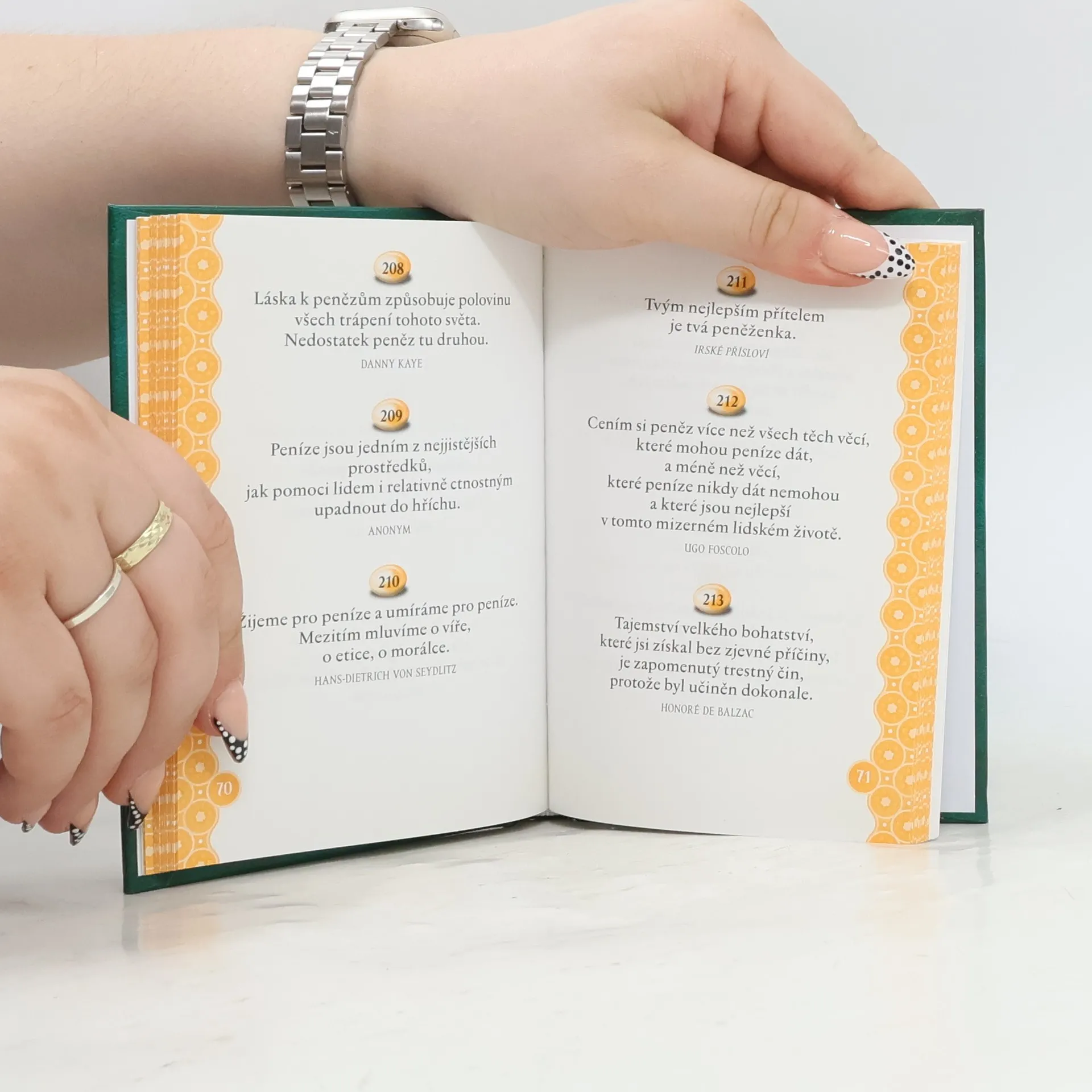 Otázka, zda peníze přinášejí štěstí, je pravděpodobně tak stará jako samy peníze. Tato antologie obsahuje moudré úvahy, přísné výtky, vtipné myšlenky i opovržlivé výroky, jimiž slavní i neznámí lidé všech dob - řečtí i římští filozofové, geniové finančního trhu, průmyslu, spisovatelé, světci, prostopášníci a mnozí další - prozrazují, co si myslí o penězích a bohatství. Pořadatel si přeje, aby ta či ona myšlenka vzbudila u čtenáře úsměv, a nějaká další ho dokonce nechala uvažovat o pomíjivé, jakkoli okouzlující, hodnotě peněz a bohatství.