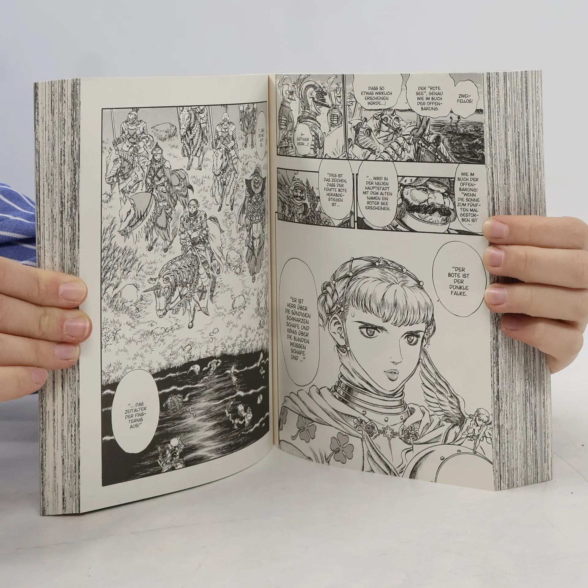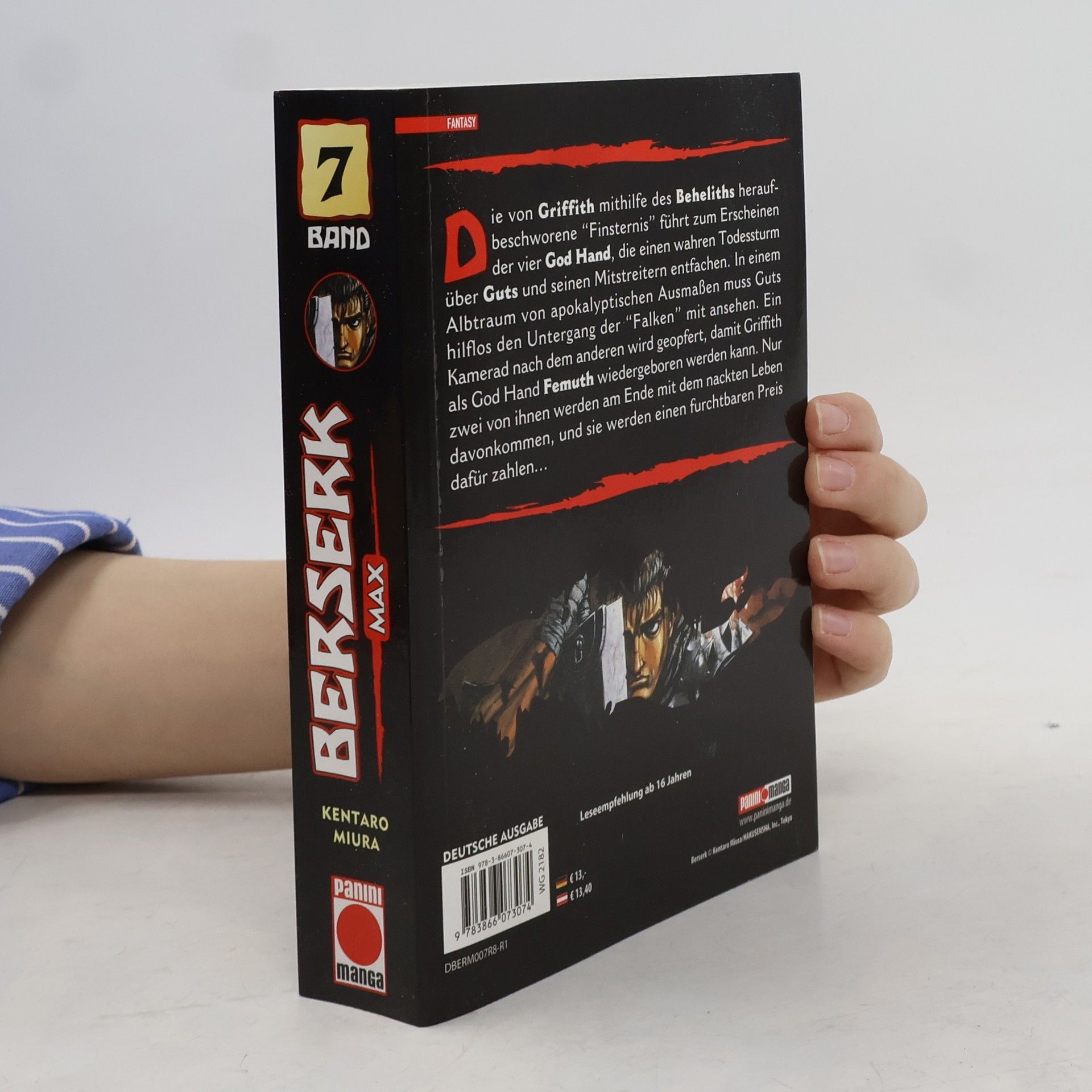 Das legendäre Manga-Dark-Fantasy-Epos in doppelter Max-Ausgabe mit über 400 Seiten! Erlebe den erbarmungslosesten Rachefeldzug der Mangageschichte! Begleite Guts und seine Gefährten auf ihren Reisen durch eine unbarmherzige Welt voller Monster jenseits deiner Vorstellungskraft … Mit einem gigantischen Schwert über der Schulter und einem Arm aus Stahl sinnt der als „Schwarze Ritter“ bekannte Söldner Guts nur auf eins: Rache! Nichts hält ihn auf und während sein Schwert nach Blut dürstet und Dämonen und düstere Fabelwesen seinen Pfad abzeichnen. Eine bildgewaltige Geschichte über Verrat, Gier, die Tugend der Freundschaft und Opferbereitschaft. Das erwartet dich in Band 7: Guts entscheidet sich, Rikkelt und die immer noch verstörte Kjaskar beim Schwertschmied Godot zurückzulassen und wieder einmal alleine seines Weges zu gehen. Doch furchterregende Wesen aus dem Schattenreich sind seine ständigen Begleiter, und jede Nacht muss er aufs Neue zu einem Überlebenskampf gegen die Kräfte der Finsternis antreten. Doch dann begegnet Guts der frechen Elfe Puck und einem verängstigten Mädchen. Beinhaltet die regulären Bände Berserk 13 und 14. Für Fans von Action-, Dark-Fantasy- und Horrormanga!