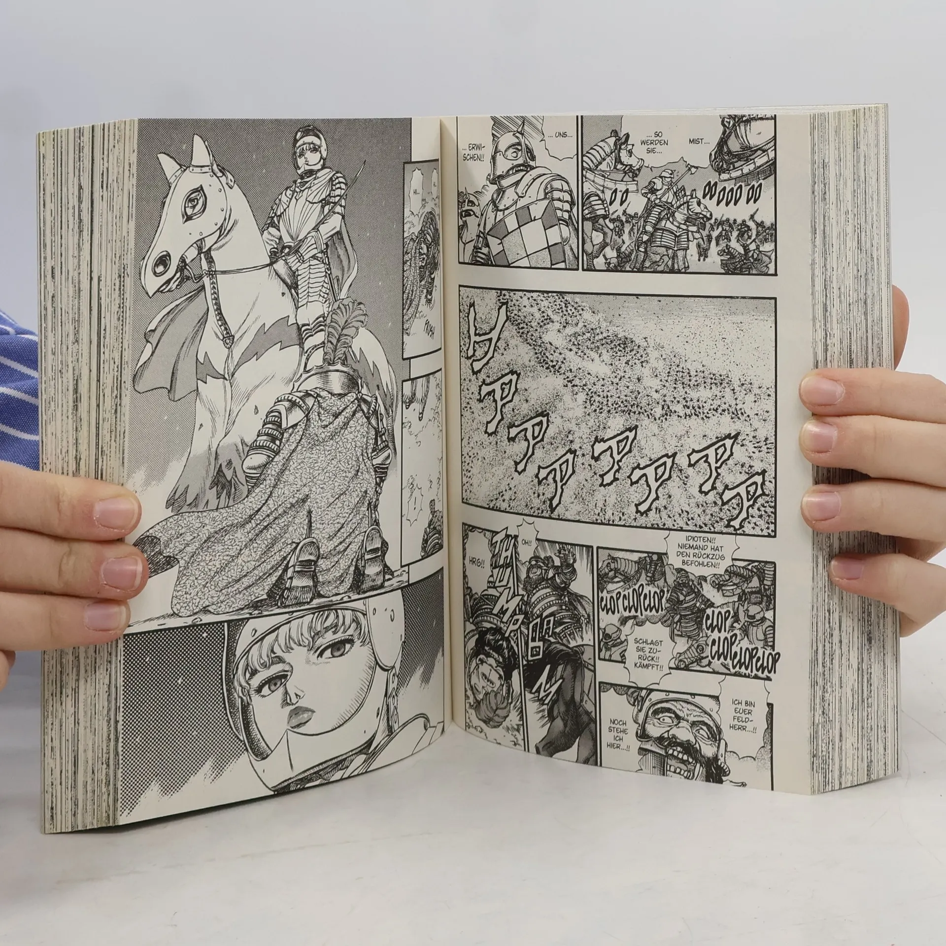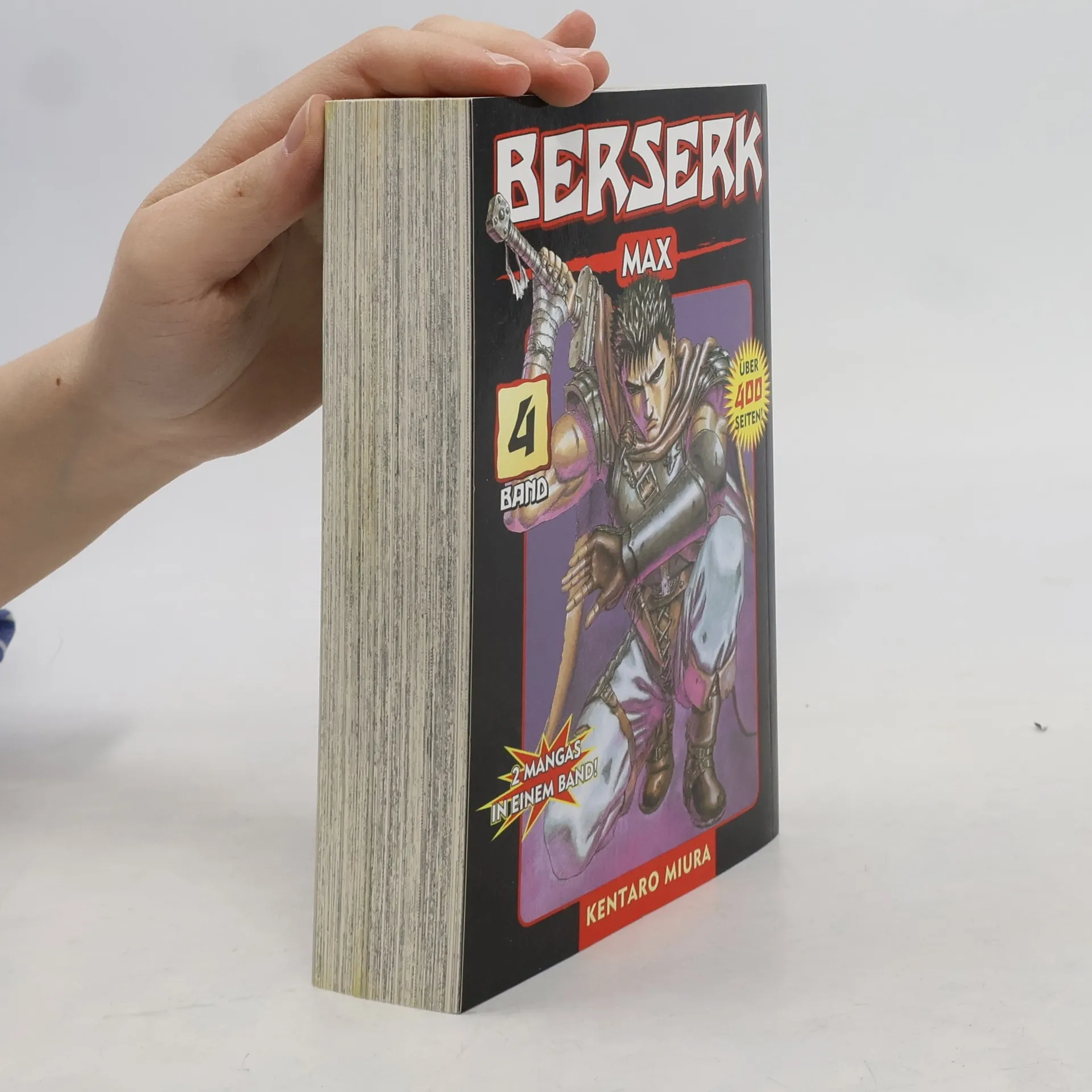 Das legendäre Manga-Dark-Fantasy-Epos in doppelter Max-Ausgabe mit über 400 Seiten! Erlebe den erbarmungslosesten Rachefeldzug der Mangageschichte! Begleite Guts und seine Gefährten auf ihren Reisen durch eine unbarmherzige Welt voller Monster jenseits deiner Vorstellungskraft … Mit einem gigantischen Schwert über der Schulter und einem Arm aus Stahl sinnt der als „Schwarze Ritter“ bekannte Söldner Guts nur auf eins: Rache! Nichts hält ihn auf und während sein Schwert nach Blut dürstet und Dämonen und düstere Fabelwesen seinen Pfad abzeichnen. Eine bildgewaltige Geschichte über Verrat, Gier, die Tugend der Freundschaft und Opferbereitschaft. Das erwartet dich in Band 4: Die Falken erlangen immer mehr Stärke und Berühmtheit und so beschließt der König von Midland, sie im Kampf gegen eine uneinnehmbare Festung auszusenden. Doch die von Griffith entwickelte Strategie gemeinsam mit der Kraft und Ausdauer der von Guts angeführten Soldaten, macht das Unmögliche möglich! Durch diesen Triumph wird Griffiths Popularität am Hofe des Königs noch größer, weckt jedoch auch den Zorn vieler wichtiger Personen. Darunter den der Königin! Beinhaltet die regulären Bände Berserk 7 und 8. Für Fans von Action-, Dark-Fantasy- und Horrormanga!