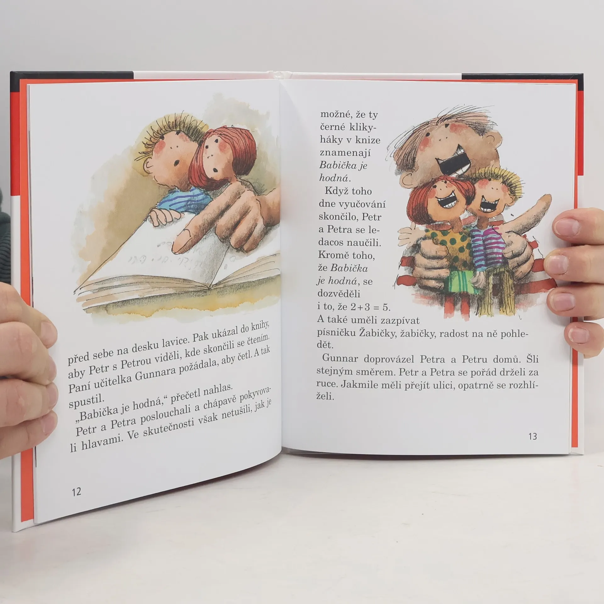 V jedné stockholmské škole se před několika lety stalo něco opravdu pozoruhodného. V první třídě měli právě čtení a vtom se ozvalo zaklepání na dveře. A když se dveře otevřely, stály za nimi dvě maličké děti, ne větší než panenky. Petr a Petra, tak se skřítkové jmenovali, poprosili paní učitelku, zda by nemohli taky chodit do školy. A co bylo dál? Prozradí půvabná knížka Astrid Lindgrenové o přátelství dětí a skřítků.