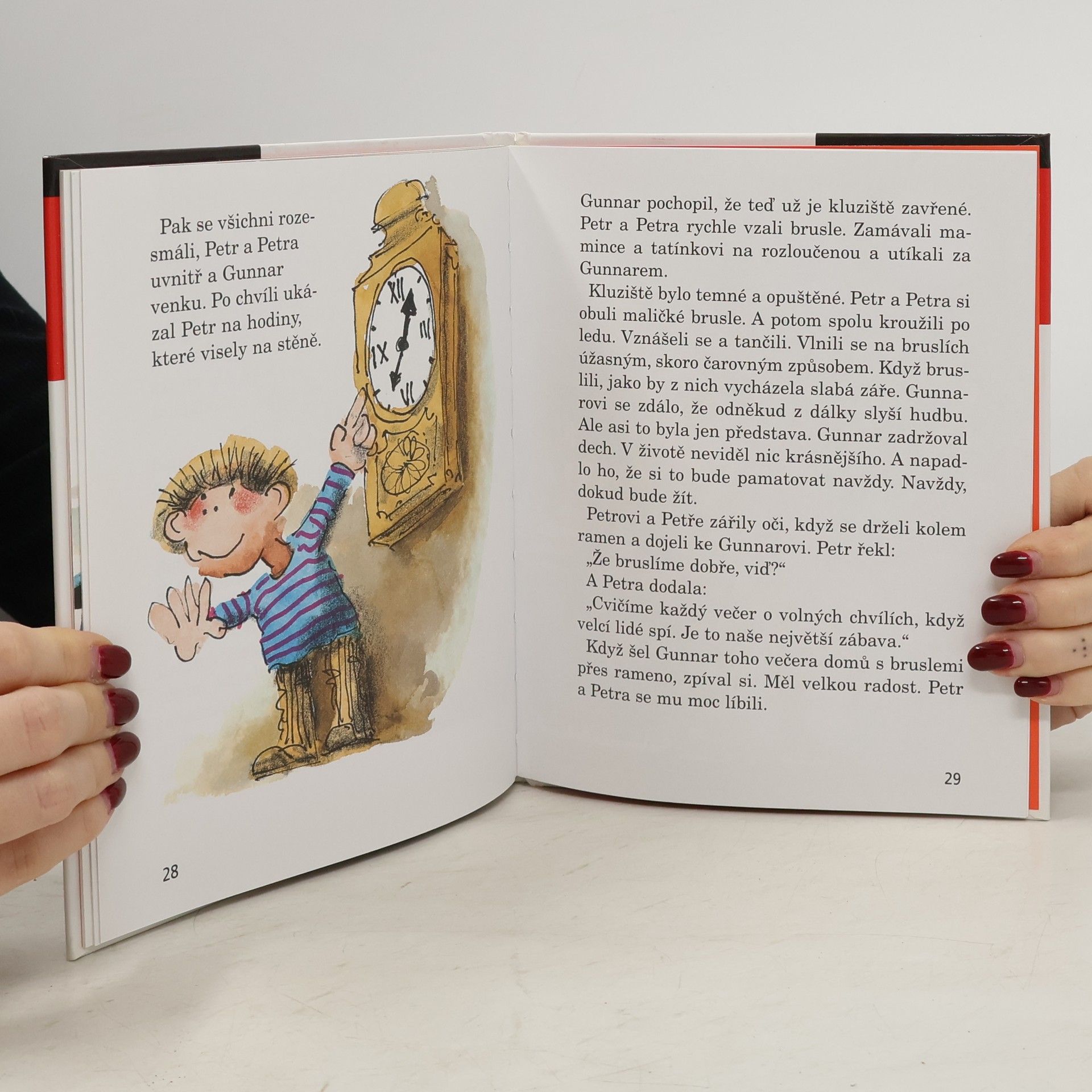 V jedné stockholmské škole se před několika lety stalo něco opravdu pozoruhodného. V první třídě měli právě čtení a vtom se ozvalo zaklepání na dveře. A když se dveře otevřely, stály za nimi dvě maličké děti, ne větší než panenky. Petr a Petra, tak se skřítkové jmenovali, poprosili paní učitelku, zda by nemohli taky chodit do školy. A co bylo dál? Prozradí půvabná knížka Astrid Lindgrenové o přátelství dětí a skřítků.