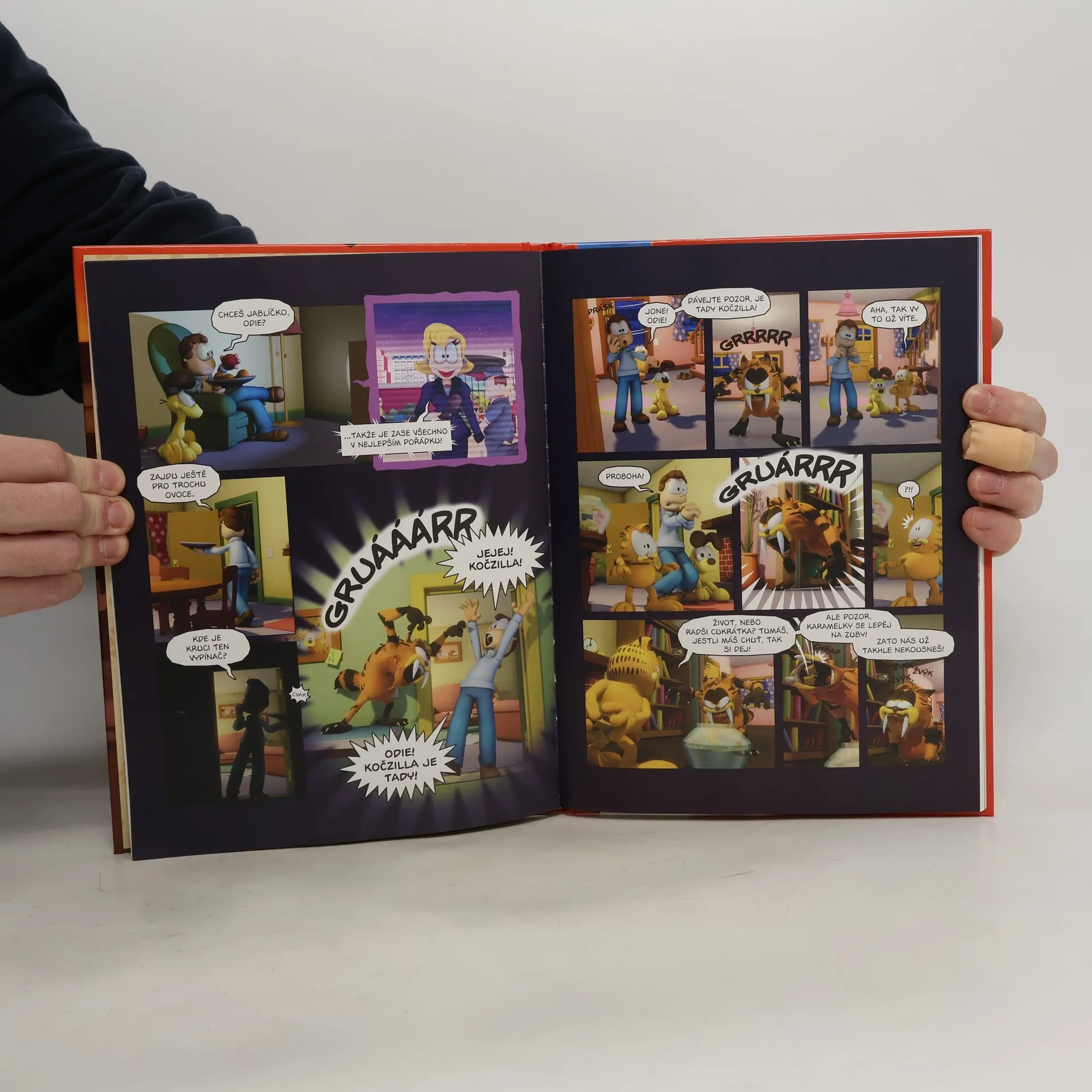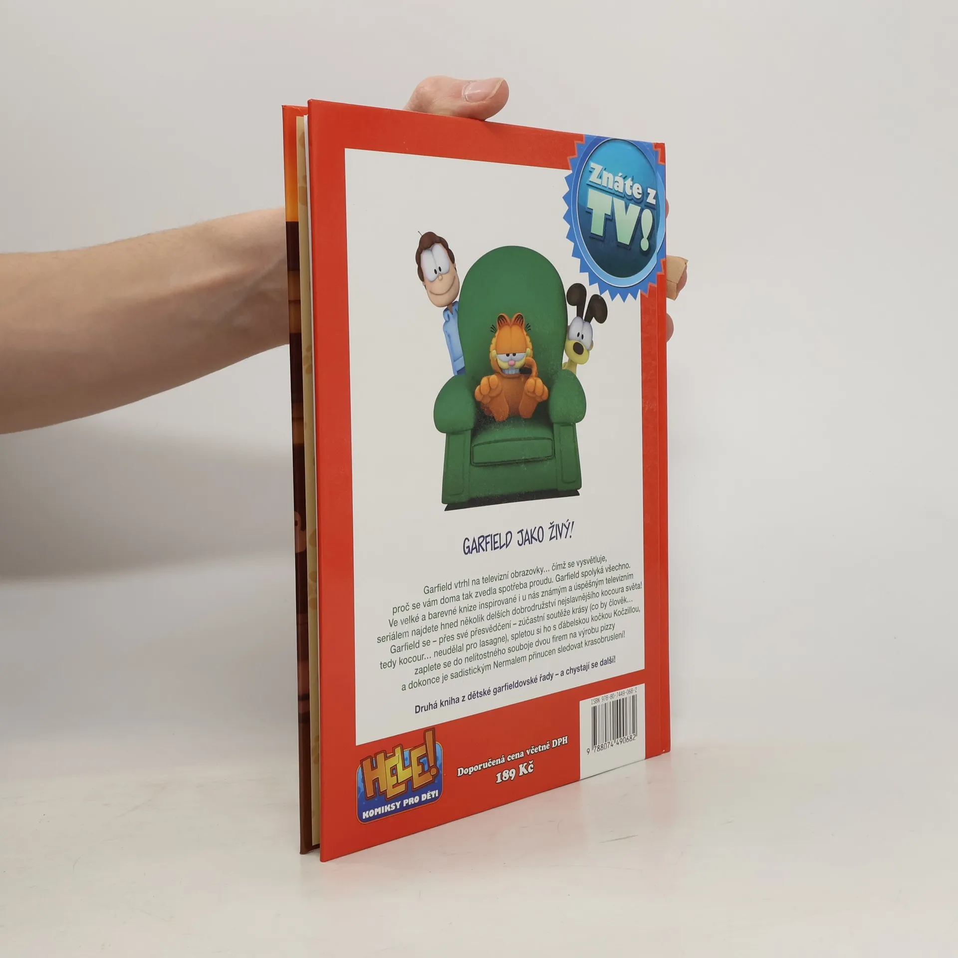 Garfield vtrhl na televizní obrazovky... čímž se vysvětluje, proč se vám doma tak zvedla spotřeba proudu. Garfield spolyká všechno. Ve velké a barevné knize inspirované i u nás známým a úspěšným televizním seriálem najdete hned několik delších dobrodružství nejslavnějšího kocoura světa! Garfield se - přes svě přesvědčení - zúčastní soutěže krásy (co by člověk... tedy kocour... neudělal pro lasagne), spletou si ho s ďábelskou kočkou Kočzillou, zapletou se do nelítostného souboje dvou firem na výrobu pizzy a dokonce je sadistickým Nermalem přinucen sledovat krasobruslení!