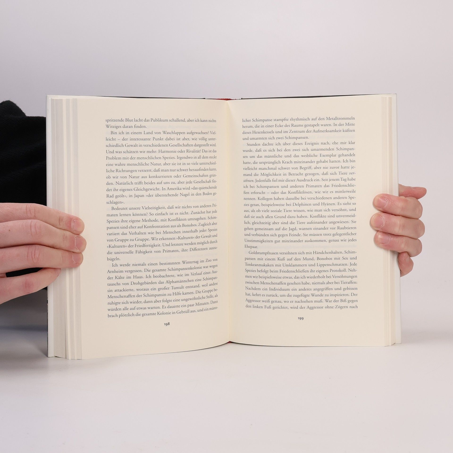 Sind Fußballfans nicht wie eine Horde wild gewordener Affen? Erinnert manch cholerischer Chef nicht an einen wütenden Gorilla? De Waal, der den Menschen irgendwo zwischen den sanften Bonobos und den aggressiven Schimpansen ansiedelt, beweist im direkten Vergleich zwischen Primaten, Managern und Politikern, dass das menschliche Verhalten im Grunde evolutionär bestimmten Schemata folgt. Ob es um Macht geht, um Gewalt oder Zuneigung: Der Mensch kann seine Verwandtschaft mit den Primaten nicht verleugnen. Eine unterhaltsame und kluge Erklärung, warum wir so sind, wie wir sind.