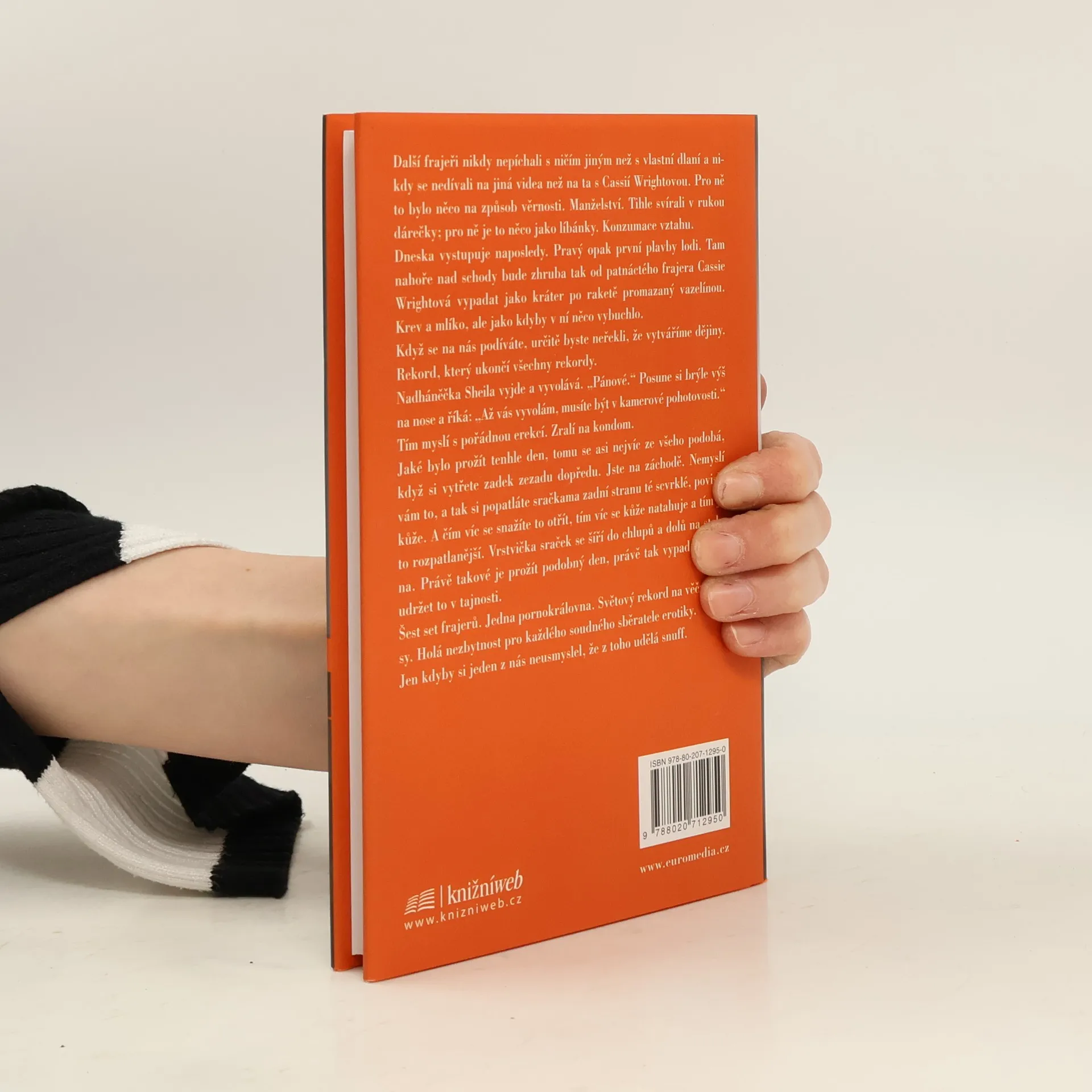 Román pro tři pornoherce a jednu asistentku. Termínem "snuff" se označují ilegální pornofilmy, v nichž je zachycena vražda či zabití. Nebo předstírání téhož, ale to už není ono. Jde o žádané zboží na trhu. V Palahniukově románu jde o smrt netradiční a přízračnou - jinak to ani u něj být nemůže: slavná pornoherečka Cassie Wrightová chce překonat stávající rekord v souložení s muži, který vytvořila Annabel Chong. Ta za deset hodin absolvovala 251 milostných aktů se zhruba sedmdesáti muži. Cassie nechce podvádět, a tak hodlá obsloužit rovných 600 mužů. A smrt? Podle Palahniuka nedokáže lidské tělo zvládnout takovou zátěž, herečka předpokládá, že při tom zemře na embolii. Cassie chce utvořit rekord na věčné časy: doufá, že když při něm zemře, oficiální místa honbu za dalšími rekordy zakáží a její výkon zůstane navždy nejlepší. Každý z oněch 600 mužů má svůj specifický důvod. Číslo 600 je bývalý slavný pornoherec Branch Bacardi, který s Cassie, které je skoro čtyřicet, natočil spoustu scén. Číslo 137 by si Cassie chtěl vzít a pořád se dopuje viagrou. A číslo 72 je její odložený syn, jenž touží po setkání s matkou. Všichni tři čekají v místnosti k prasknutí nacpané dalšími muži, kteří se udržují neustále připraveni k akci, v čemž je podporují i slavné filmové kousky z profesionální minulosti hlavní aktérky. Show může začít.