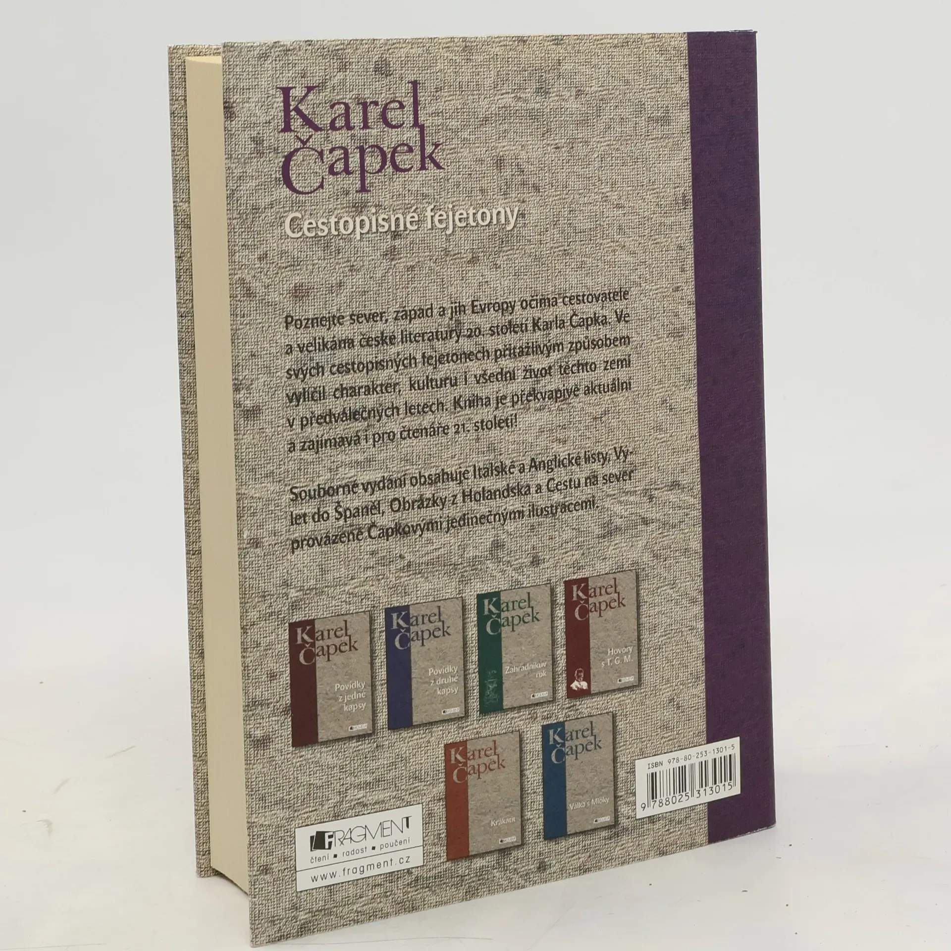 Poznejte sever, západ a jih Evropy očima cestovatele a velikána české literatury 20. století Karla Čapka. Ve svých cestopisných fejetonech přitažlivým způsobem vylíčil charakter, kulturu i všední život těchto zemí v předválečných letech. Kniha je překvapivě aktuální a zajímavá i pro čtenáře 21. století! Souborné vydání obsahuje Italské a Anglické listy, Výlet do Španěl, Obrázky z Holandska a Cestu na sever provázené Čapkovými jedinečnými ilustracemi.
