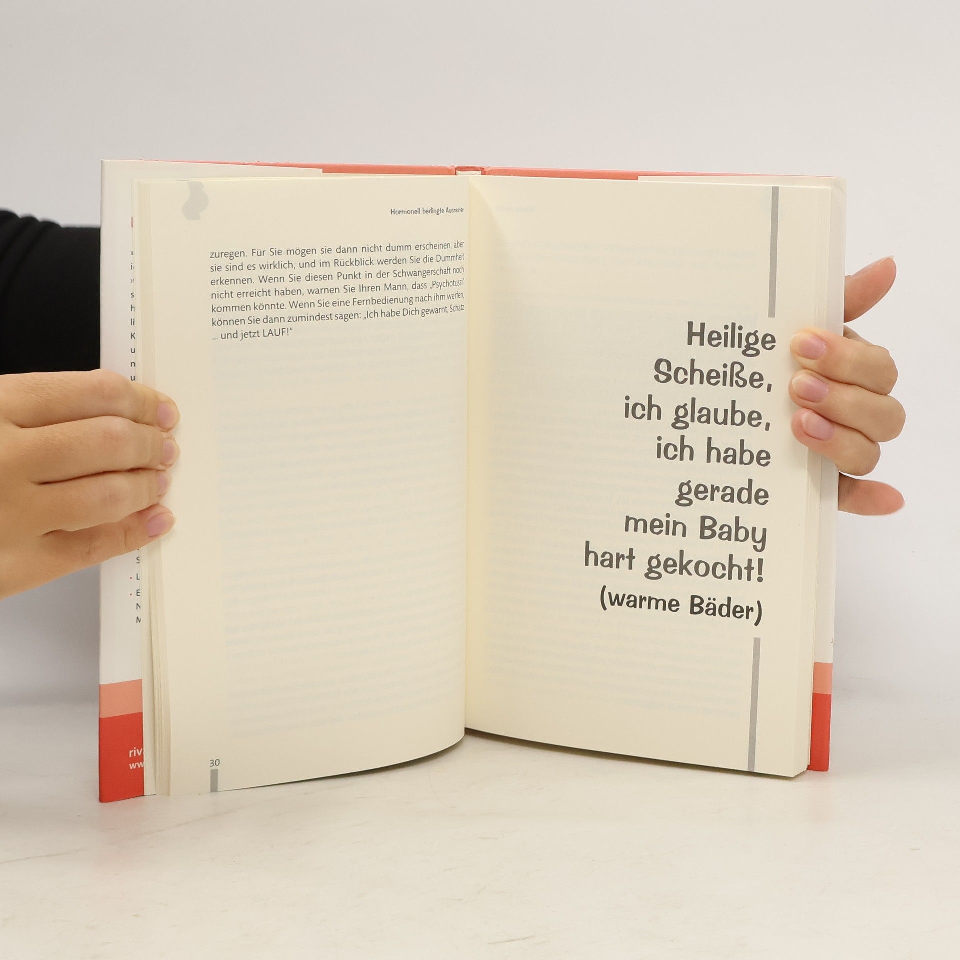 Man ist nicht einfach nur schwanger! Die Liste der Nebenwirkungen ist ellenlang. Eine überempfindliche Nase ist das geringste Übel: „Die Fleischtheke roch für mich nach toten Tieren, die ein Jahr lang in der Sonne gelegen hatten. Ich zuckte zusammen und hielt mir im Vorbeigehen den Ärmel vor die Nase. Alles in dem Laden ekelte mich. Fremde glotzten mich dumm an, als sie mich in Gang drei würgen sahen, während ich Käse hochhielt.“, so die Autorin. Nicht zu vergessen die häufigen Wadenkrämpfe im letzten Schwangerschaftsdrittel, verschwommene Sicht, Nasenbluten, Verstopfung, Hämorrhoiden, Besenreißer und die »Linea Negra«. Falsche Eitelkeit ist hier fehl am Platz. Wenn das Kinderkriegen Männersache wäre, wären Adam und Eva die einzigen Menschen geblieben, die jemals auf Erden wandelten. Aber das Endergebnis zählt und das Lächeln eines Kindes ist die ganze Mühe Wert, sagt „Mann“ glücklich – nach der anstrengenden Geburt! Für alles was in der Schwangerschaft wirklich wichtig ist, was Sie brennend interessiert und was Sie sich nie zu fragen wagten, gibt es jetzt dieses Buch.