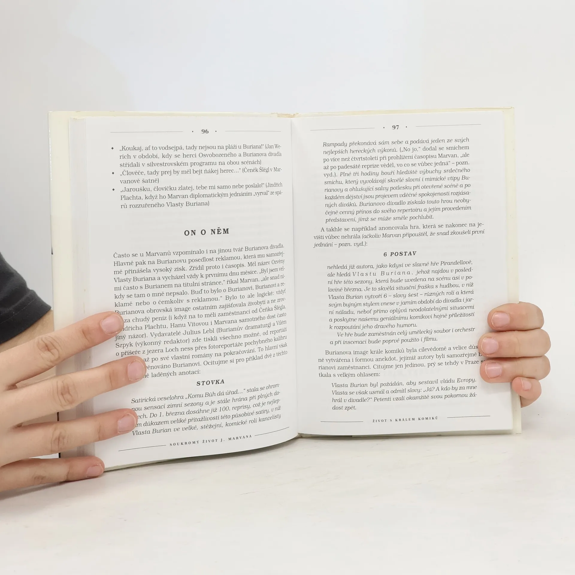 Jaroslav Marvan. Pojem, legenda, jméno, které zná každý. Vídali jsme jej v nesčetných filmových, televizních a divadelních rolích, kterým dával život svým neopakovatelným a osobitým způsobem. Málokdo ovšem ví, jaký byl Jaroslav Marvan ve svém soukromém životě. Právě o něm vypráví tato kniha, kterou připravila hercova neteř společně se svým manželem.... celý text