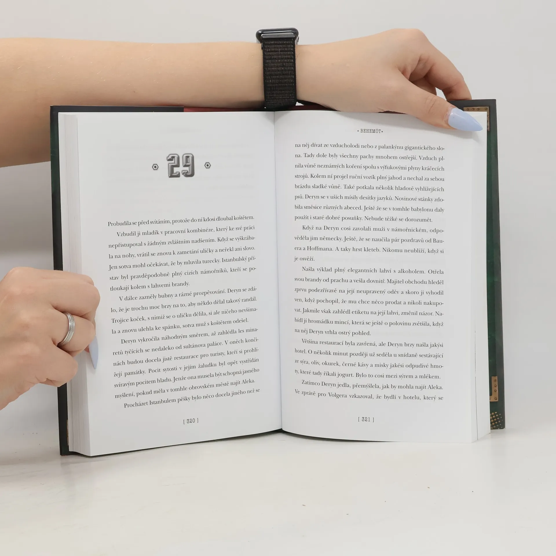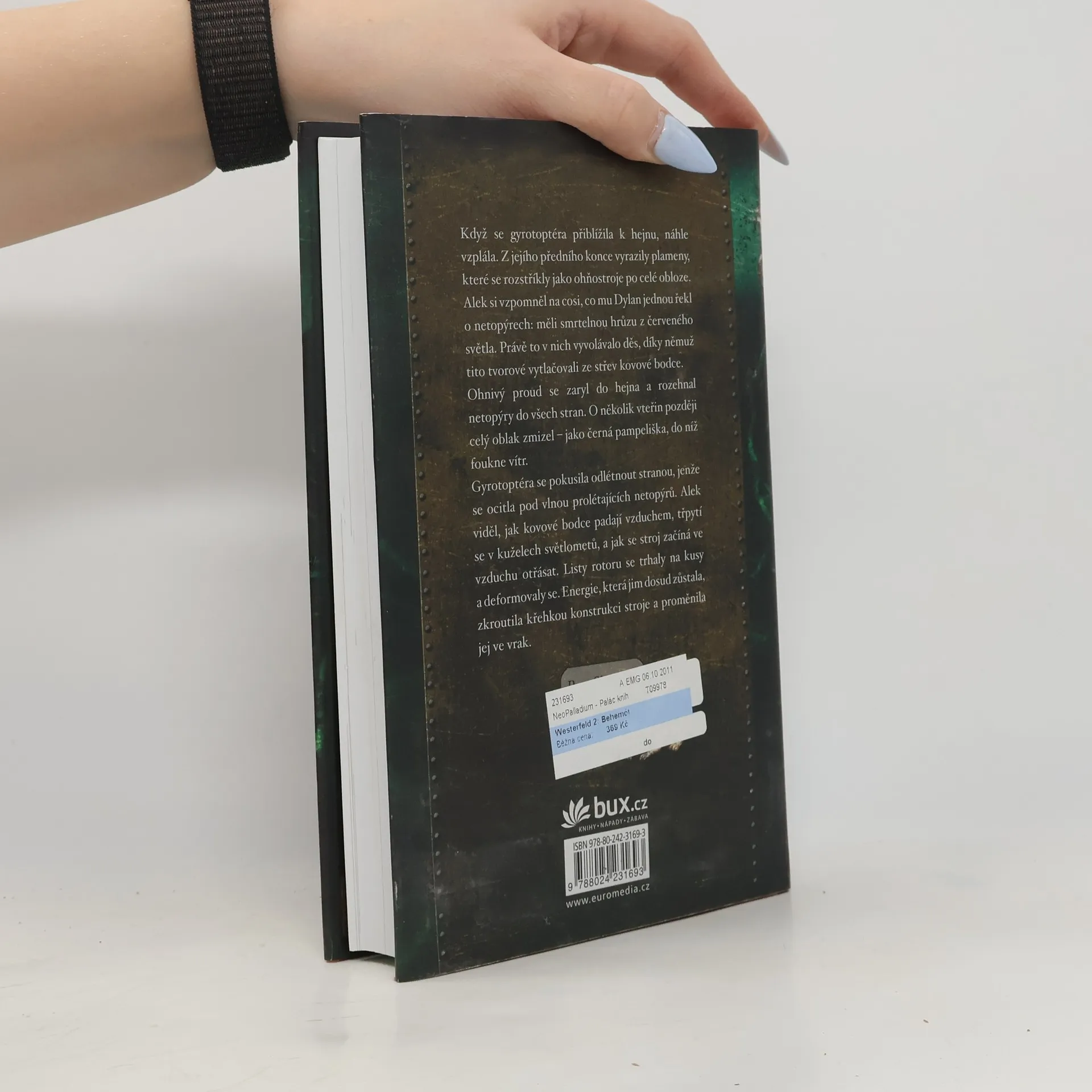 Pokračování steampunkového thrilleru Leviatan se odehrává v Osmanské říši. Behemót je nejdravější z umělých tvorů ve službách britského námořnictva. Dokáže jediným hltem spolknout nepřátelské bitevní lodě. Nyní, když se ocitli ve válce s velmocemi industriálů, ho darwinovci nutně potřebují. Deryn je dívka, která slouží převlečená za chlapce v britském letectvu. Alek je dědicem habsburské říše, skrývající se v převleku za prostého člověka. Když se ti dva sejdou na palubě vzducholodi Leviatan, doufají, že se jim podaří zastavit válku. Poté, co mírová mise vzducholodi skončí katastrofou, zjistí, že se ocitli sami na nepřátelském území, kde musí prchat před pronásledovateli. Alek i Deryn musí prokázat téměř nadlidské schopnosti, najít nové spojence a projevit nesmírnou odvahu, aby mohli čelit všemu, co na ně čeká v ulicích Istanbulu. 1. vydání.