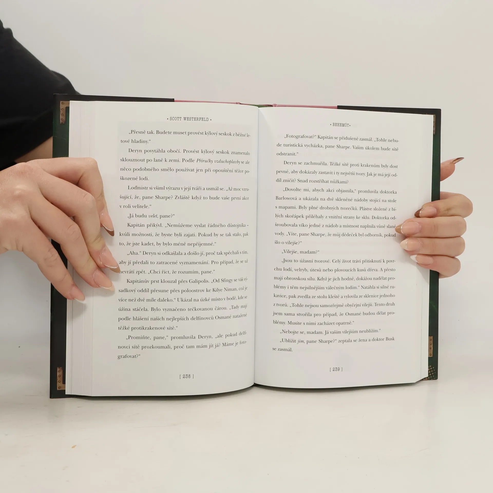 Pokračování steampunkového thrilleru Leviatan se odehrává v Osmanské říši. Behemót je nejdravější z umělých tvorů ve službách britského námořnictva. Dokáže jediným hltem spolknout nepřátelské bitevní lodě. Nyní, když se ocitli ve válce s velmocemi industriálů, ho darwinovci nutně potřebují. Deryn je dívka, která slouží převlečená za chlapce v britském letectvu. Alek je dědicem habsburské říše, skrývající se v převleku za prostého člověka. Když se ti dva sejdou na palubě vzducholodi Leviatan, doufají, že se jim podaří zastavit válku. Poté, co mírová mise vzducholodi skončí katastrofou, zjistí, že se ocitli sami na nepřátelském území, kde musí prchat před pronásledovateli. Alek i Deryn musí prokázat téměř nadlidské schopnosti, najít nové spojence a projevit nesmírnou odvahu, aby mohli čelit všemu, co na ně čeká v ulicích Istanbulu. 1. vydání.