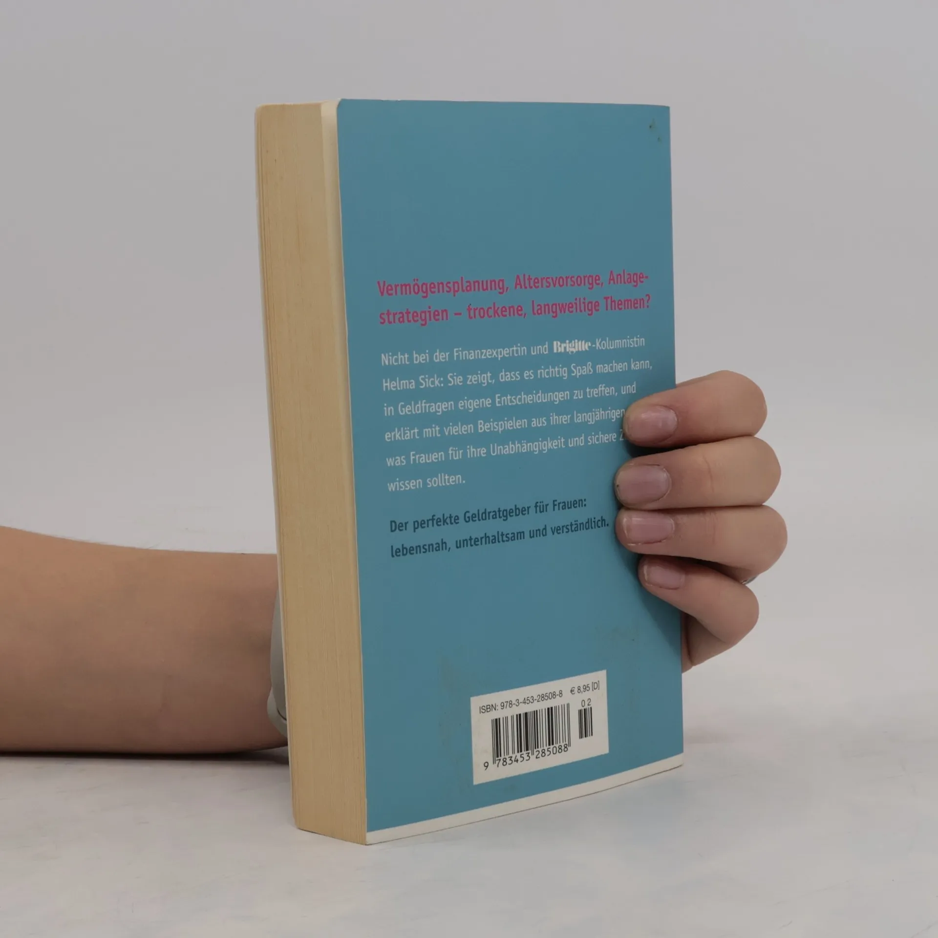 Jetzt in der 4. aktualisierten und überarbeiteten Auflage! Der perfekte Geld-Ratgeber für Frauen: lebensnah, unterhaltsam, leicht verständlich. Neu mit allen Informationen zur Abgeltungssteuer! Wenn’s ums Geld geht, überlassen Frauen immer noch zu viel den Männern. Vermögensplanung, Altersvorsorge, Anlagestrategien — trockene, langweilige Themen? Nicht bei der Finanzexpertin und BRIGITTE-Kolumnistin Helma Sick: Sie zeigt, dass es richtig Spaß machen kann, in Geldfragen eigene Entscheidungen zu treffen, und erklärt mit vielen Beispielen aus ihrer Praxis, was Frauen für ihre Unabhängigkeit und sichere Zukunft wissen sollten.