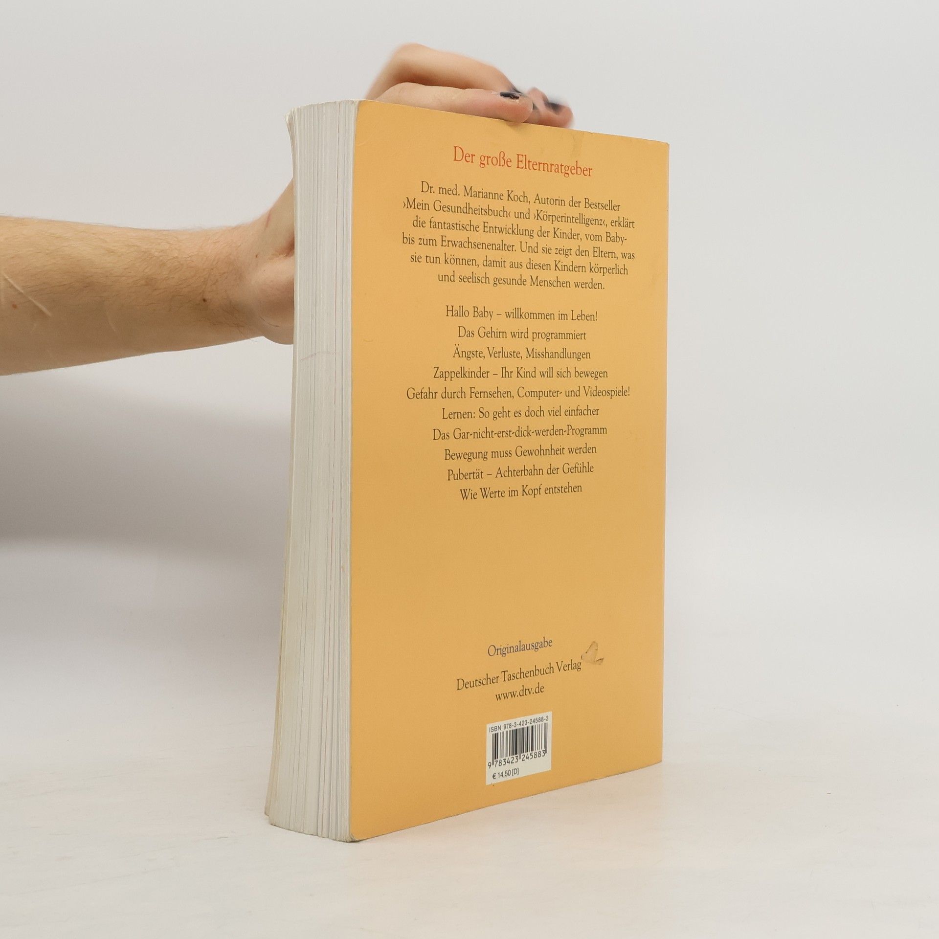 Kinder sind unsere Zukunft Bestsellerautorin Marianne Koch, die ebenso durch Kompetenz wie durch ihre verständliche und bildhafte Sprache überzeugt, legt dar, welche Entwicklungsschritte Kinder durchlaufen – von der Ausbildung des kindlichen Gehirns und des Ich-Bewusstseins bis zur pubertären Auflehnung. Sie erläutert, in welchem Alter Kinder wie am besten gefördert werden können, welche Rolle Musik und Literatur, Sport und Körpertraining spielen. Sie greift aber auch Reizthemen wie Fernsehen, Mobbing, falsche Essgewohnheiten auf und zeigt, wie wir damit umgehen können.