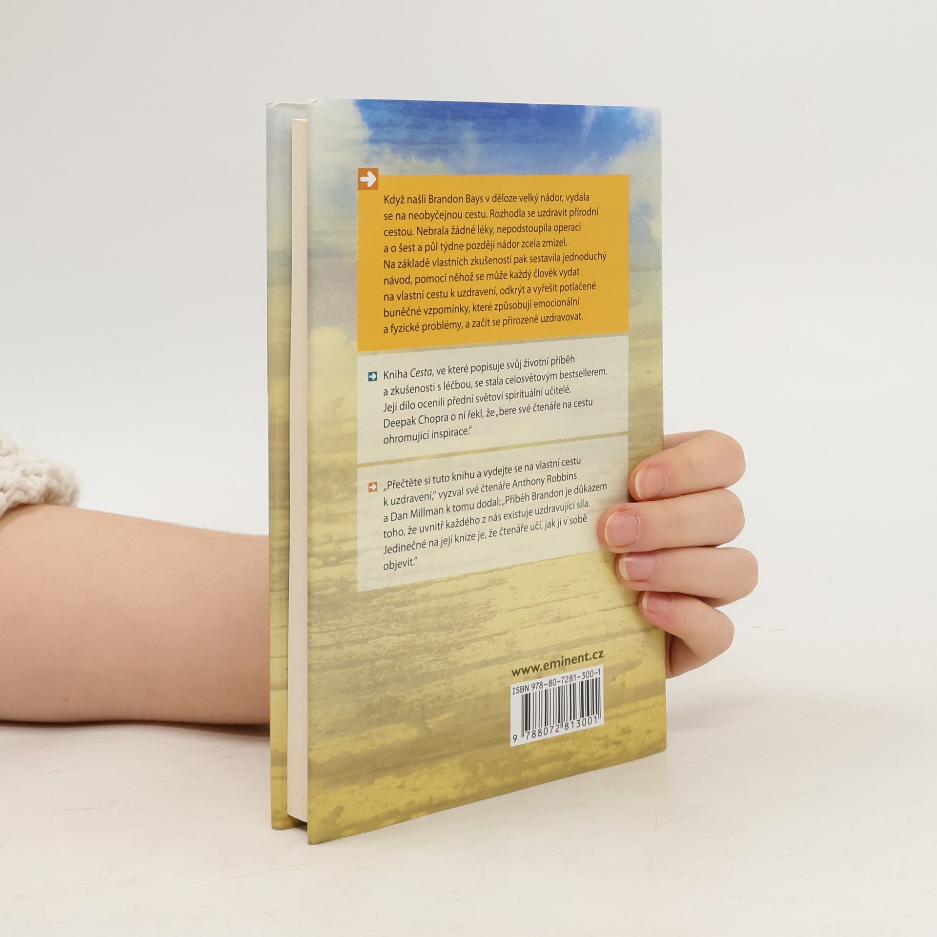 Když našli Brandon Bays v děloze velký nádor, vydala se na neobyčejnou cestu. Rozhodla se uzdravit přírodní cestou. Nebrala žádné léky, nepodstoupila operaci a o šest a půl týdne později nádor zcela zmizel. Na základě vlastních zkušeností pak sestavila jednoduchý návod, pomocí něhož se může každý člověk vydat na vlastní cestu k uzdravení, odkrýt a vyřešit potlačené buněčné vzpomínky, které způsobují emocionální a fyzické problémy, a začít se přirozeně uzdravovat. Kniha Cesta, ve které popisuje svůj životní příběh a zkušenosti s léčbou, se stala celosvětovým bestsellerem. Její dílo ocenili přední světoví spirituální učitelé. Deepak Chopra o ní řekl, že „bere své čtenáře na cestu ohromující inspirace.“ „Přečtěte si tuto knihu a vydejte se na vlastní cestu k uzdravení,“ vyzval své čtenáře Anthony Robbins a Dan Millman k tomu dodal: „Příběh Brandon je důkazem toho, že uvnitř každého z nás existuje uzdravující síla. Jedinečné na její knize je, že čtenáře učí, jak ji v sobě objevit.“
