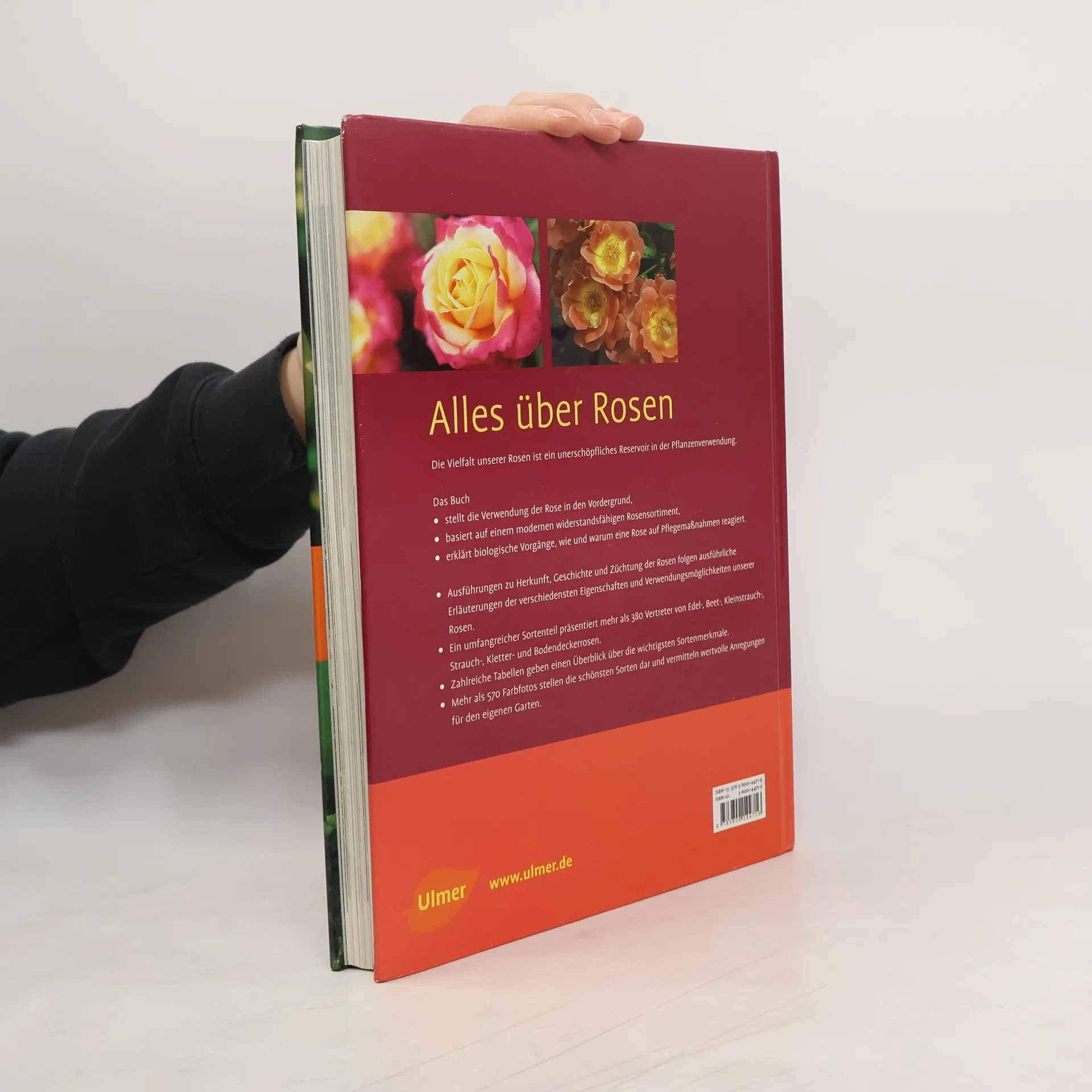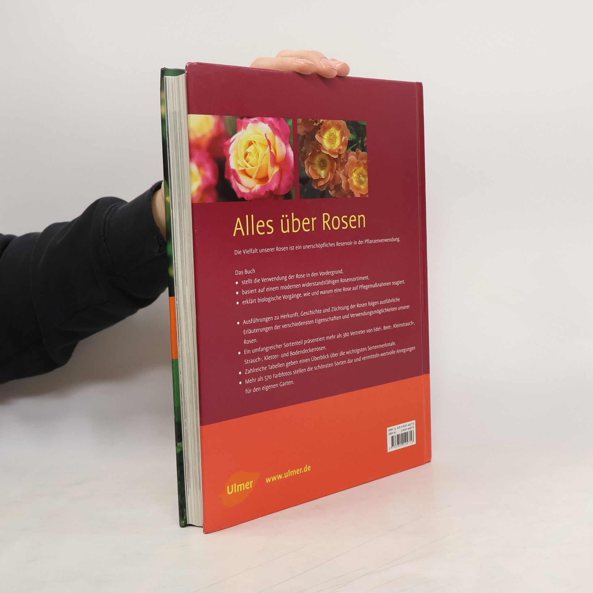 Ein Ulmer Premium Buch für Rosen kaufen, pflanzen, pflegen - umfassendes Wissen für Praktiker. Expertenwissen die besten modernen, pflegeleichten Rosen Ratgeber und Nachschlagewerk Die Kapitel Alles über die Rose, Verwendung, Sortenbeschreibungen und Rosenpraxis leiten den Rosenfreund durch die üppige Blütenwelt der Rosen. Der umfangreiche Sortenteil präsentiert mehr als 400 Vertreter von Edel-, Beet-, Kleinstrauch-, Strauch-, Kletter- und Bodendeckerrosen. Über 550 Farbfotos zeigen die schönsten Sorten und diewichtigsten Handgriffe. Die Verwendungshinweise basieren auf einem modernen pflegeleichten Rosensortiment, das sich durch Gesundheit undRobustheit auszeichnet und gerade für den Anfänger wichtig ist.