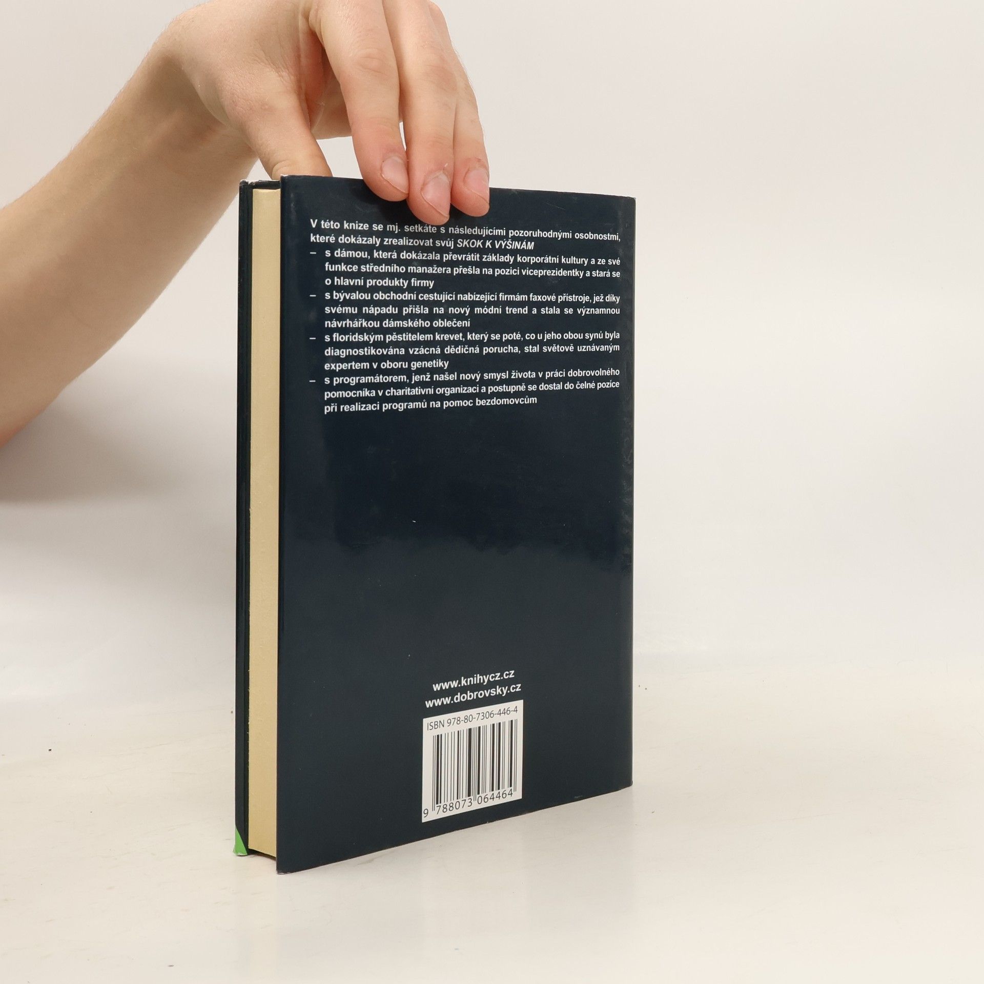 Jak zásadně zlepšit svůj život pomocí tří jednoduchých změn Autor zažil neobyčejné věci: dlouho žil neuspokojivě, pak během osmnácti měsíců napsal knihu, která se stala bestsellerem, založil firmu, díky níž přišel do úzkého kontaktu s předními osobnostmi, a vydělal peníze, o jakých se mu ani nesnilo. Ptal se, proč právě jemu se podařilo změnit nudný život v mimořádný úspěch, a rozhodl se pátrat, co spojuje ony mimořádné „obyčejné“ lidi, osobnosti, které dosáhly úspěchu, aniž by byly obdařeny nějakým oslňujícím nadáním. Proč právě jejich kariéry nabraly jiný směr, a co se my – kteří se stále pachtíme v průměru – můžeme od nich naučit? Kniha je výsledkem pěti let intenzivní práce, kdy autor zpovídal úspěšné lidi, ochotné mu své příběhy vyprávět. Kniha obsahuje praktické rady, jak se můžeme i my bezpečně připravit na svůj vlastní skok k výšinám.
