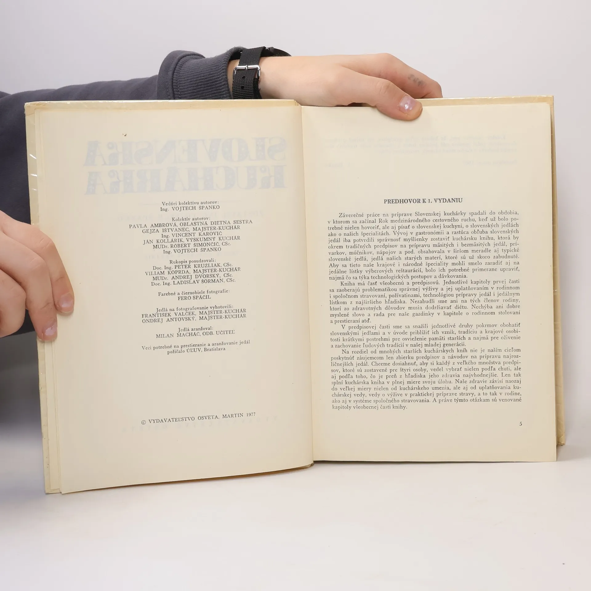 Autorský kolektív vychádza z bohatých tradícií našej gastronomie a ďalej ju rozvíja z hľadiska súčasných zásad roacionálnej výživy. Kuchárska kniha obsahuje množstvo receptov na všedný deň aj na sviatočnú príležitosť. Okrem predpisov na tradičné jedlá slovenskej kuchyne možno tu nájsť recepty na novšie špeciality.