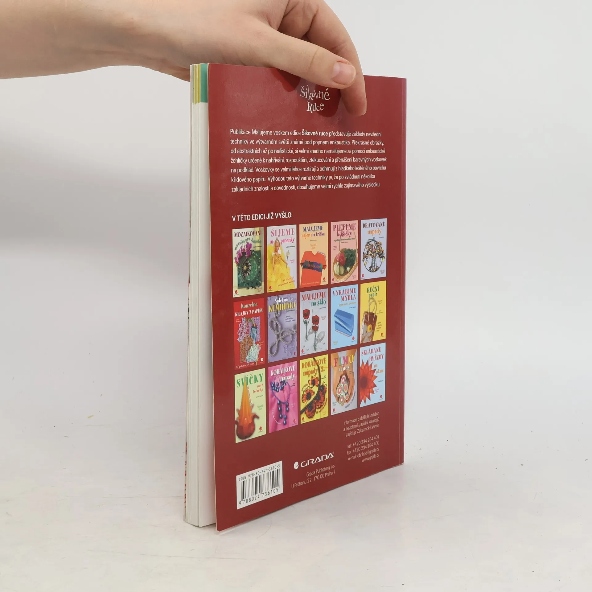 Publikace Malujeme voskem edice Šikovné ruce představuje základy nevšední techniky ve výtvarném světě známé pod pojmem enkaustika. Překrásné obrázky, od abstraktních až po realistické, si velmi snadno namalujeme za pomoci enkaustické žehličky určené k nahřívání, rozpouštění, ztekucování a přenášení barevných voskovek na podklad. Voskovky se velmi lehce roztírají a odhrnují z hladkého leštěného povrchu křídového papíru. Výhodou této výtvarné techniky je, že po zvládnutí několika základních znalostí a dovedností, dosahujeme velmi rychle zajímavého výsledku.