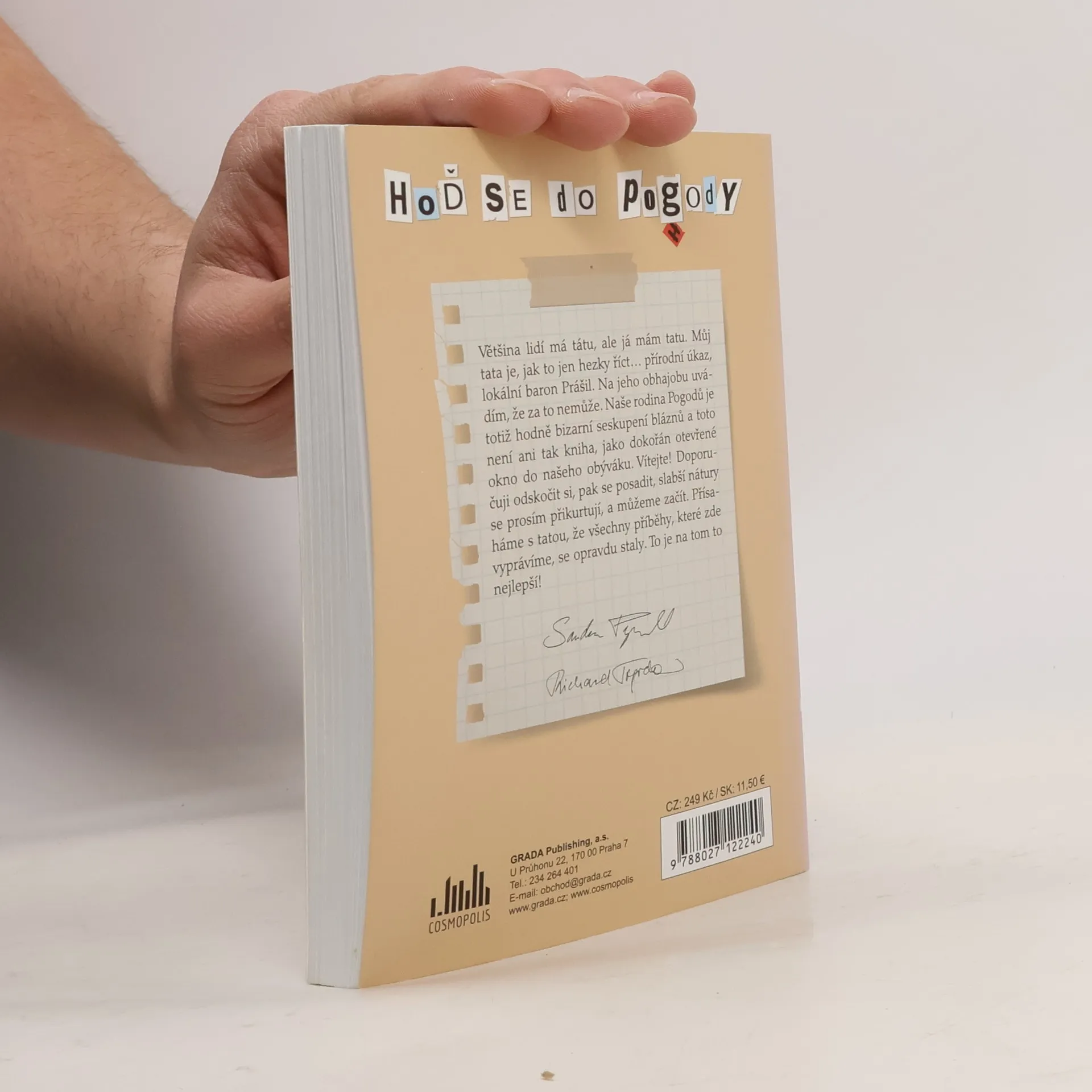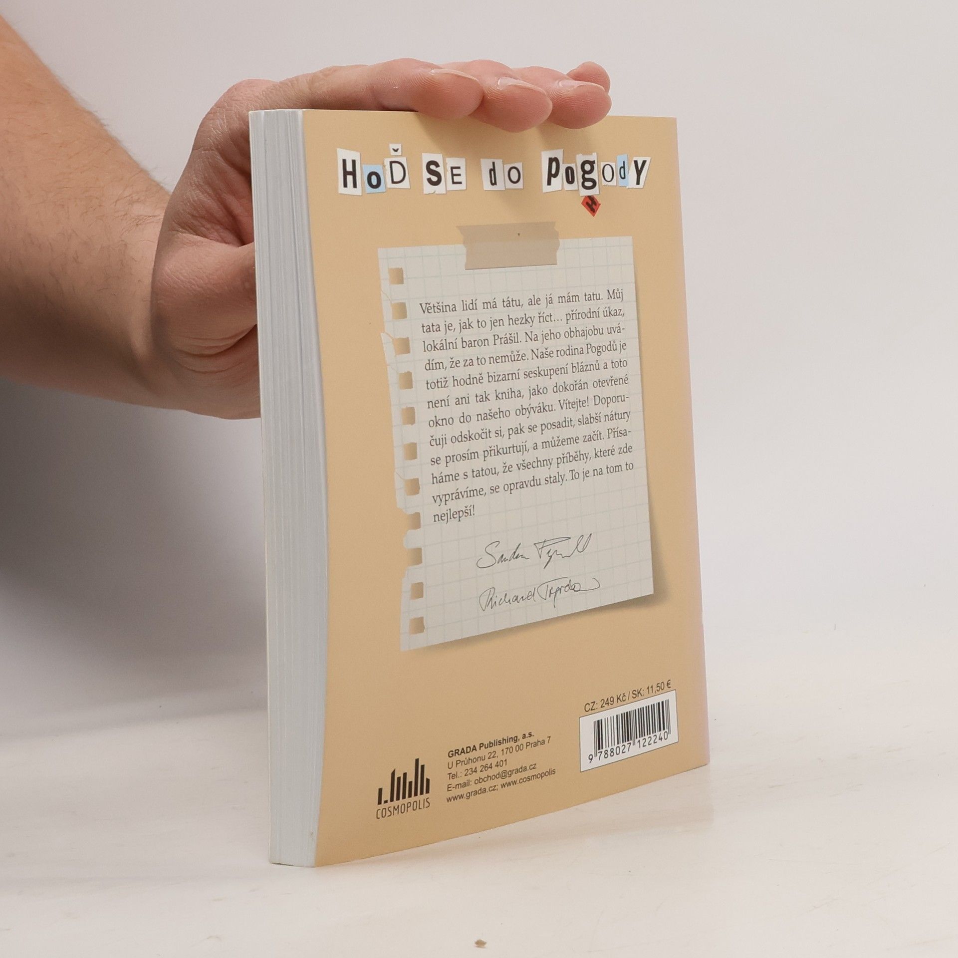 Většina lidí má tátu, ale já mám tatu. Můj tata je, jak to jen hezky říct… přírodní úkaz, lokální baron Prášil. Na jeho obhajobu uvádím, že za to nemůže. Naše rodina Pogodů je totiž hodně bizarní seskupení bláznů a toto není ani tak kniha, jako dokořán otevřené okno do našeho obýváku. Vítejte! Doporučuji odskočit si, pak se posadit, slabší nátury se prosím přikurtují, a můžeme začít. Přísaháme s tatou, že všechny příběhy, které zde vyprávíme se opravdu staly. To je na tom to nejlepší!