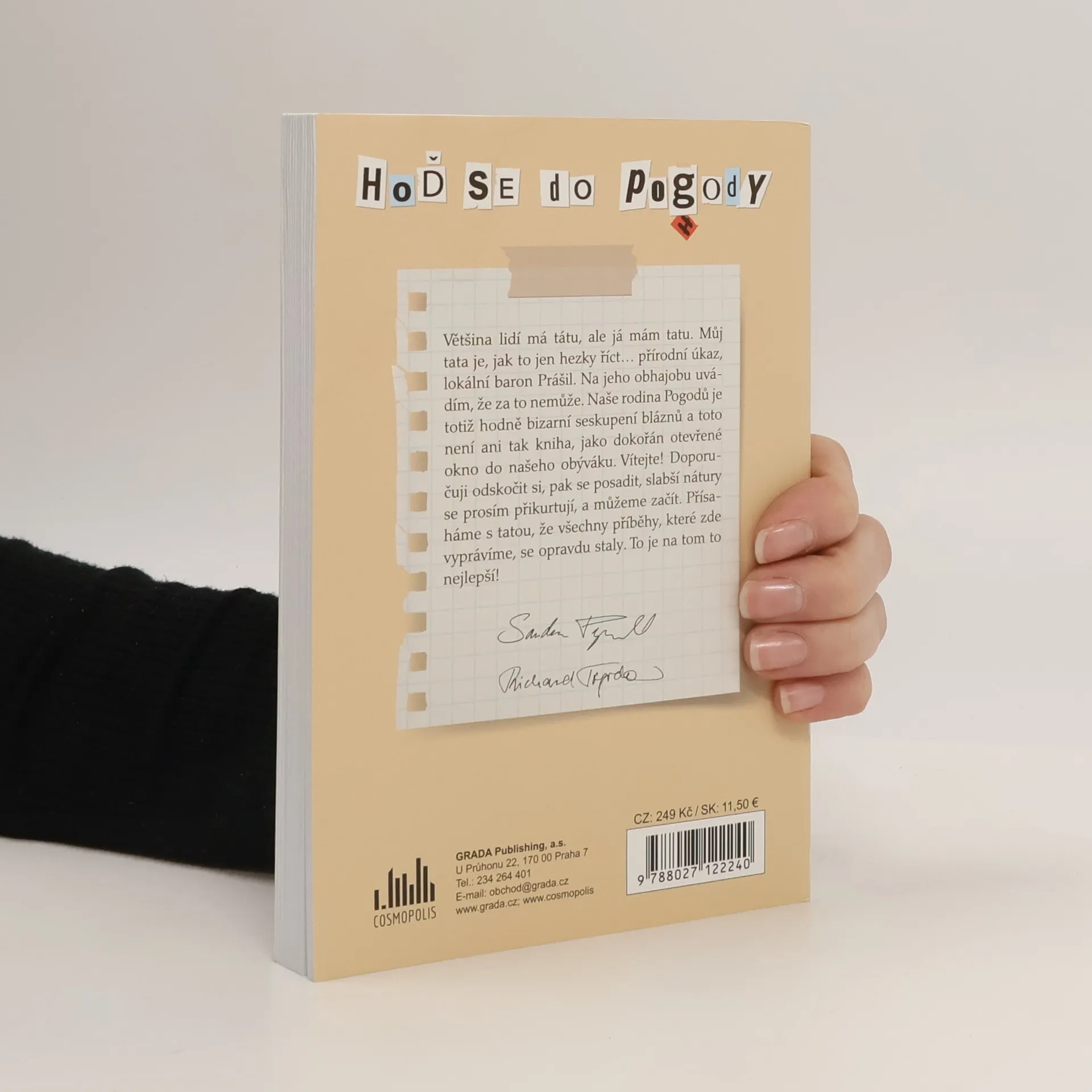 Většina lidí má tátu, ale já mám tatu. Můj tata je, jak to jen hezky říct… přírodní úkaz, lokální baron Prášil. Na jeho obhajobu uvádím, že za to nemůže. Naše rodina Pogodů je totiž hodně bizarní seskupení bláznů a toto není ani tak kniha, jako dokořán otevřené okno do našeho obýváku. Vítejte! Doporučuji odskočit si, pak se posadit, slabší nátury se prosím přikurtují, a můžeme začít. Přísaháme s tatou, že všechny příběhy, které zde vyprávíme se opravdu staly. To je na tom to nejlepší!