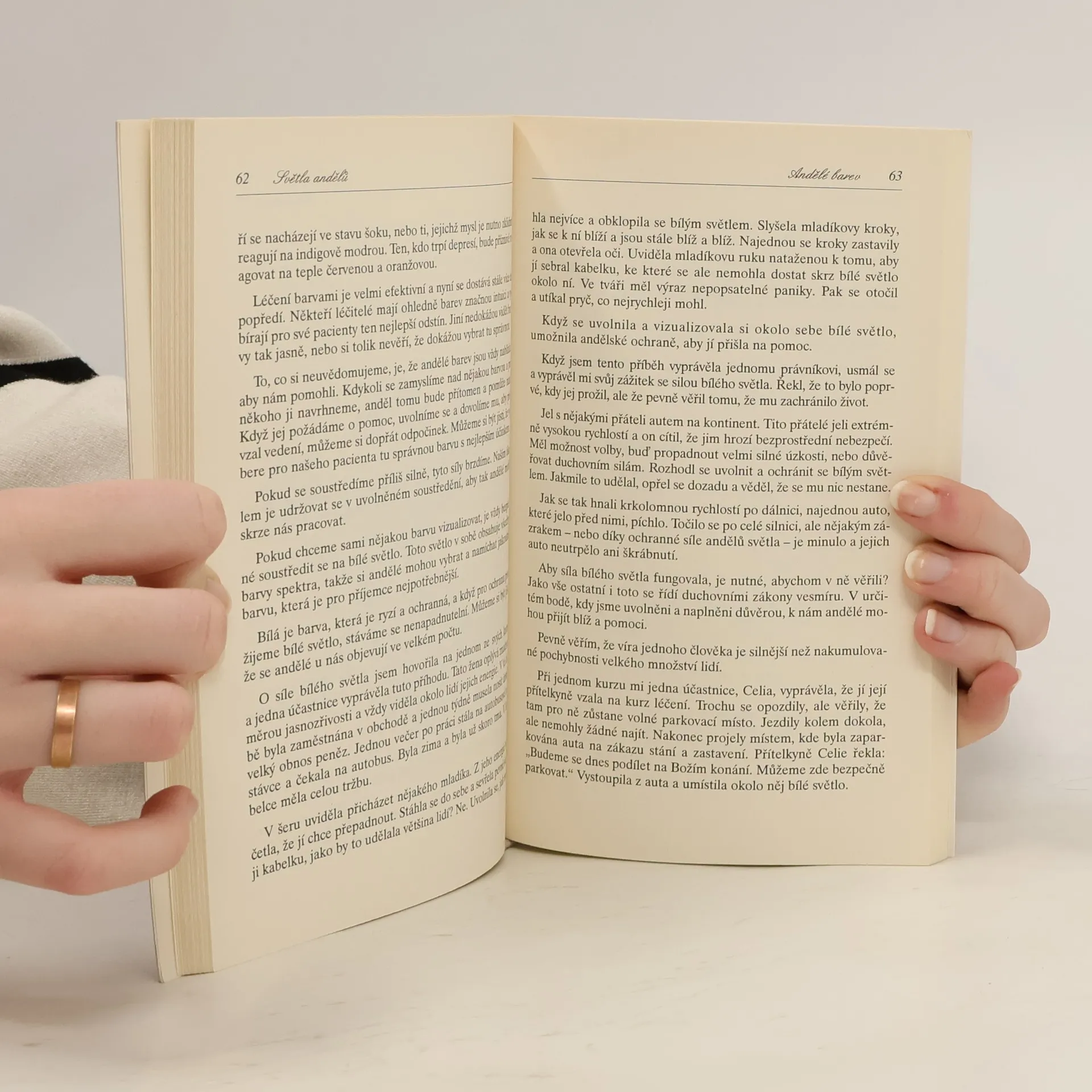 Kniha Světla andělů dává rady, jak můžeme zavolat anděly, aby nám v našem životě pomohli a dělali nám společnost. Jsme obklopeni anděly, jediné, co musíme udělat, je pozvednout své vědomí, abychom si jich mohli být vědomi a komunikovat s nimi, uvítat je ve svých životech a vpustit do našeho srdce radost, světlo a mír vycházející z jejich přítomnosti.