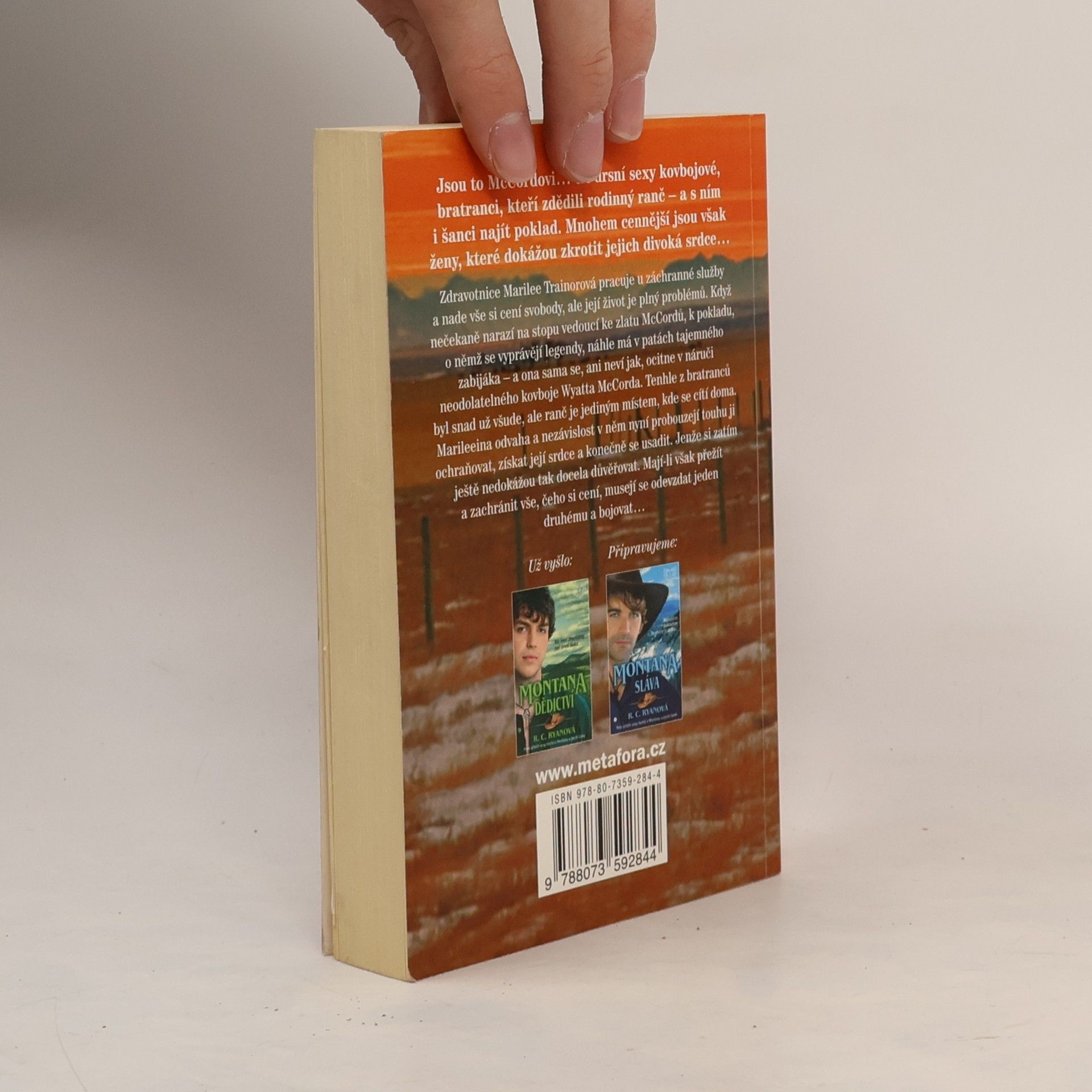 Jsou to McCordovi… tři drsní sexy kovbojové, bratranci, kteří zdědili rodinný ranč – a s ním i šanci najít poklad. Mnohem cennější jsou však ženy, které dokážou zkrotit jejich divoká srdce… Láska je ta nejnebezpečnější hra! Marilee Trainorová pracuje na lékařské pohotovosti a nade vše si cení svobody, ale její život je plný problémů. Když nečekaně narazí na stopu vedoucí ke zlatu McCordů, k pokladu, o němž se vyprávějí legendy, náhle má v patách tajemného zabijáka – a ona sama se, ani neví jak, ocitne v náruči neodolatelného kovboje Wyatta McCorda. Tenhle z bratranců byl snad už všude, ale ranč je jediným místem, kde se cítí doma. Marileeina odvaha a nezávislost v něm nyní probouzejí touhu ji ochraňovat, získat její srdce a konečně se usadit. Jenže si zatím ještě nedokážou tak docela důvěřovat. Mají-li však přežít a zachránit vše, čeho si cení, musejí se odevzdat jeden druhému a bojovat…