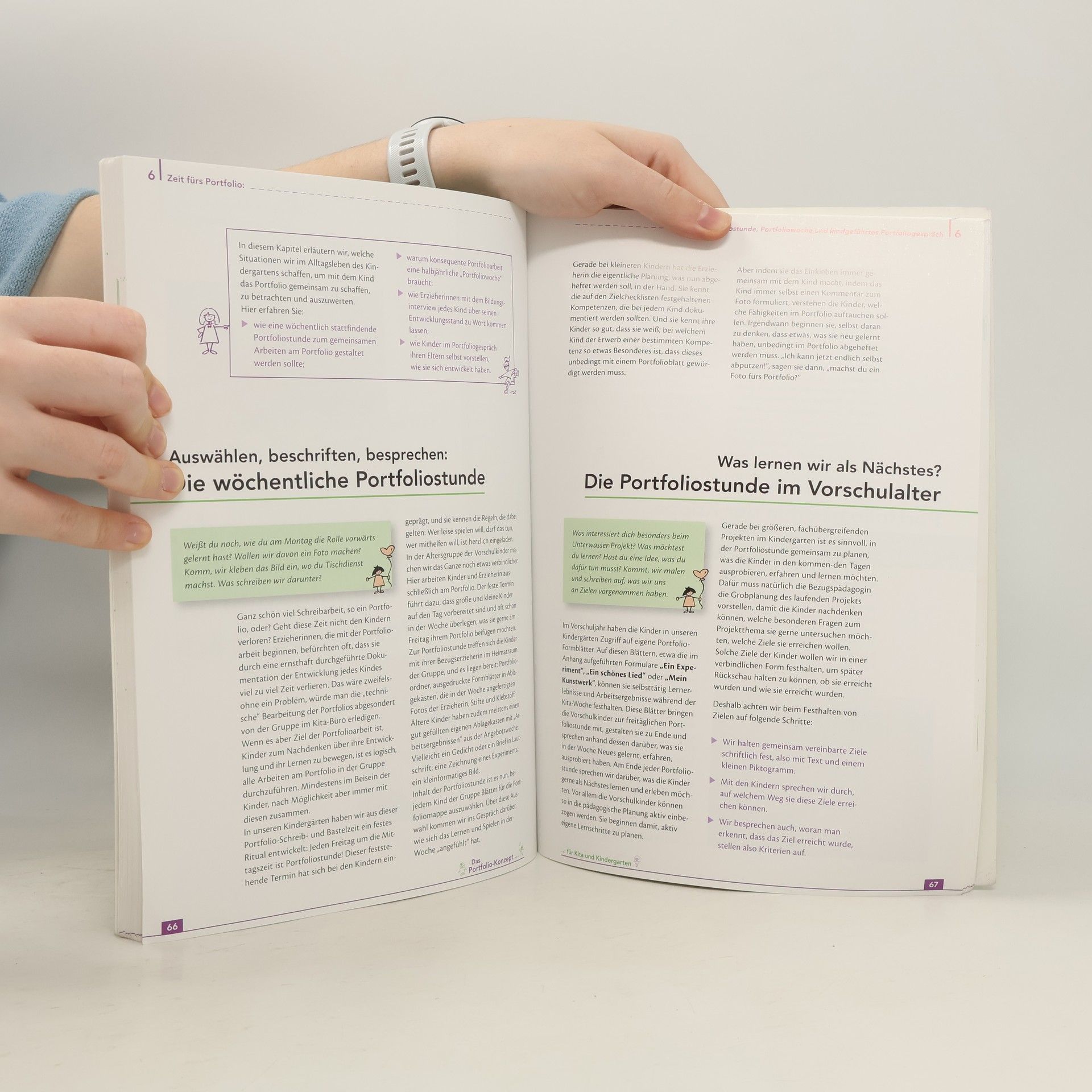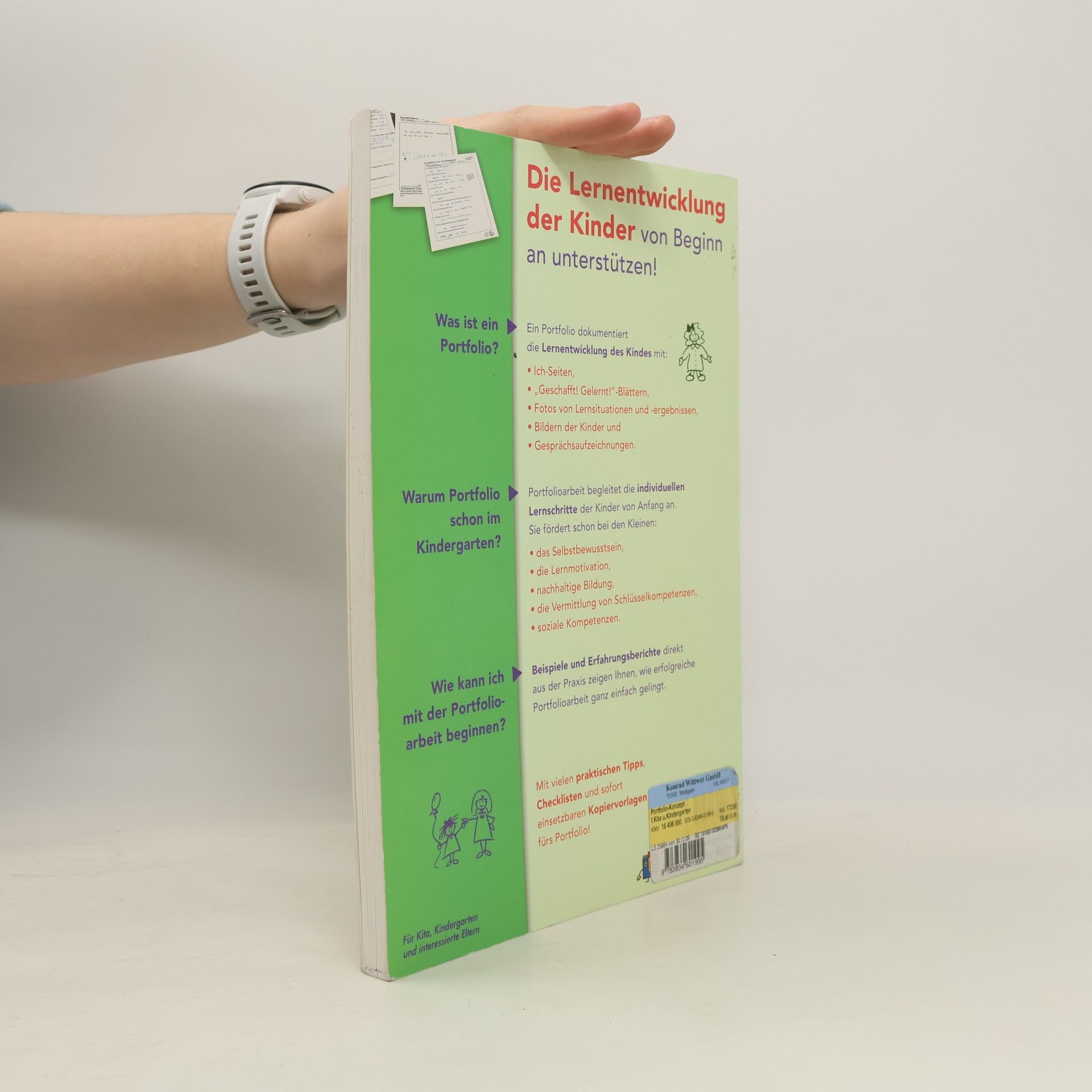 Jedes Kind lernt anders. Dennoch gelten für alle Kinder schon im Kindergarten die gleichen Bildungsvorgaben. Mit diesem Portfoliokonzept gelingt es, für jedes Kind eigene Ziele zu setzen, Lernprozesse zu beobachten und in der Portfoliomappe zu würdigen. Portfolioarbeit, so berichten die AutorInnen, macht Kinder zu stärkeren und selbstbewussteren Lernern. Das Buch stellt neben Tipps für die Gestaltung von Zielplanungssitzungen, Monatsplanungssitzungen und modernen Planungsmethoden, wie dem Lotusplan, vor allem detailliert vor, wie ein gutes Portfolio aufgebaut ist und welche Ich-Blätter und Dokumentationsbögen es enthalten sollte. Anhand vieler Praxisberichte wird gezeigt, wie Sie das Portfolio als Grundlage für Bildungsinterviews, Elterngespräche und -hospitationen nutzen können. Mit einer Checkliste „So wird man Portfolio-Kindergarten“ sowie vielen, sofort einsetzbaren Muster-Portfolioblättern!