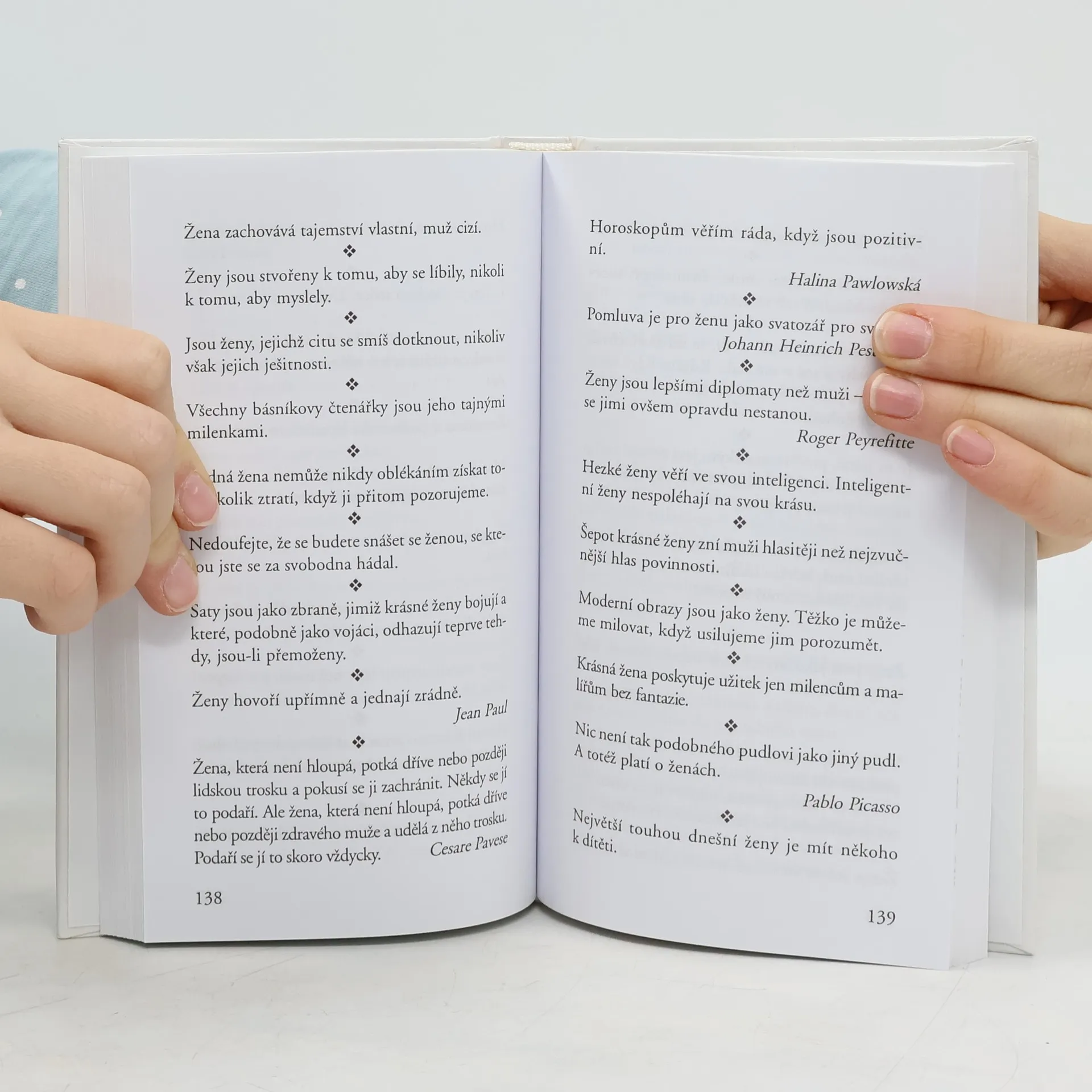 Moudré citáty zaměřené na jediné, a přesto nevyčerpatelné téma: žena. Téma natolik inspirující, že by vydalo na desítky podobných titulů a stále by bylo o čem psát. Tato kniha je ovšem výjimečná svou komplexností i přehledným uspořádáním. Čerpá citáty o ženách z písemných pramenů nejstarších civilizací a světových náboženství, uvádí myšlenky antických filozofů, výroky současných myslitelů, slavných umělců, literátů, vědců.