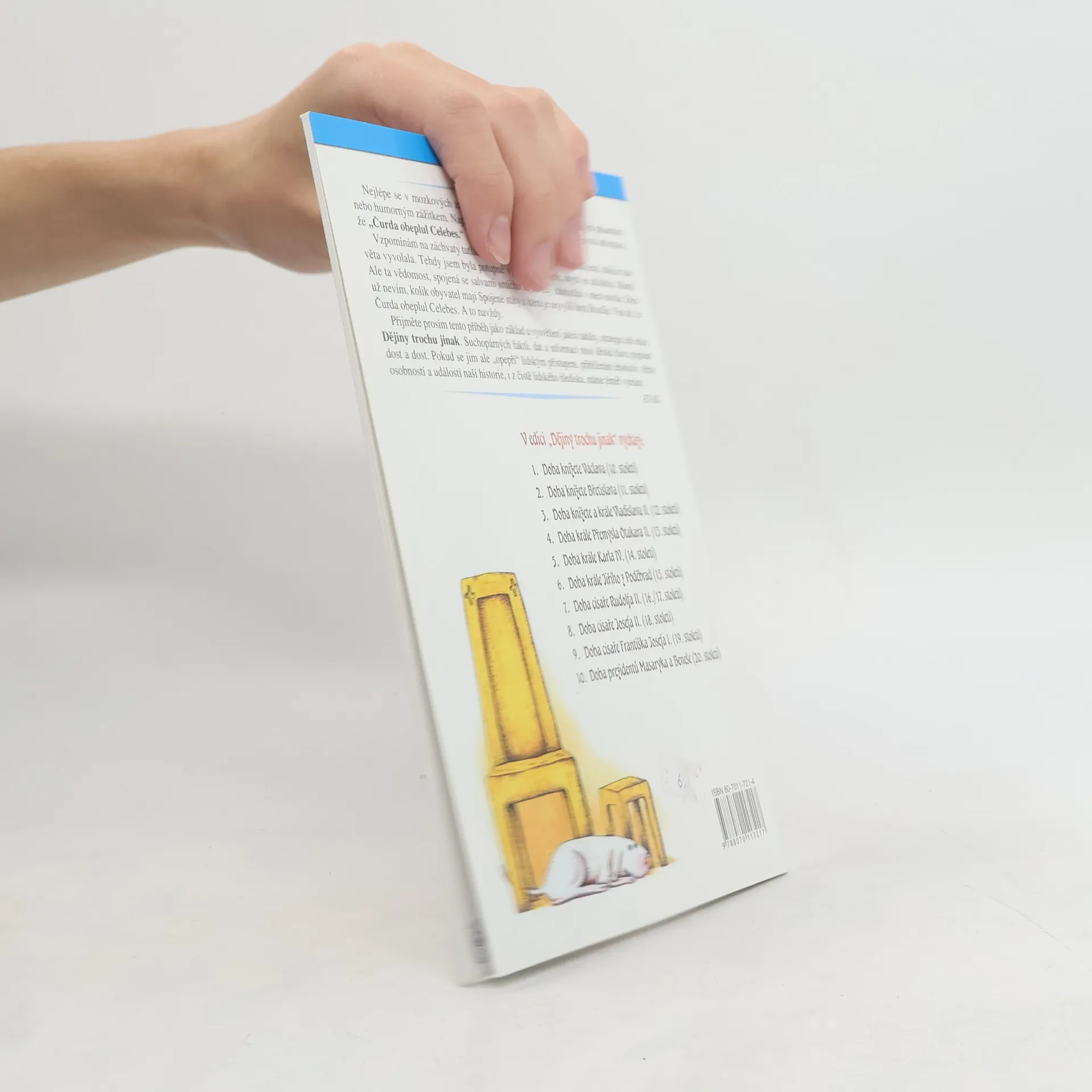 Edice do školních lavic i domácích knihovniček. Zábavné dějiny každodennosti. Originální barevné ilustrace. České dějiny jako napínavé vyprávění plné veselých obrázků. Nezáživná fakta dějepisného učiva veselou a zábavnou formou. Srovnání současnosti s minulostí v různých aspektech lidské činnosti. Jednotlivé etapy vývoje českého státu jsou přiblíženy na konkrétní osobě panovníka. Historické osobnosti jsou vylíčeny se svými příbuzenskými vztahy, lidskými vlastnostmi, kladnými i zápornými činy.