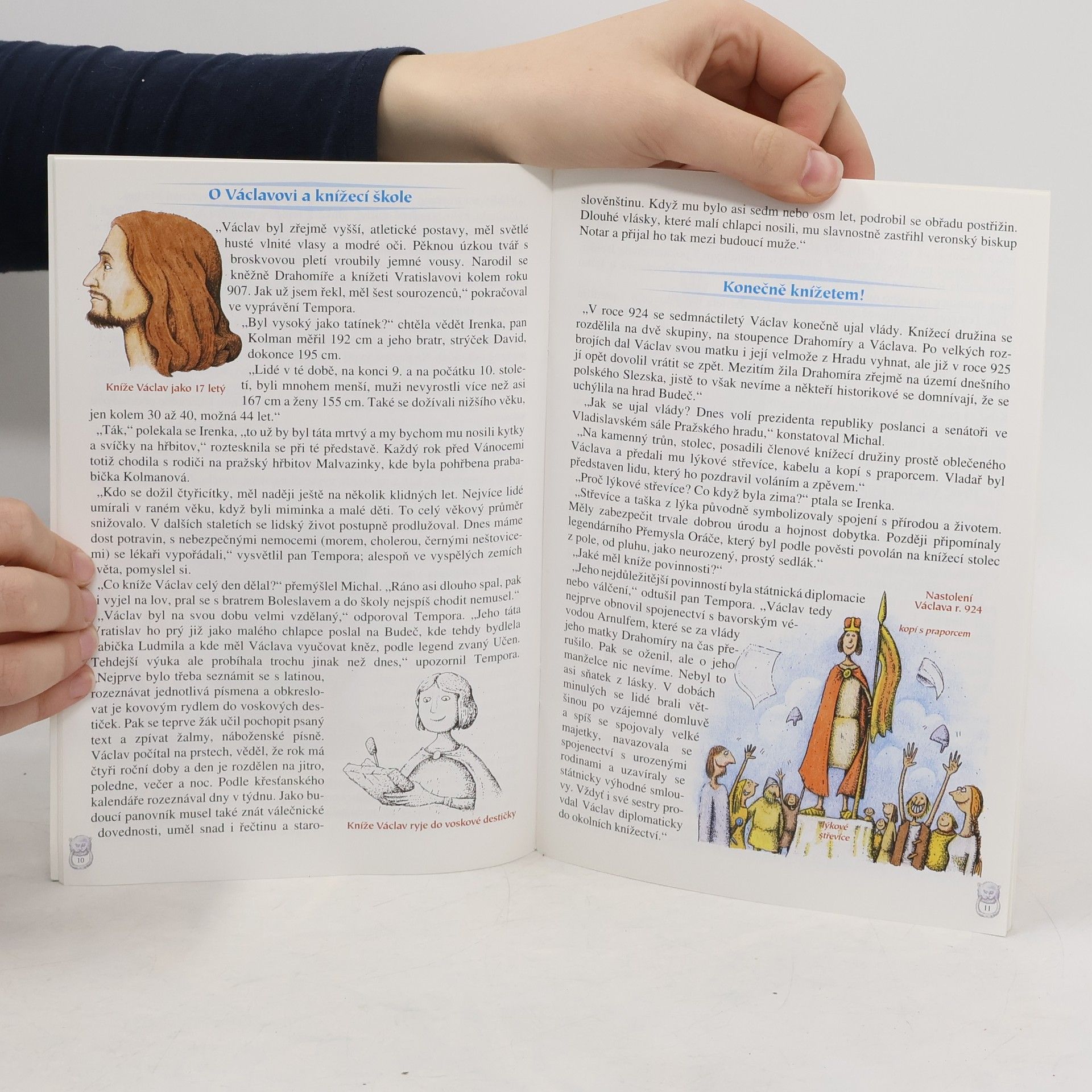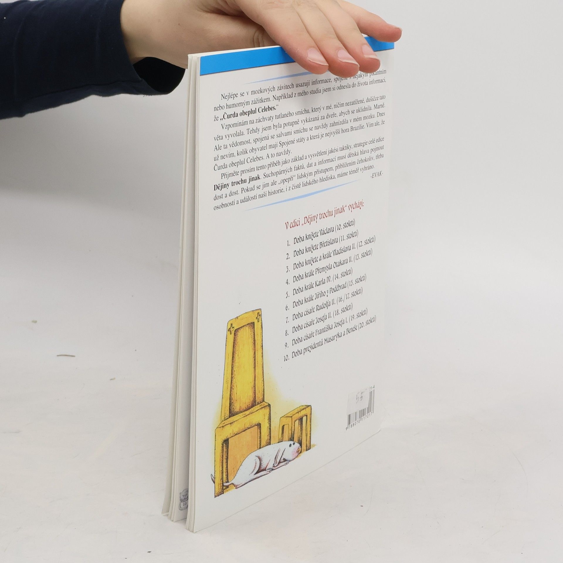 Edice do školních lavic i domácích knihovniček. Zábavné dějiny každodennosti. Originální barevné ilustrace. České dějiny jako napínavé vyprávění plné veselých obrázků. Nezáživná fakta dějepisného učiva veselou a zábavnou formou. Srovnání současnosti s minulostí v různých aspektech lidské činnosti. Jednotlivé etapy vývoje českého státu jsou přiblíženy na konkrétní osobě panovníka. Historické osobnosti jsou vylíčeny se svými příbuzenskými vztahy, lidskými vlastnostmi, kladnými i zápornými činy.