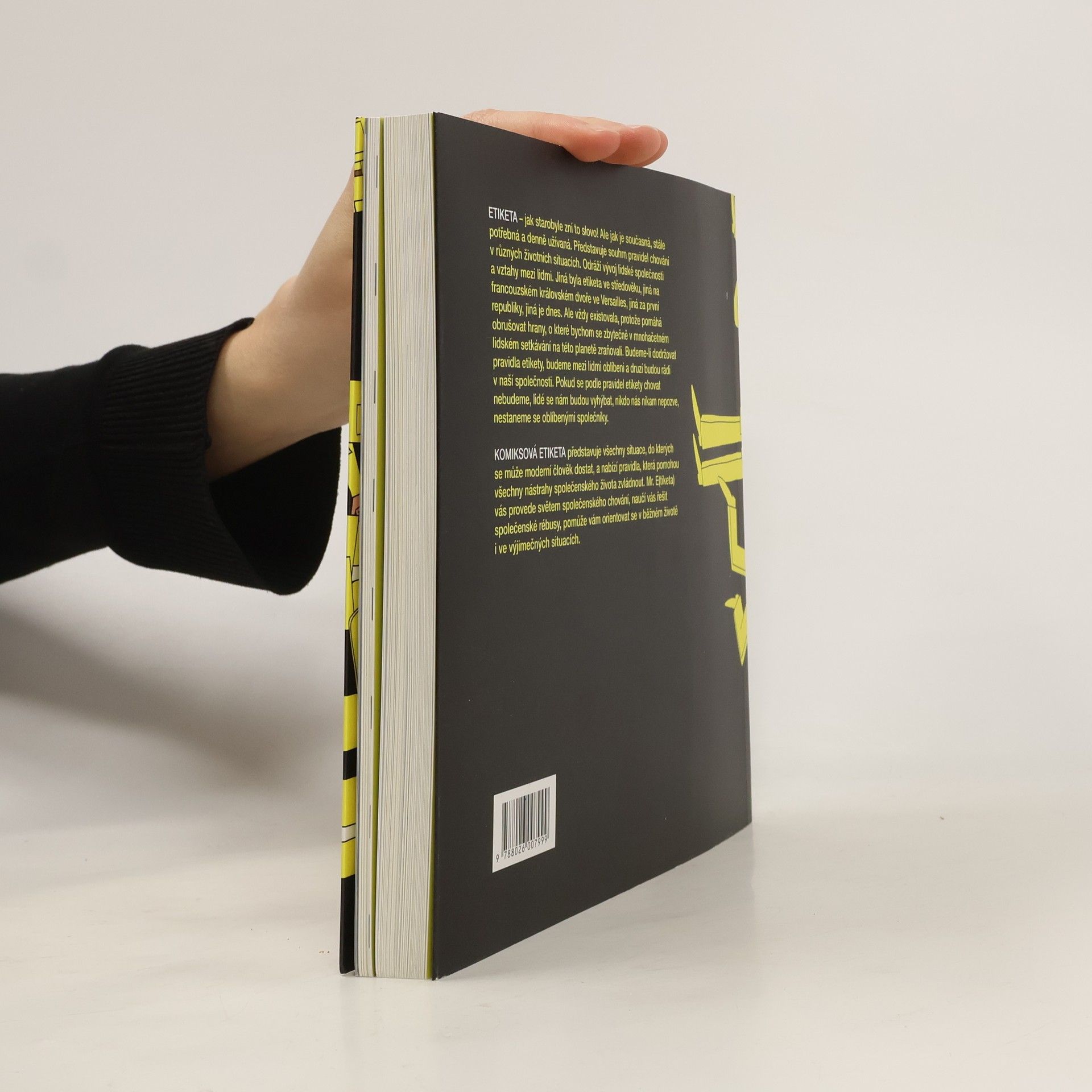 KOMIKSOVÁ ETIKETA představuje všechny situace, do kterých se může moderní člověk dostat, a nabízí mu pravidla, která mu pomohou všechny nástrahy společenského života zvládnout. Mr(Etiketa) vás provede světem společenského chování, naučí vás řešit společenské rébusy, pomůže vám orientovat se v běžném životě i ve výjimečných situacích. Kniha získala literární cenu "Nejkrásnější česká kniha - 2011 - Cena za učebnice a didaktické pomůcky".