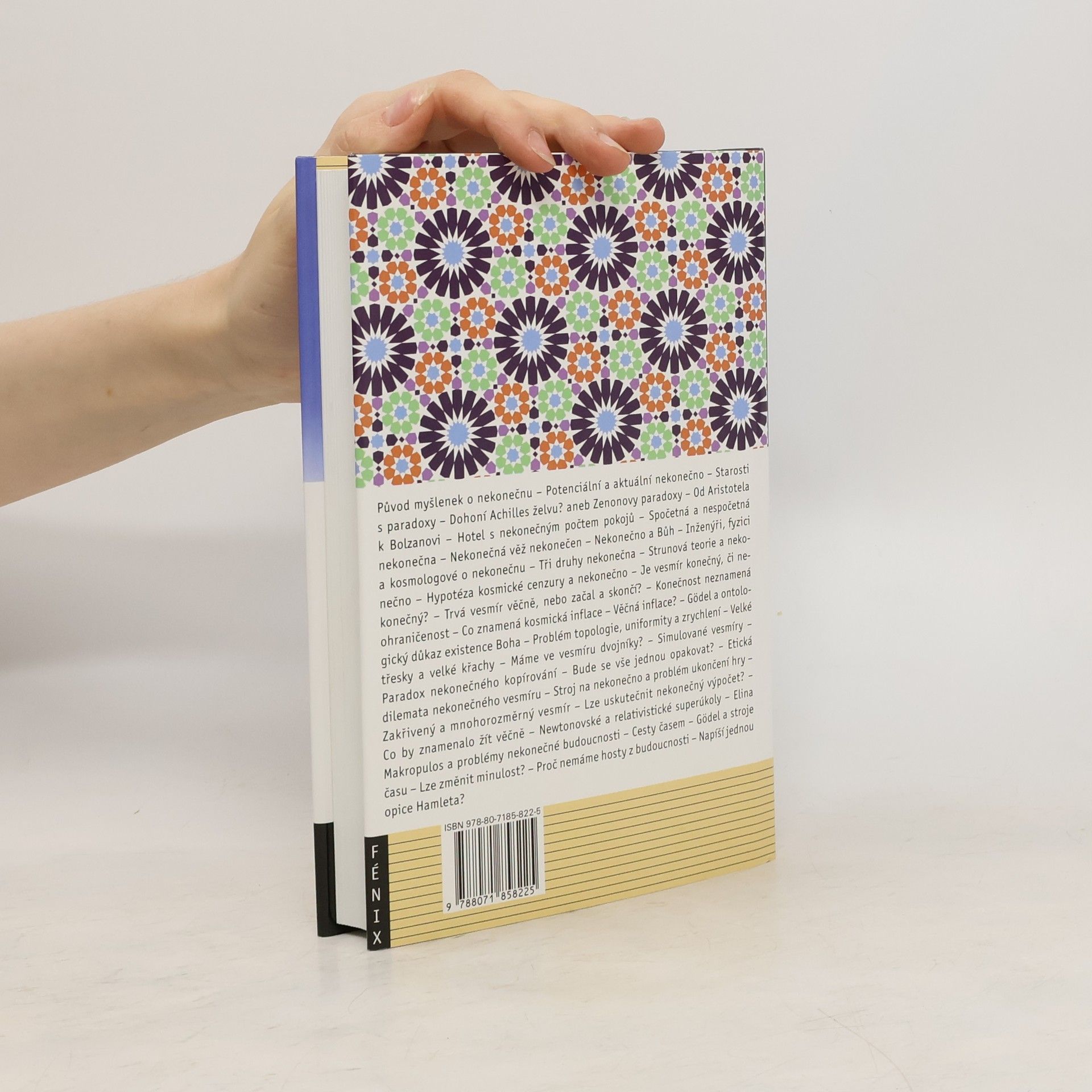 Podtitul: Stručný průvodce světem bez hranic, počátku a konce Otázka konečnosti či nekonečnosti vzrušovala lidstvo odedávna. Nekonečno je nepochybně ta nejpodivnější idea, jež lidstvo znepokojuje neustále. Autor ve své knize seriózně a s jistou hravostí mu vlastní odpovídá na všechny otázky, i ty rozumem těžko uchopitelné, které v sobě myšlenka nekonečna, jež přitahovala pozornost velkých myslitelů všech dob – od Aristotela a Zenona po velké mozky dneška, skrývá. Odkud se myšlenka nekonečnosti vzala a co nám může říct o vesmíru? Skutečně existují nekonečna? Nebo je nekonečno jen jakási nálepka pro něco, co je nedosažitelné? Je vesmír nekonečný? Je nekonečně starý a bude existovat navěky? Lze v konečné době vykonat nekonečně věcí? Nekonečno je však také místo, kde se věci zároveň dějí i nedějí. Nekonečný vesmír charakterizují paradoxy a fantazie.
