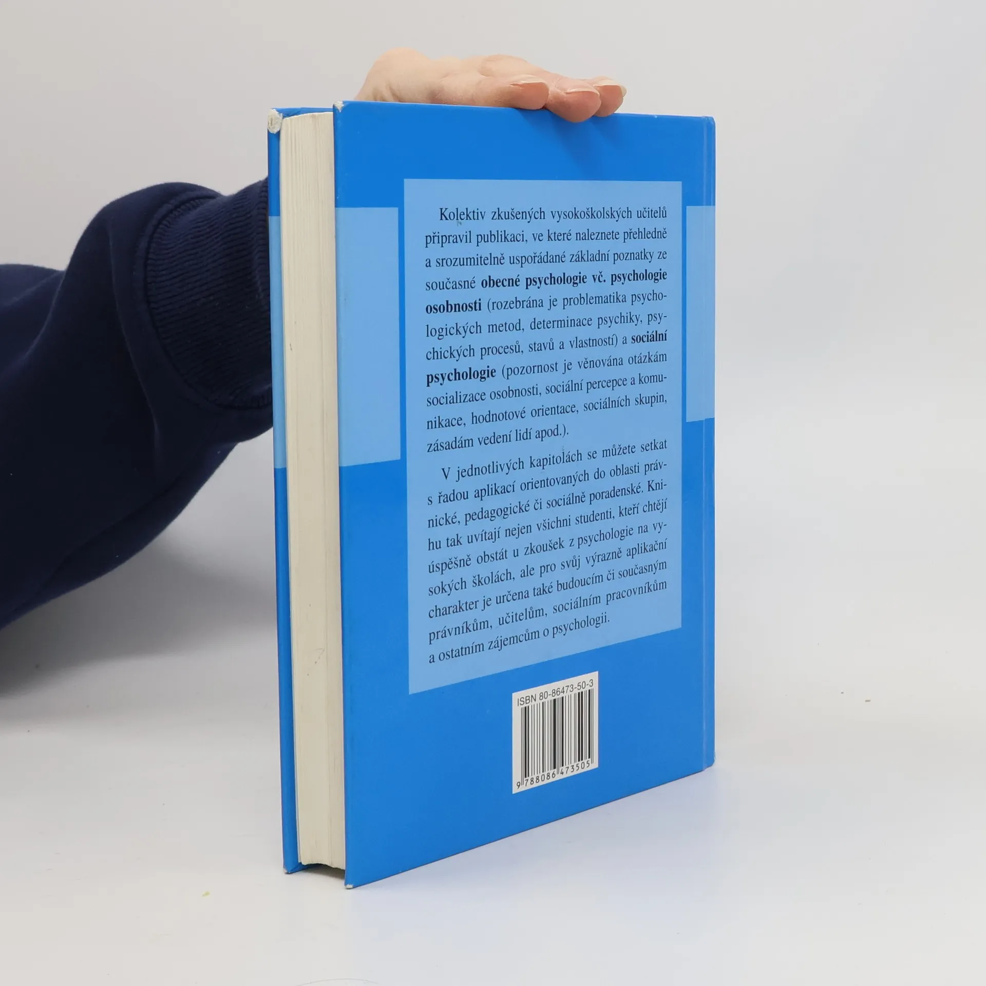 Kolektiv zkušených vysokoškolských učitelů připravil publikaci , ve které naleznete přehledně a srozumitelně uspořádané základní poznatky ze současné obecné psychologie vč. psychologie osobnosti (rozebrána je problematika psychologických metod, determinace psychiky, psychických procesů, stavů a vlastností) a sociální psychologie (pozornost je věnována otázkám socializace osobnosti, sociální percepce a komunikace, hodnotové orientace, sociálních skupin, zásadám vedení lidí apod.) V jednotlivých kapitolách se můžete setkat s řadou aplikací orientovaných do oblasti právnické, pedagogické či sociálně poradenské. Knihu tak uvítají nejen všichni studenti, kteří chtějí úspěšně obstát u zkoušek z psychologie na vysokých školách, ale pro svůj výrazně aplikační charakter je určena také budoucím či současným právníkům, učitelům, sociálním pracovníkům a ostatním zájemcům o psychologii. (Převzato doslovně z obalu knihy)