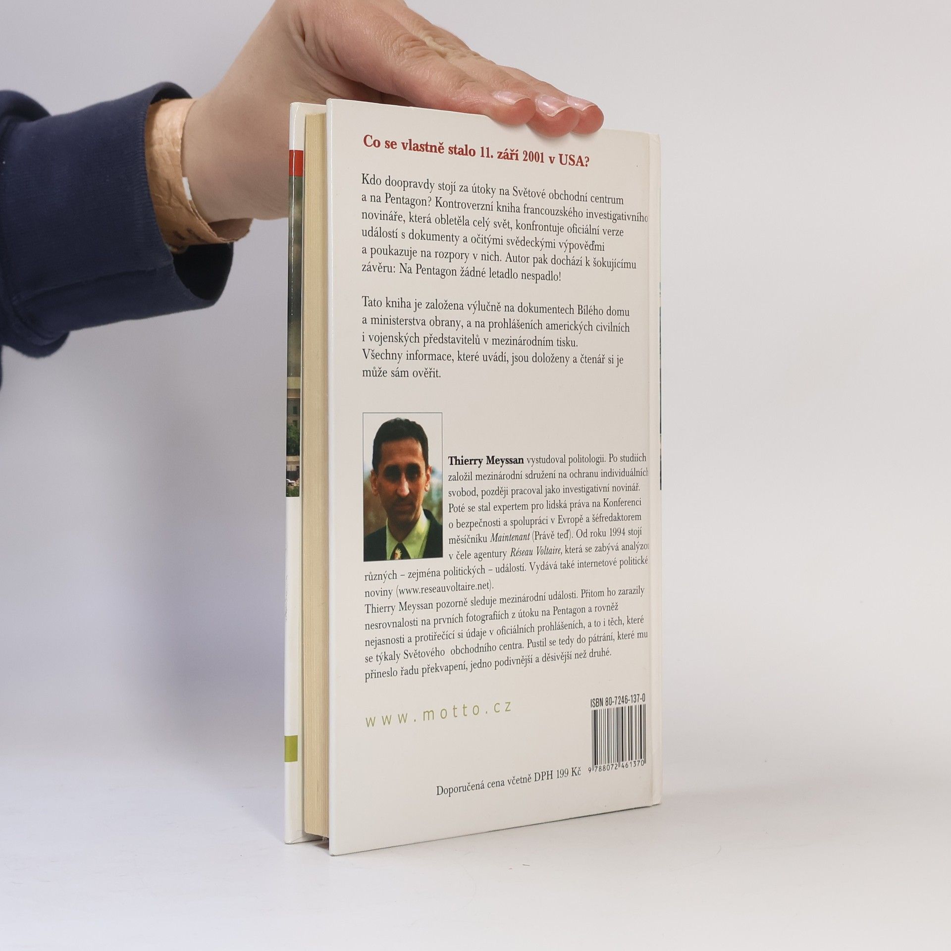 Co se vlastně stalo 11. září 2001 v USA? Kdo doopravdy stojí za útoky na Světové obchodní centrum a na Pentagon? Kontroverzní kniha francouzského investigativního novináře, která obletěla celý svět, konfrontuje oficiální verze událostí s dokumenty a očitými svědeckými výpověďmi a poukazuje na rozpory v nich. Autor pak dochází k šokujícímu závěru: Na Pentagon žádné letadlo nespadlo! Tato kniha je založena výlučně na dokumentech Bílého domu a ministerstva obrany, a na prohlášeních amerických civilních i vojenských představitelů v mezinárodním tisku. Všechny informace, které uvádí, jsou doloženy a čtenář si je může sám ověřit.