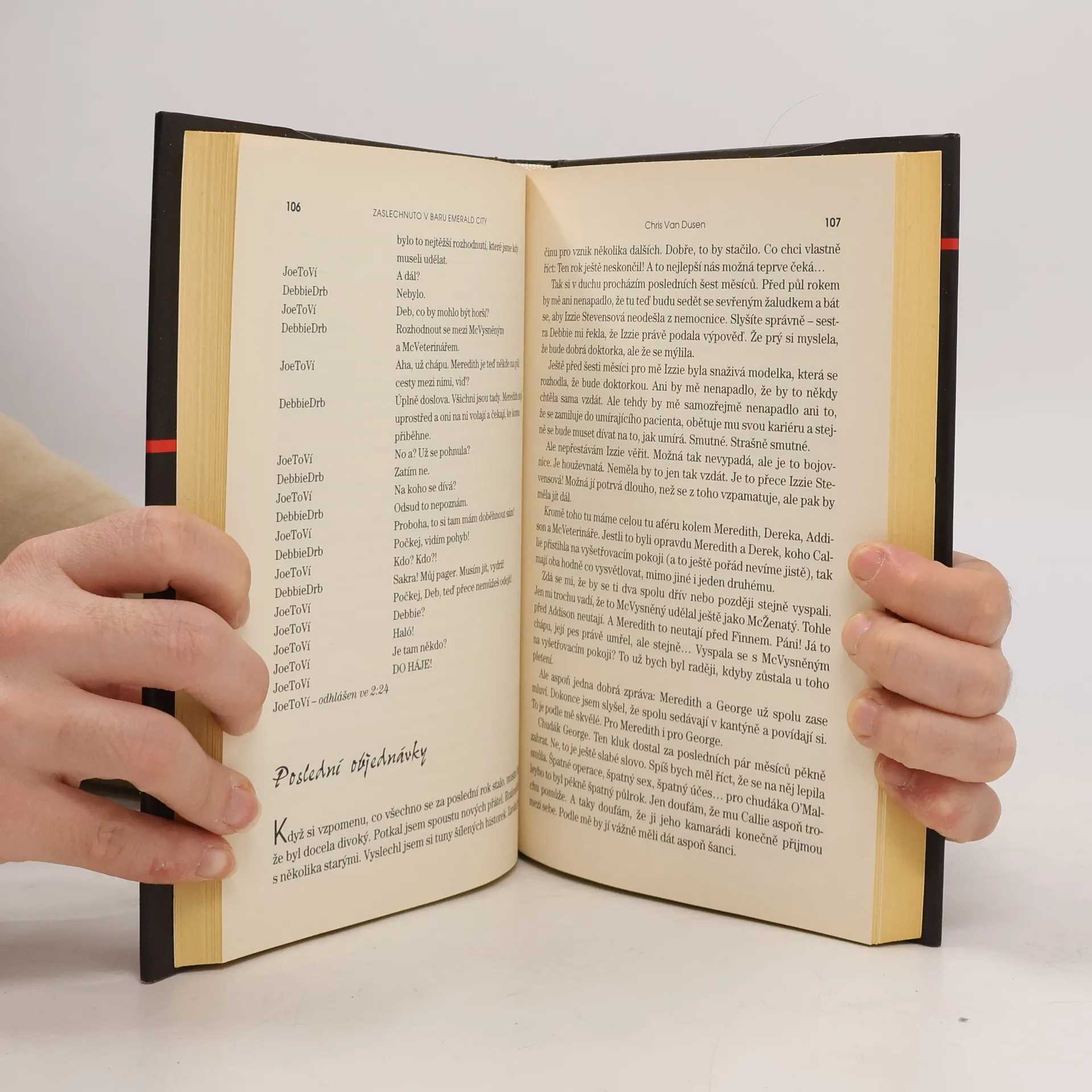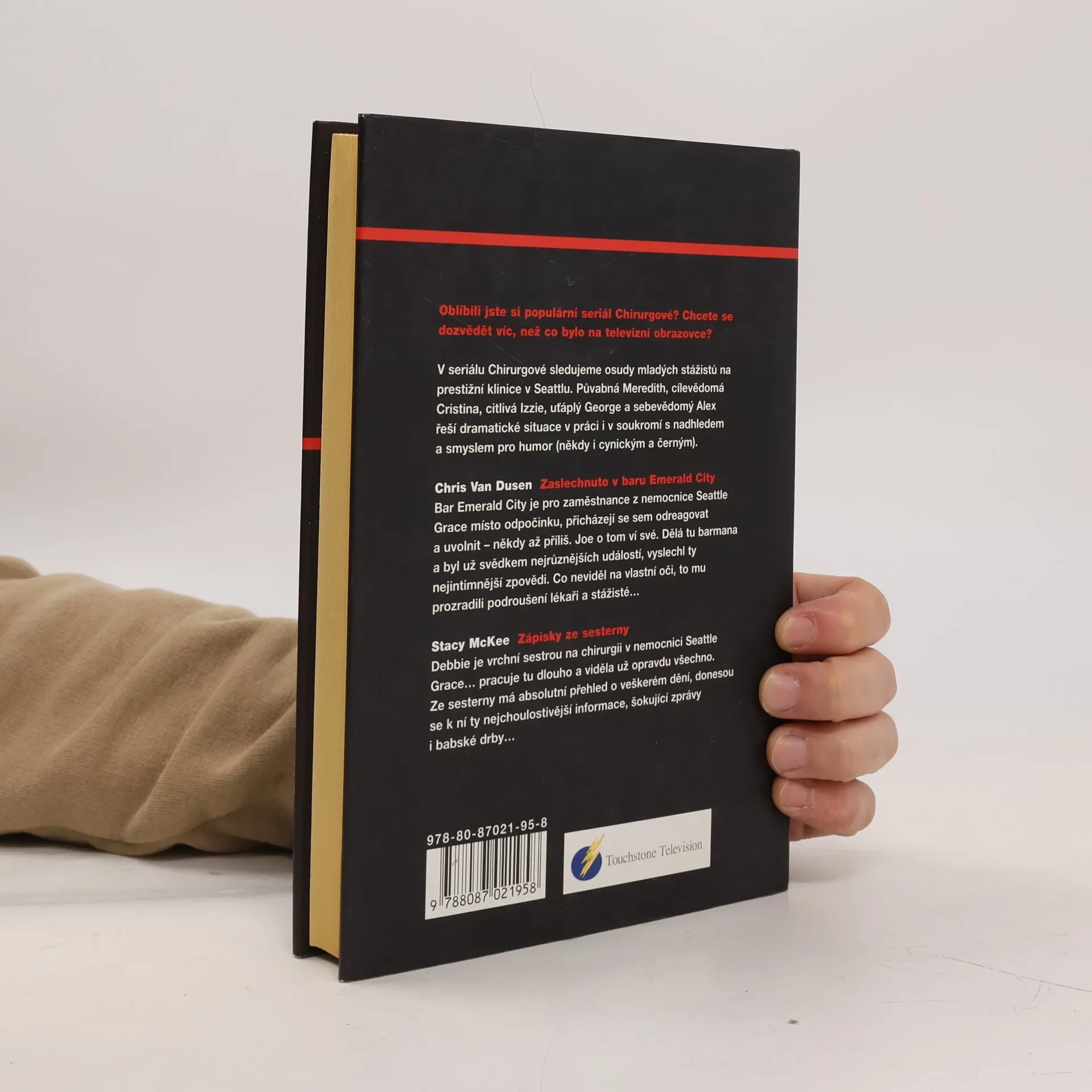 Chirurgové - Stacy McKee, Chris van Dusen Poznejte Meredith, Izzie, George, Alexe a Cristinu. Včera byli studenty, dnes jsou doktory. A pokud zvládnou sedm hrozných let v nemocnici Grace, budou z nich chirurgové. Ale svět se kvůli nim ani jejich obtížné stáži nezastaví a oni se musí vypořádat také se žárlivými partnery, nemocnými rodiči, milostnými románky a domácími krizemi, při kterých se musí spolehnout jeden na druhého. Tato kniha Vám je představí z pohledu dvou zdánlivě nezaujatých hrdinů. Vrchni sestry Debbie a barmana Joa.