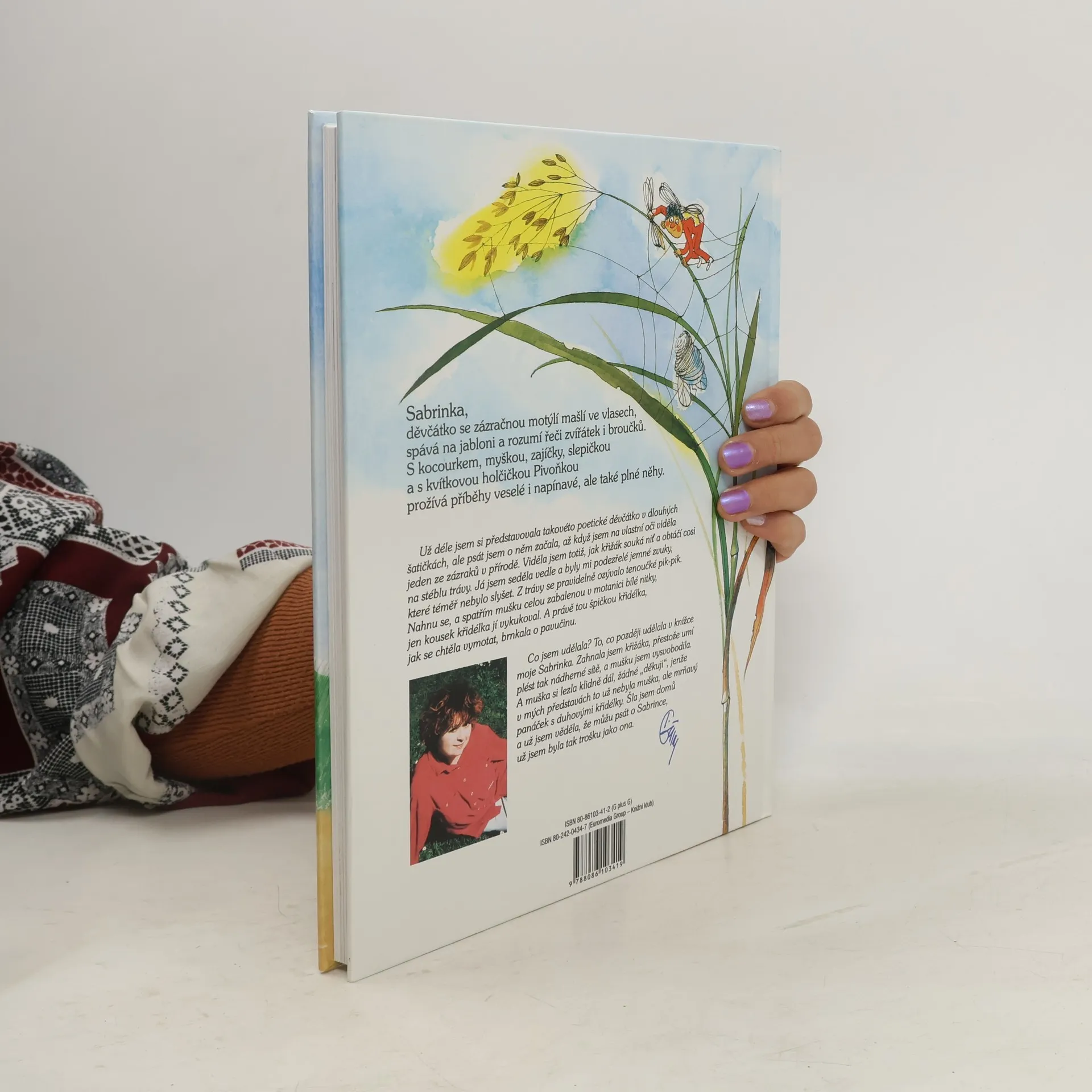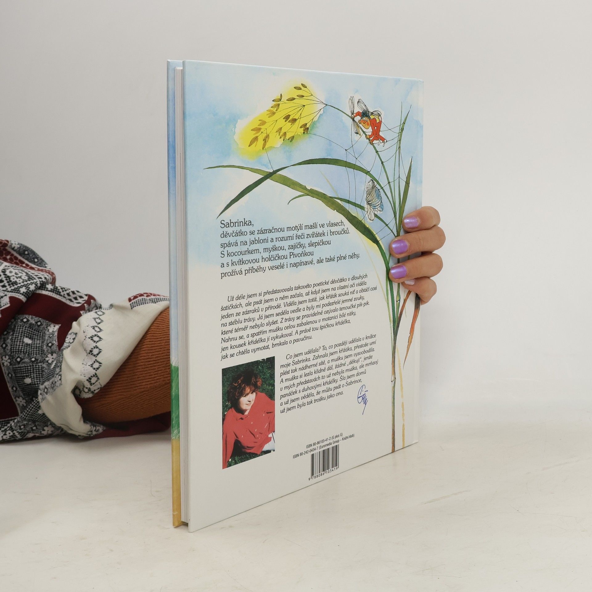 Poetické vyprávění o děvčátku se zázračnou motýlí mašlí ve vlasech. Bydlí sama ve dřevěné chaloupce a ráda spává ve své skrýši na jabloni. Rozumí řeči zvířátek, ptáků i broučků. Poklidně si žije s polním strašákem, zajíčky, slepičkou, myškou. Když se sem zatoulá nezbedný kocourek, průšvihy nemají konce. Jednoho dne ji potká velké štěstí – na jejím dvorku se narodí kvítková bytůstka Pivoňka... celý text