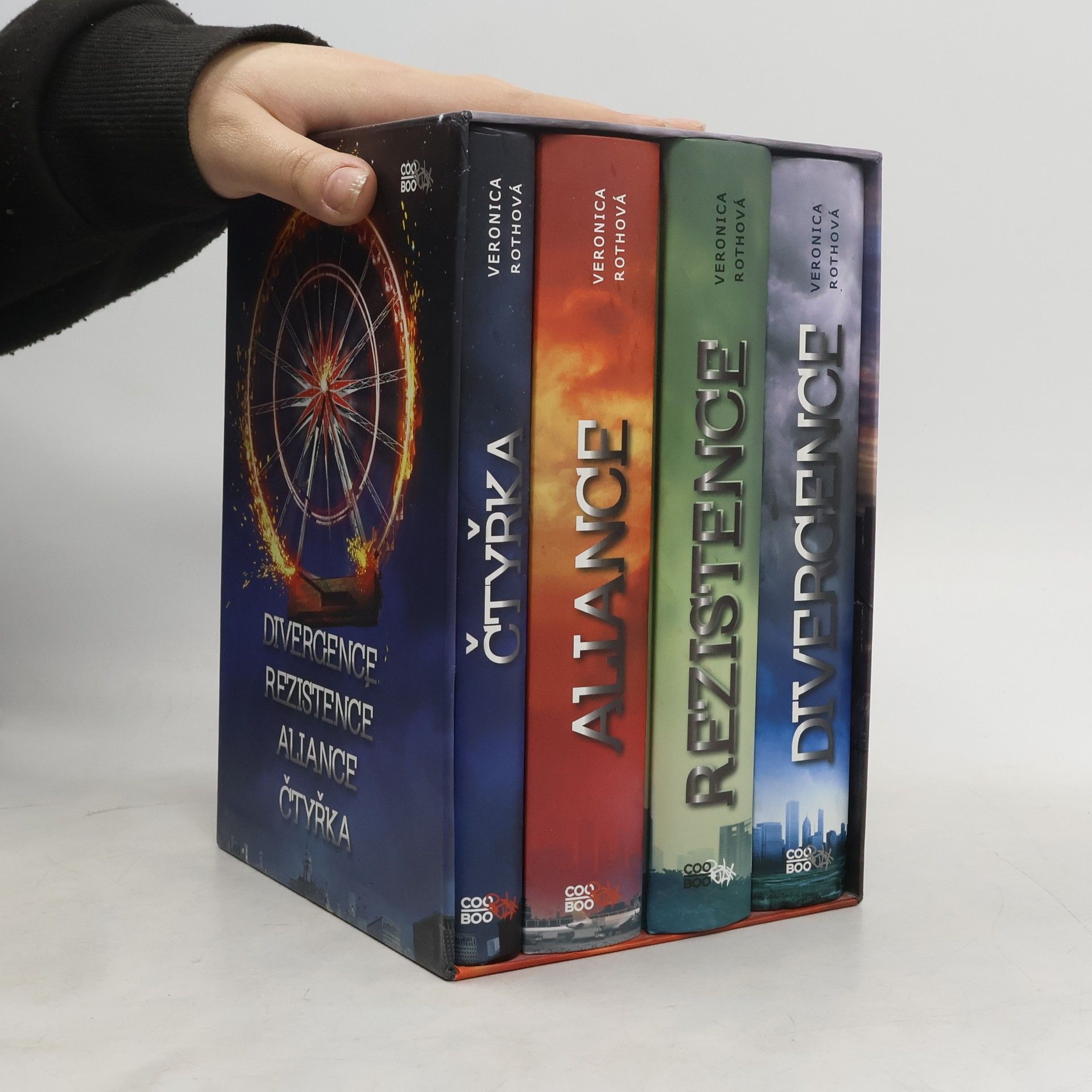 Kompletní divergentní trilogie v jednom boxu a navíc příběhy z pohledu Čtyřky. Ideální dárek pro vaše blízké! Chicago, budoucnost. Obyvatelé města, které obklopuje jen močál a obepíná ostnatý drát, jsou rozděleni do pěti frakcí. Beatrice je čerstvých šestnáct a přišel čas vybrat, do které frakce chce patřit, které ctnosti se chce na celý život odevzdat. Překvapivé rozhodnutí, osudová láska a nebezpečí. To všechno v jednom boxu. A navíc příběhy z pohledu Čtyřky!
