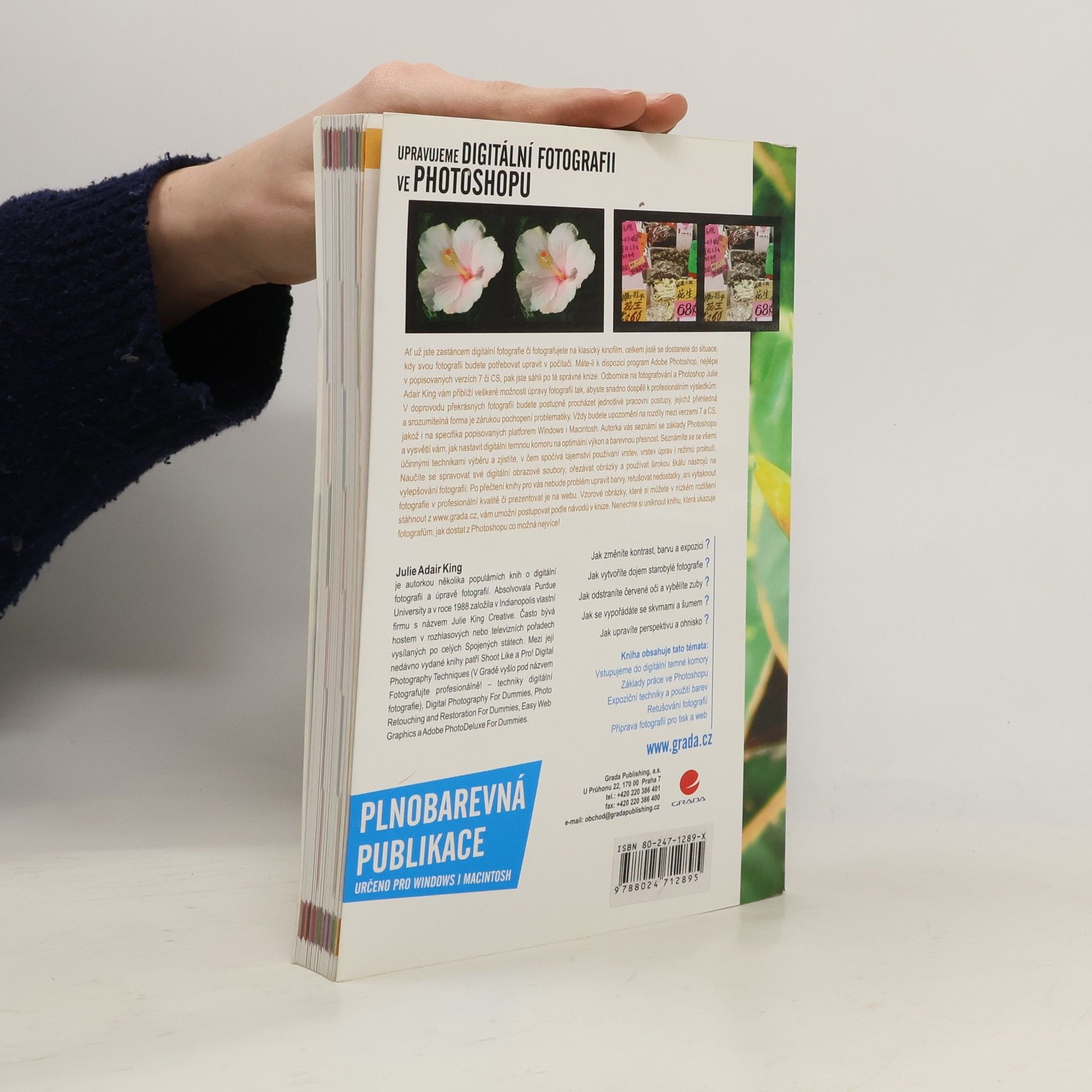 Ať už fotografujete digitálně nebo na kinofilm, brzy se ocitnete v situaci, kdy budete potřebovat upravit fotografie v počítači. Pokud máte Adobe Photoshop, zejména verze 7 nebo CS, tato kniha je pro vás ideální. Odbornice na fotografování a Photoshop, Julie Adair King, vám představí všechny možnosti úpravy fotografií, abyste dosáhli profesionálních výsledků. Kniha vás provede jednotlivými pracovními postupy s přehlednou a srozumitelnou formou, která zaručuje pochopení. Upozorní vás na rozdíly mezi verzemi 7 a CS a specifika platforem Windows a Macintosh. Autorka vás seznámí se základy Photoshopu, nastavováním digitální temné komory pro optimální výkon a barevnou přesnost. Naučíte se efektivní techniky výběru, tajemství vrstev, úprav a režimů prolnutí. Kromě správy digitálních obrazových souborů a ořezávání obrázků se seznámíte s nástroji na vylepšování fotografií. Po přečtení knihy budete schopni upravit barvy, retušovat nedostatky a tisknout fotografie v profesionální kvalitě nebo je prezentovat online. Vzorové obrázky ke stažení vám usnadní sledování návodů. Tato kniha vám pomůže maximálně využít potenciál Photoshopu!